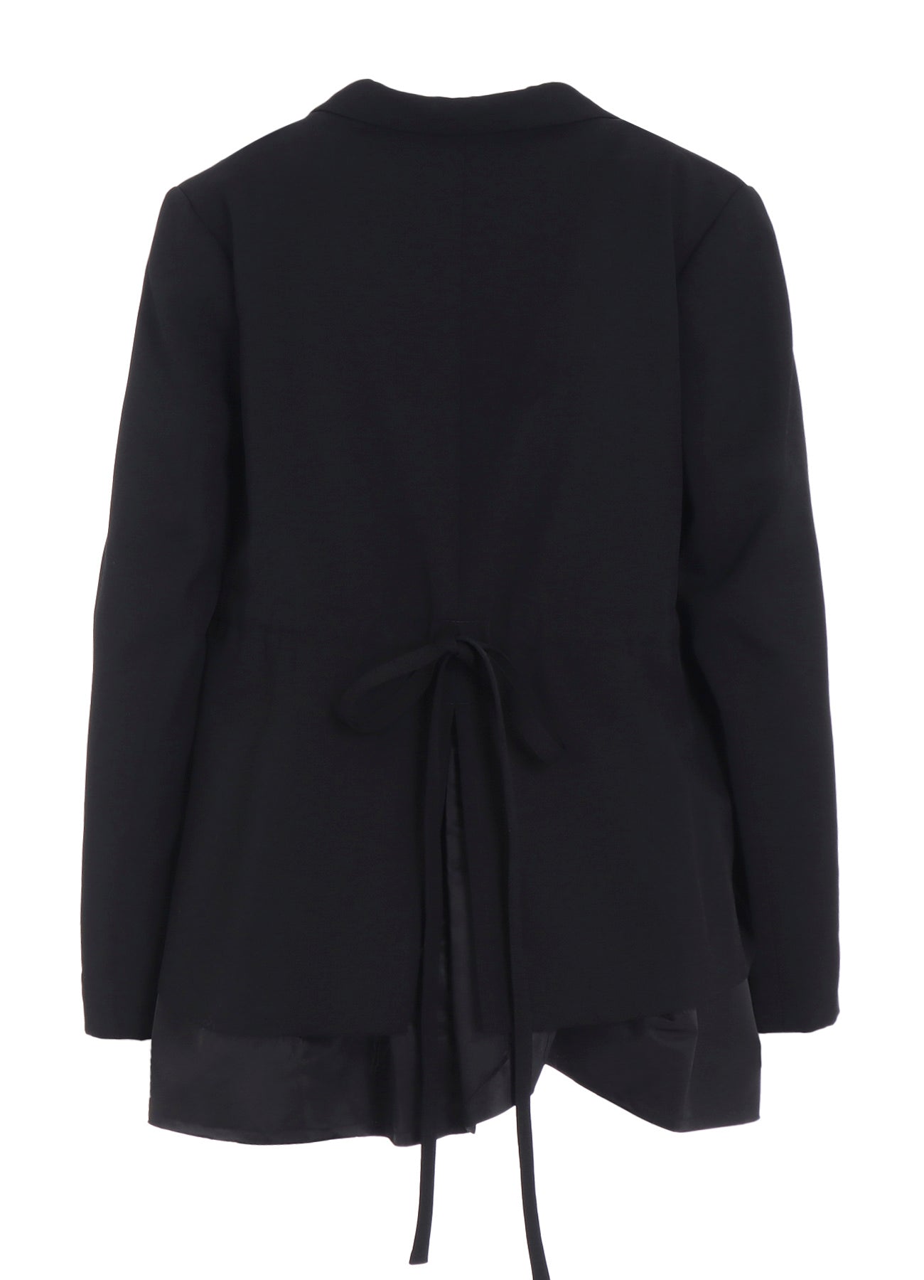 A unique frill jacket from Yohji Yamamoto uses their signature wrinkled gabardine material, highlighting wool’s natural texture. With nylon accents, the jacket gains a distinctive silhouette enhanced by adjustable waist cinching. Note sample item images may differ slightly from the final product size and texture; refer to SIZE INFO.