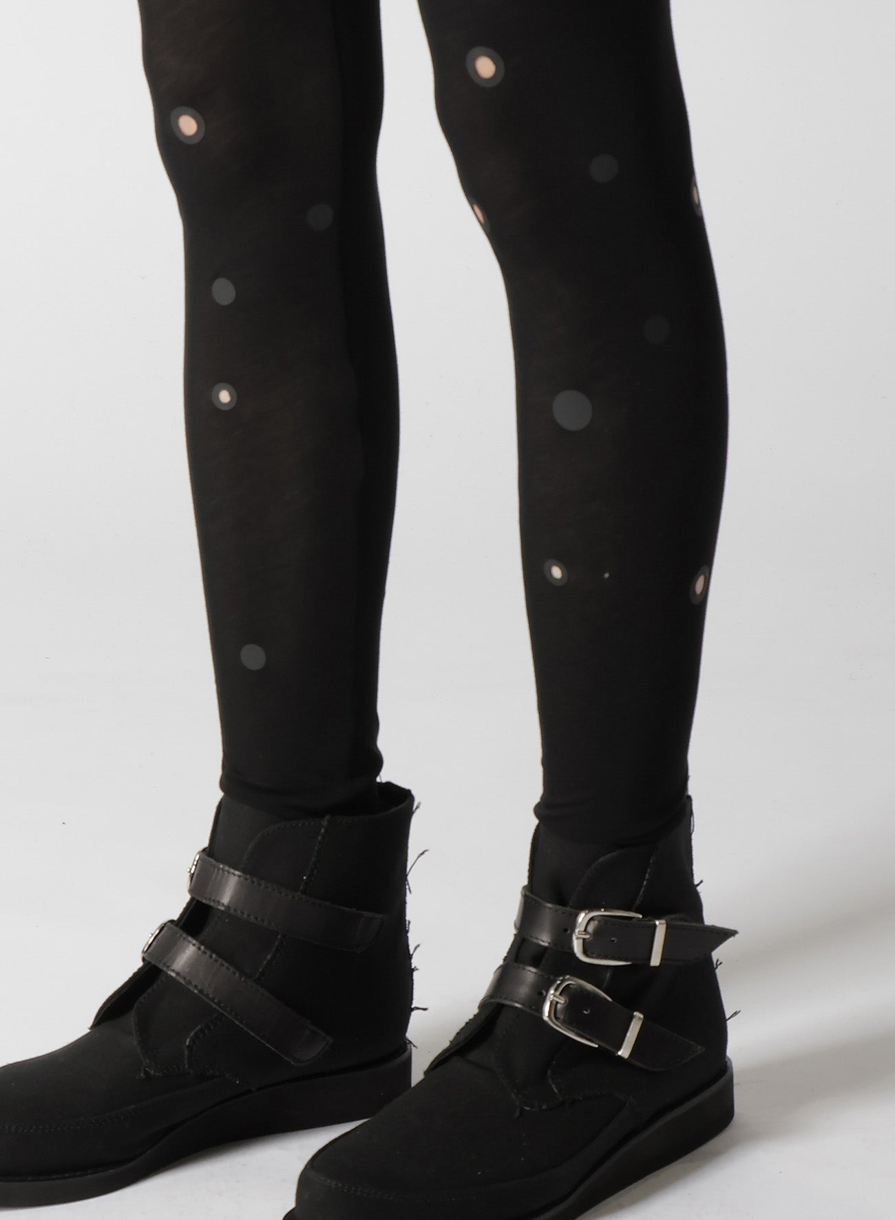 This season's polka-dot leggings pants utilize India’s finest extra-long staple cotton, crafted with strong-twist yarn for a unique texture. The material features a natural crispiness, subtle sheen, and ideal drapery. Note that model images use sample items; product size and feel may vary.