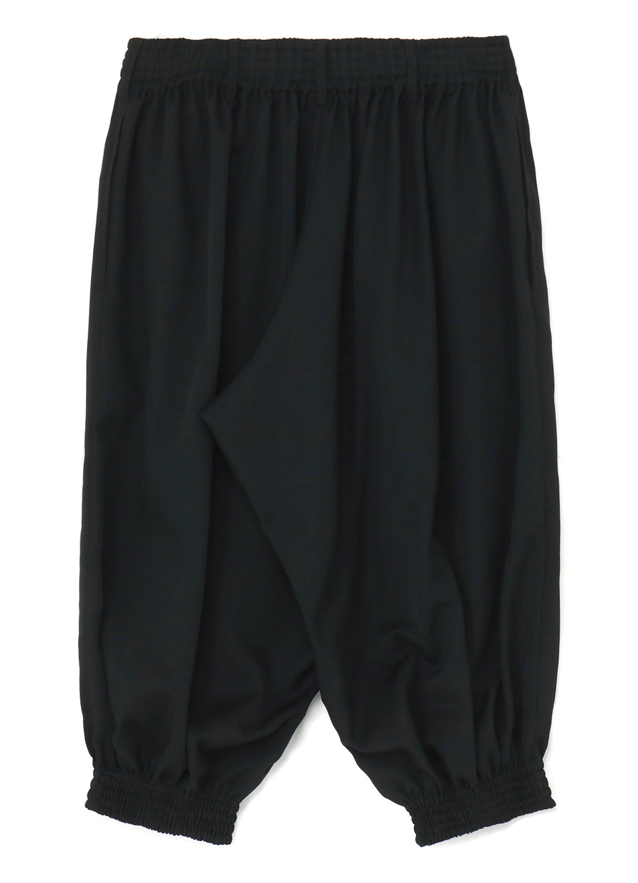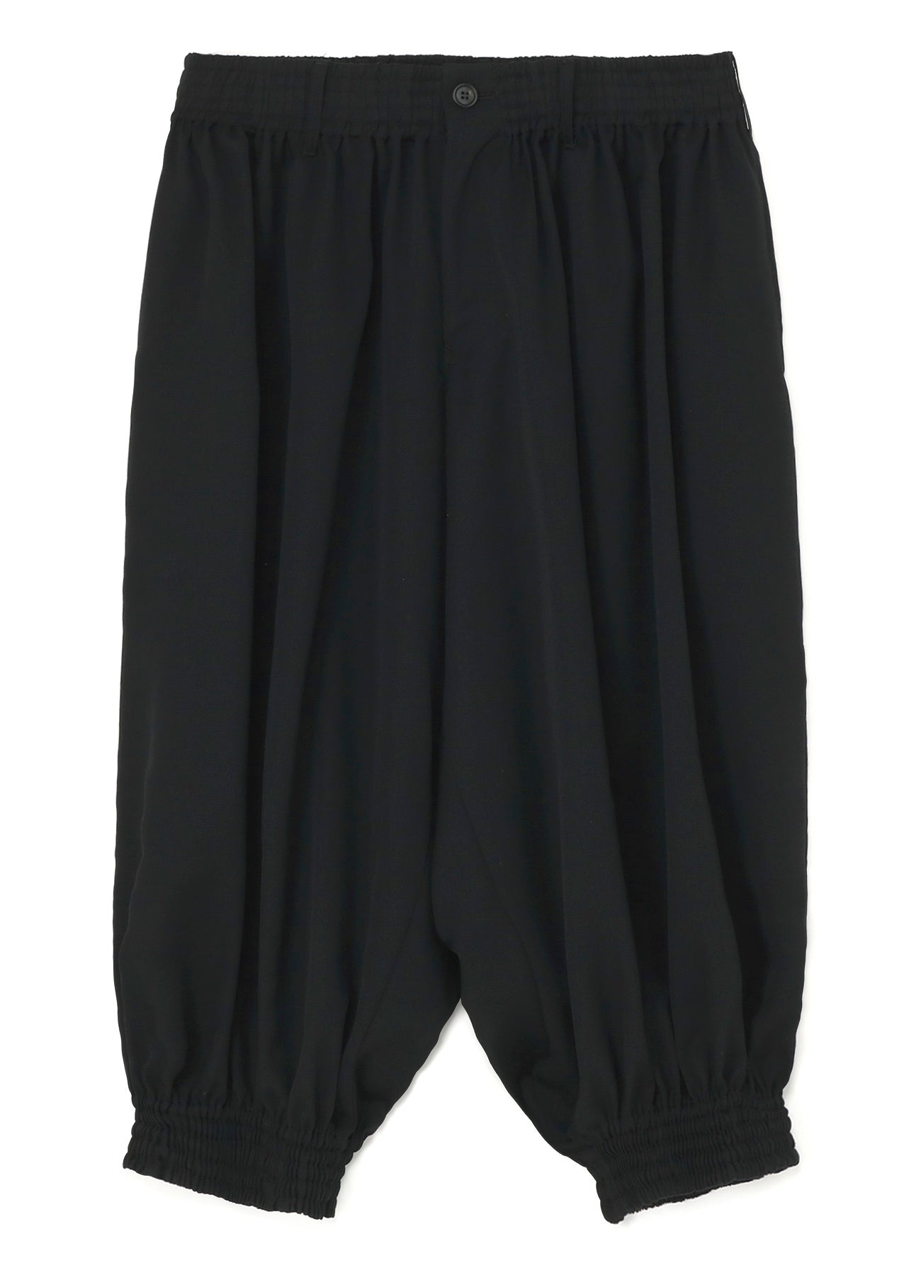 This piece features short-length gather pants made from Yohji Yamamoto's signature material, wrinkled gabardine. They offer a lightweight and stylish look when paired with loose shirts or tops.