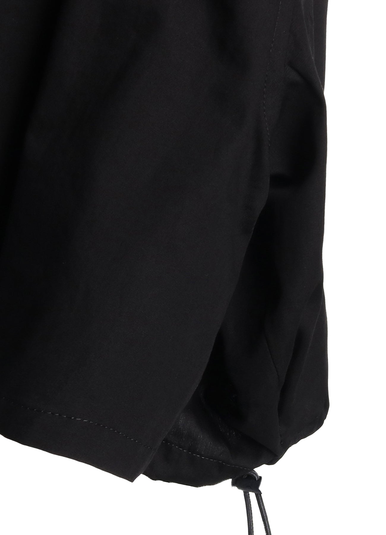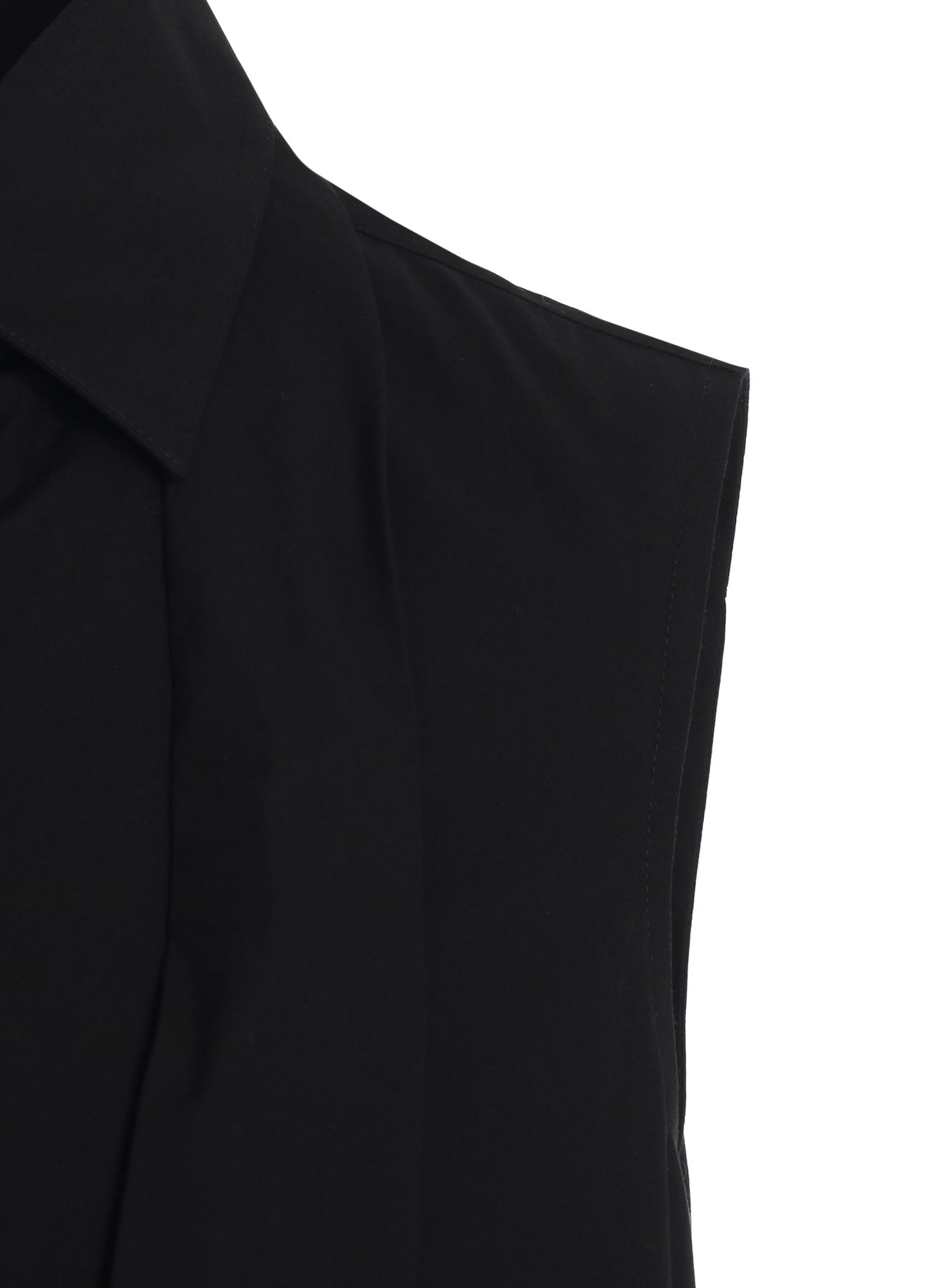 This sleeveless shirt offers versatility with a tie that changes its silhouette. It's made from a high-density, lightweight broadcloth that feels crisp and pairs well with voluminous pants. The elastic bottom hem allows for customizing the body silhouette.