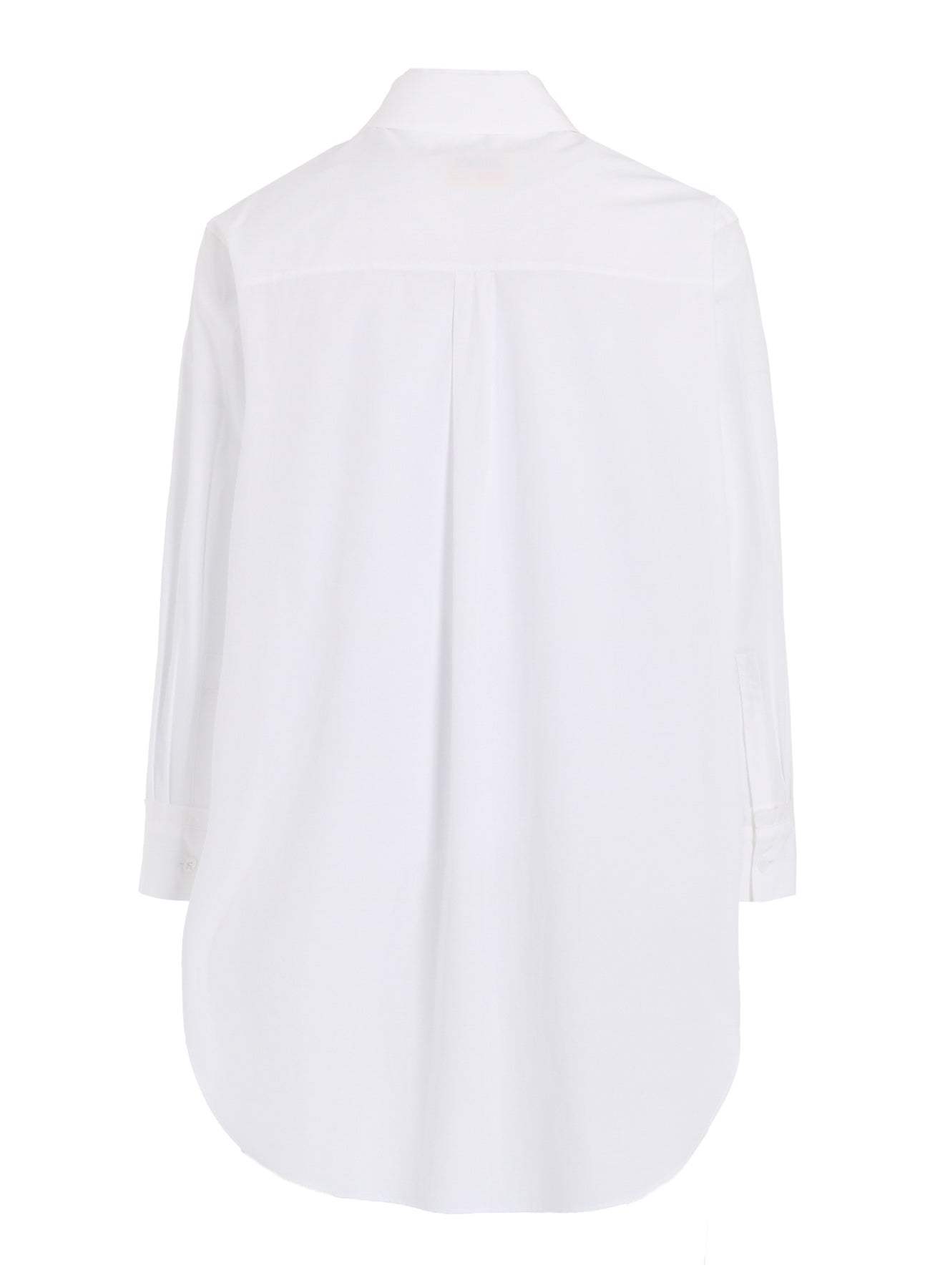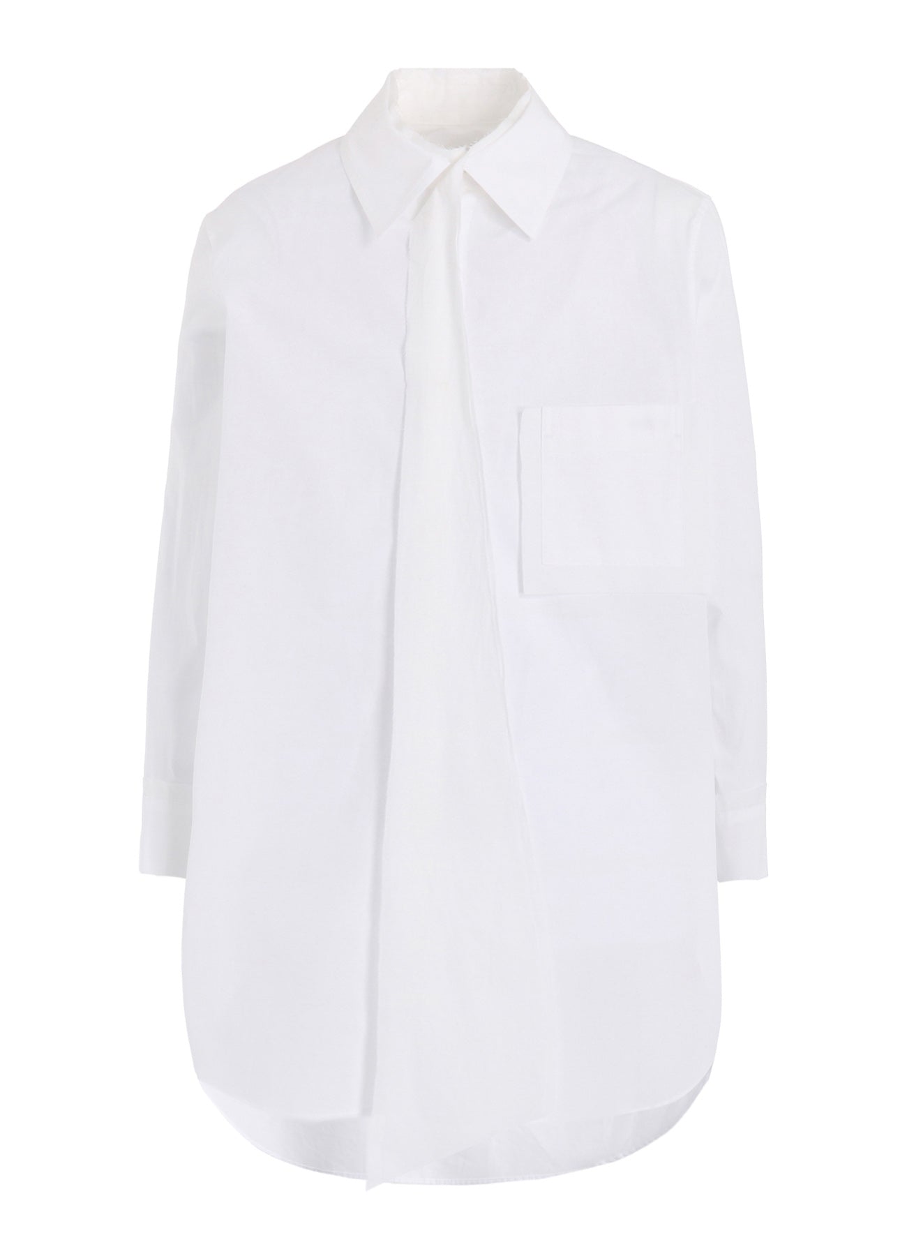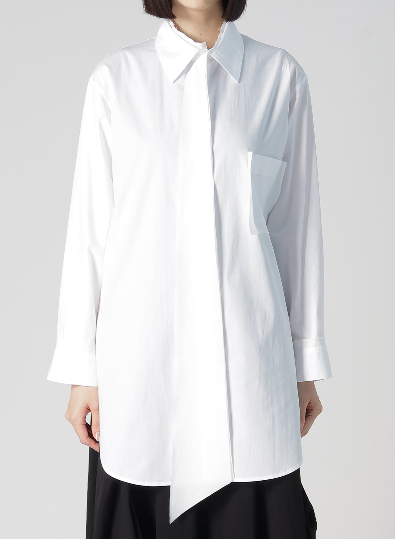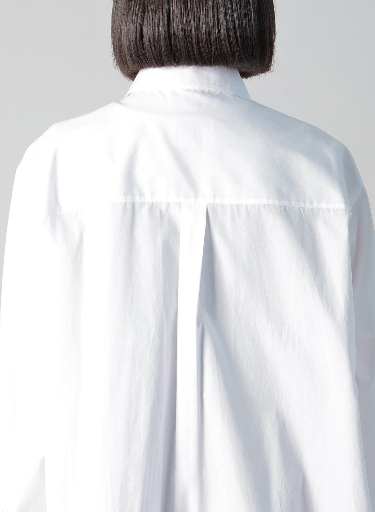 The long-sleeve shirt features an elegant design with a Front Placket and a double-layered collar cut in a raw finish. Made from high-density broadcloth, its lightweight yet firm texture provides a smooth feel. Note that the model’s images are of sample items and may differ slightly from the final product. For precise details, refer to the size information provided.