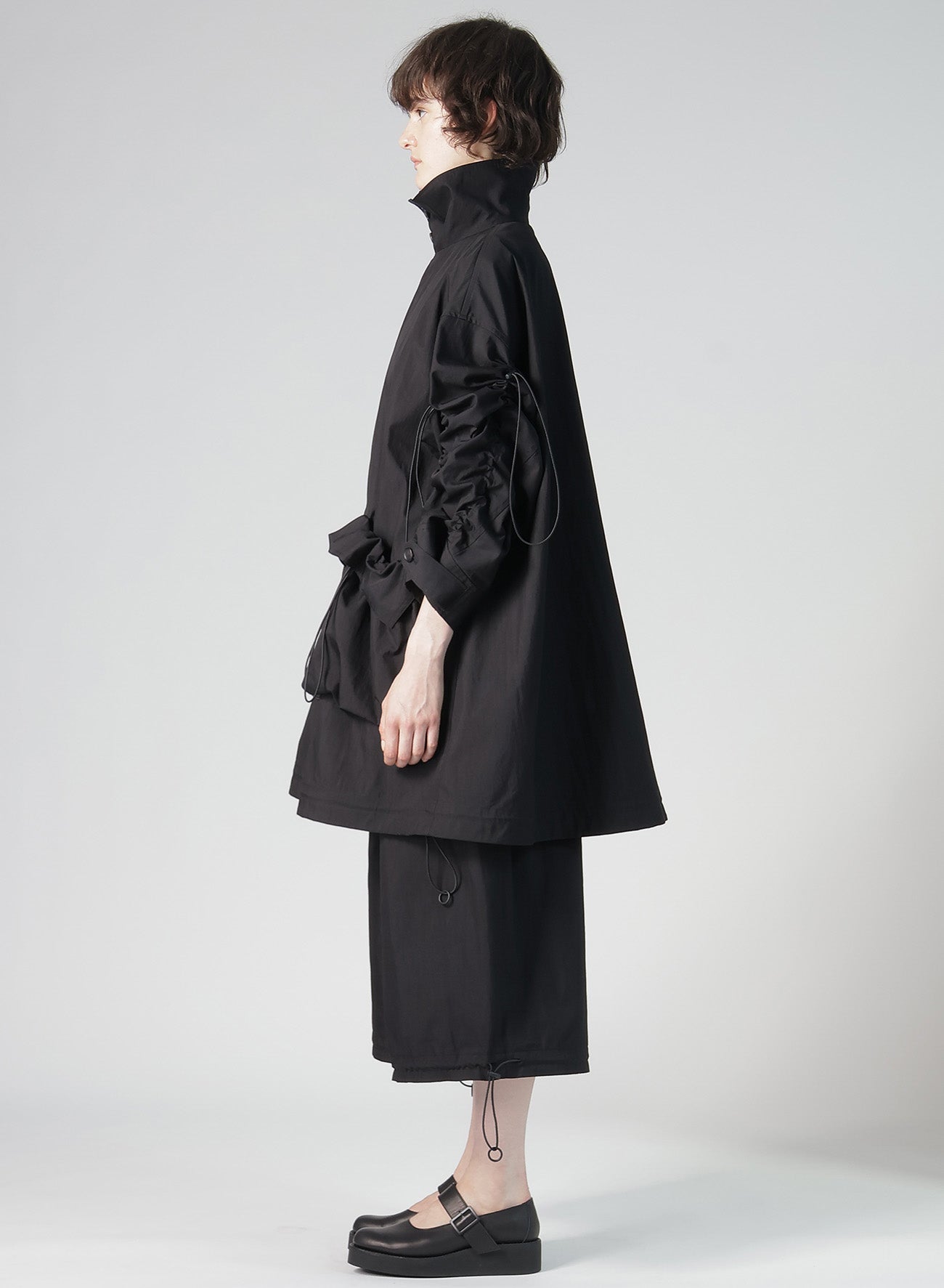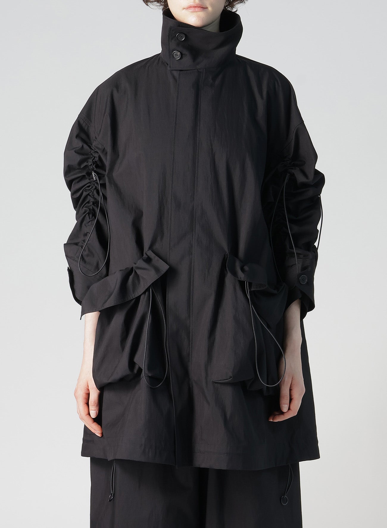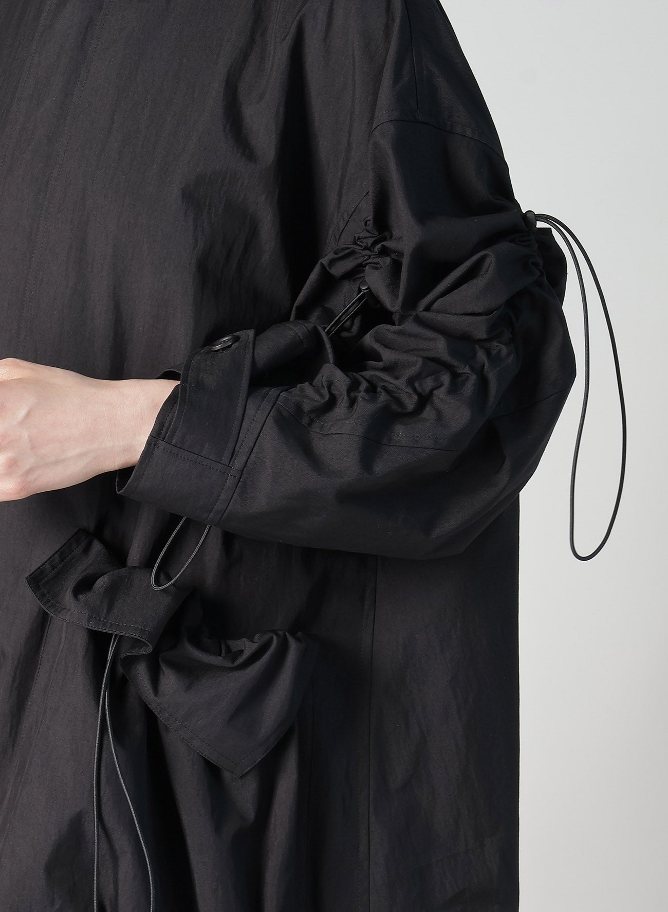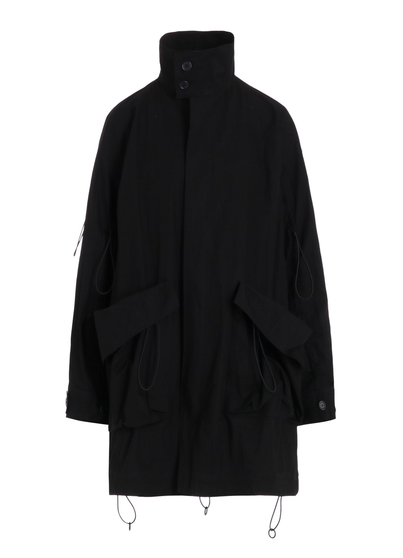 This relaxed-fitting Adjust coat features a drawstring to create gathered tiers for a customizable silhouette. Despite its voluminous shape, the lightweight fabric ensures a breezy wear. The unique texture is reminiscent of softened weathered materials, finished naturally by air drying. Please check SIZE INFO as sample images may differ from final goods.