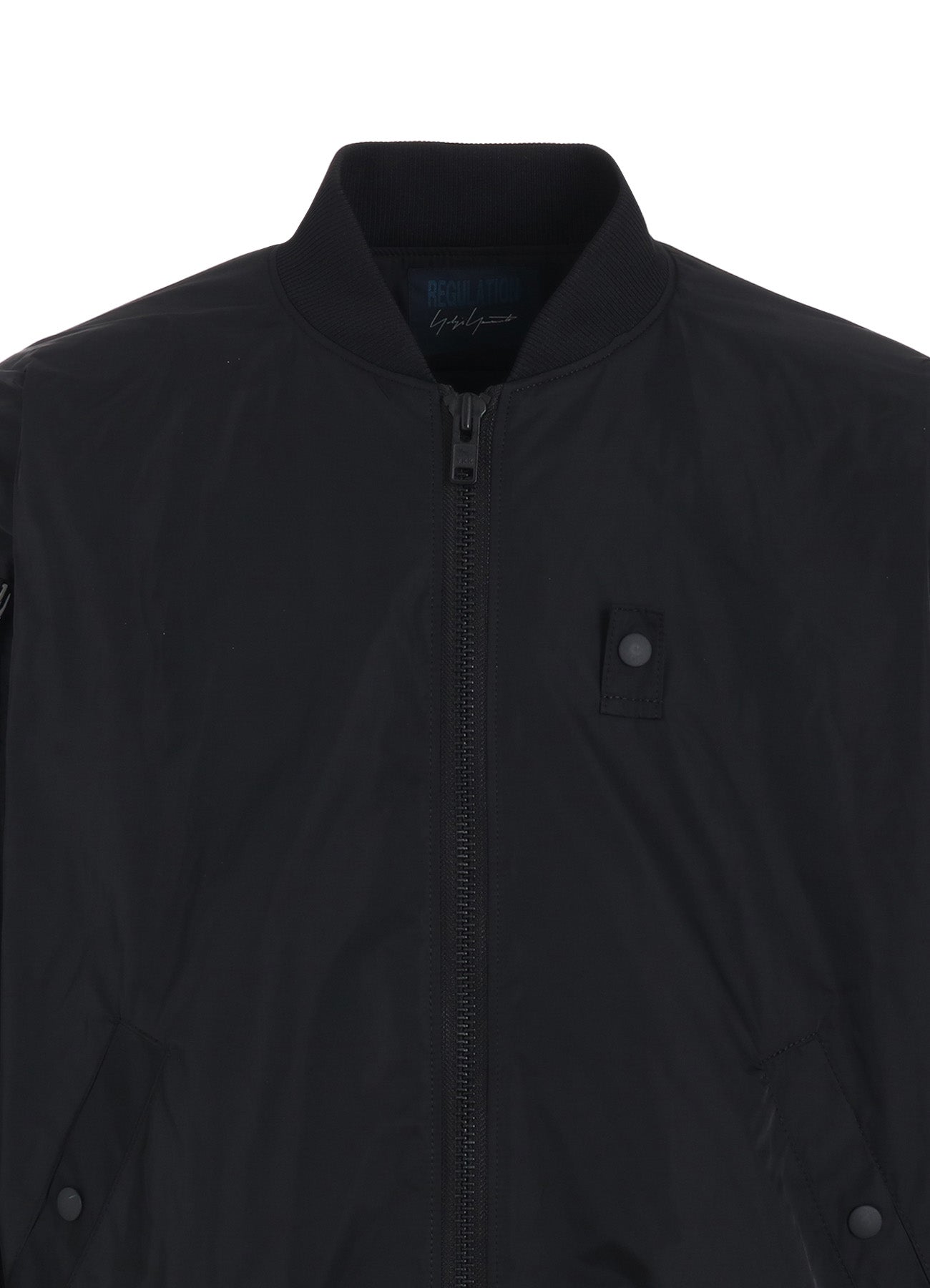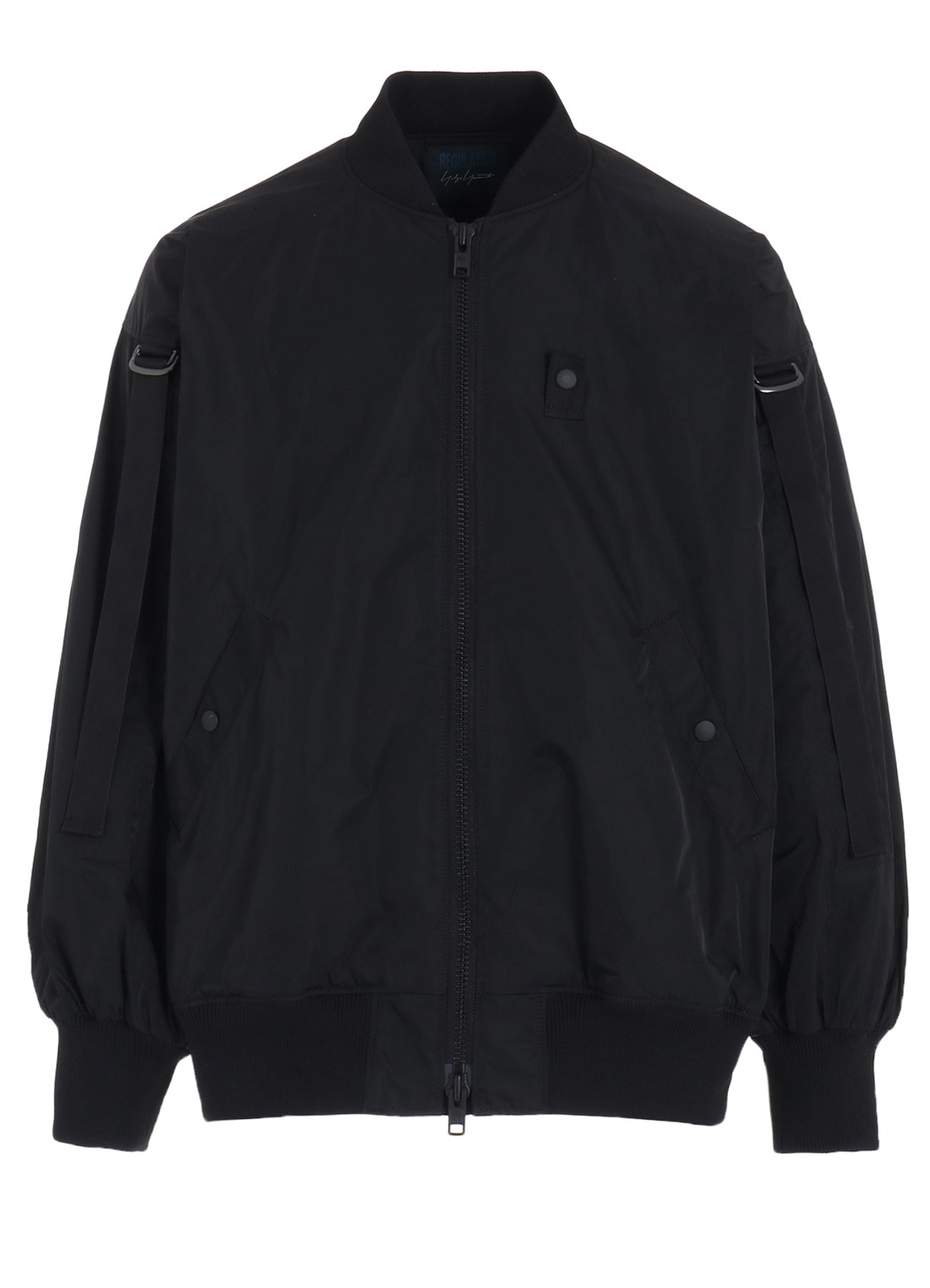 This bomber jacket from REGULATION Yohji Yamamoto features a light polyester fabric and a belt-incorporated sleeve design, enhancing its silhouette. The relaxed shape and everyday-friendly material make it appealing for casual wear. Note: Model images use a sample item; product’s fit and texture might vary, so consult SIZE INFO.
