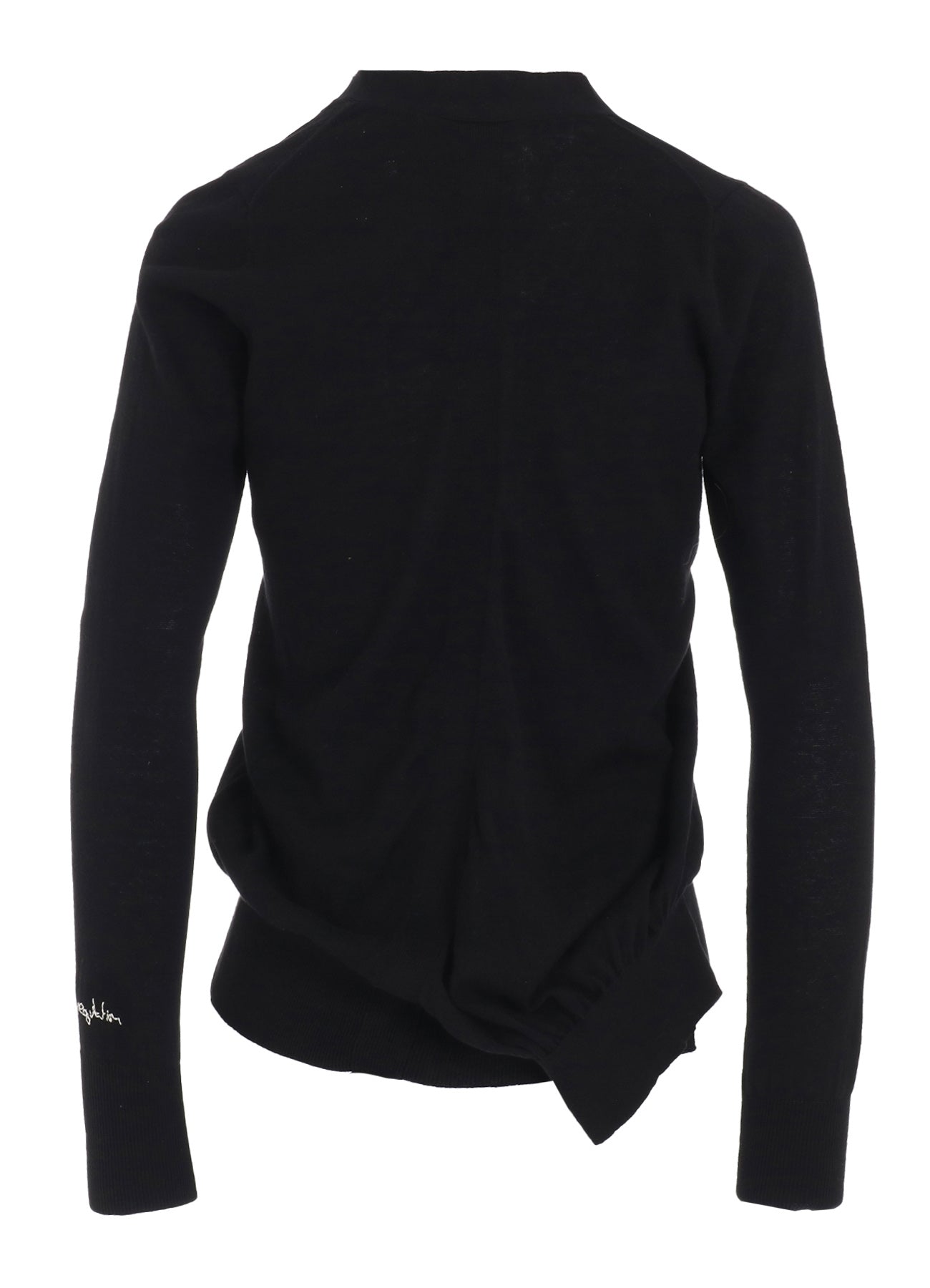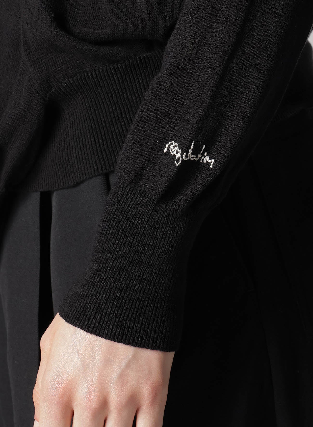 This cotton cardigan is light and features accent embroidery at the sleeves. Its asymmetric silhouette, derived from the combination section on the left body, adds an elegant feel. The compact silhouette complements voluminous pants. Note that the model wears a sample, which might differ slightly from the actual product.