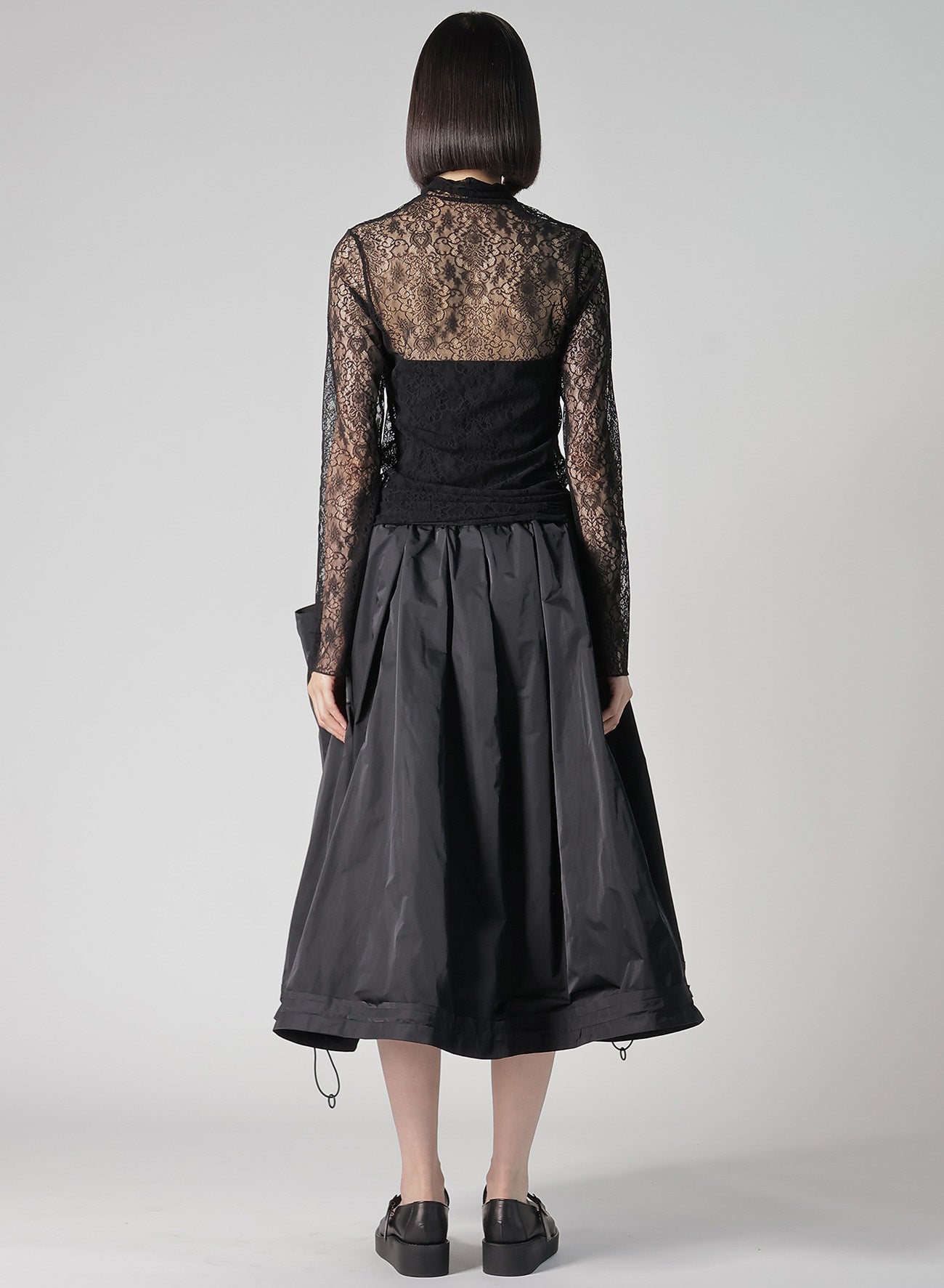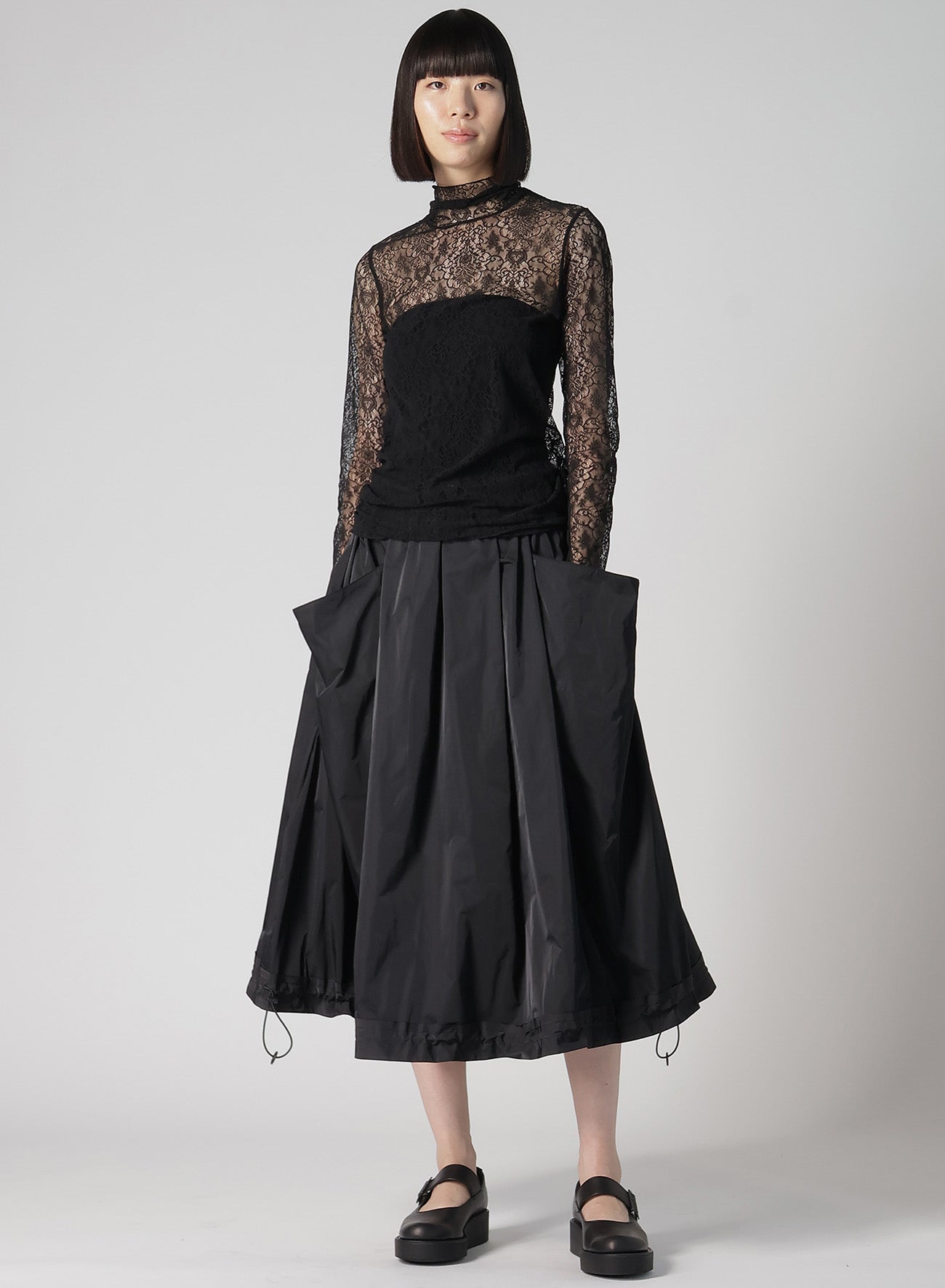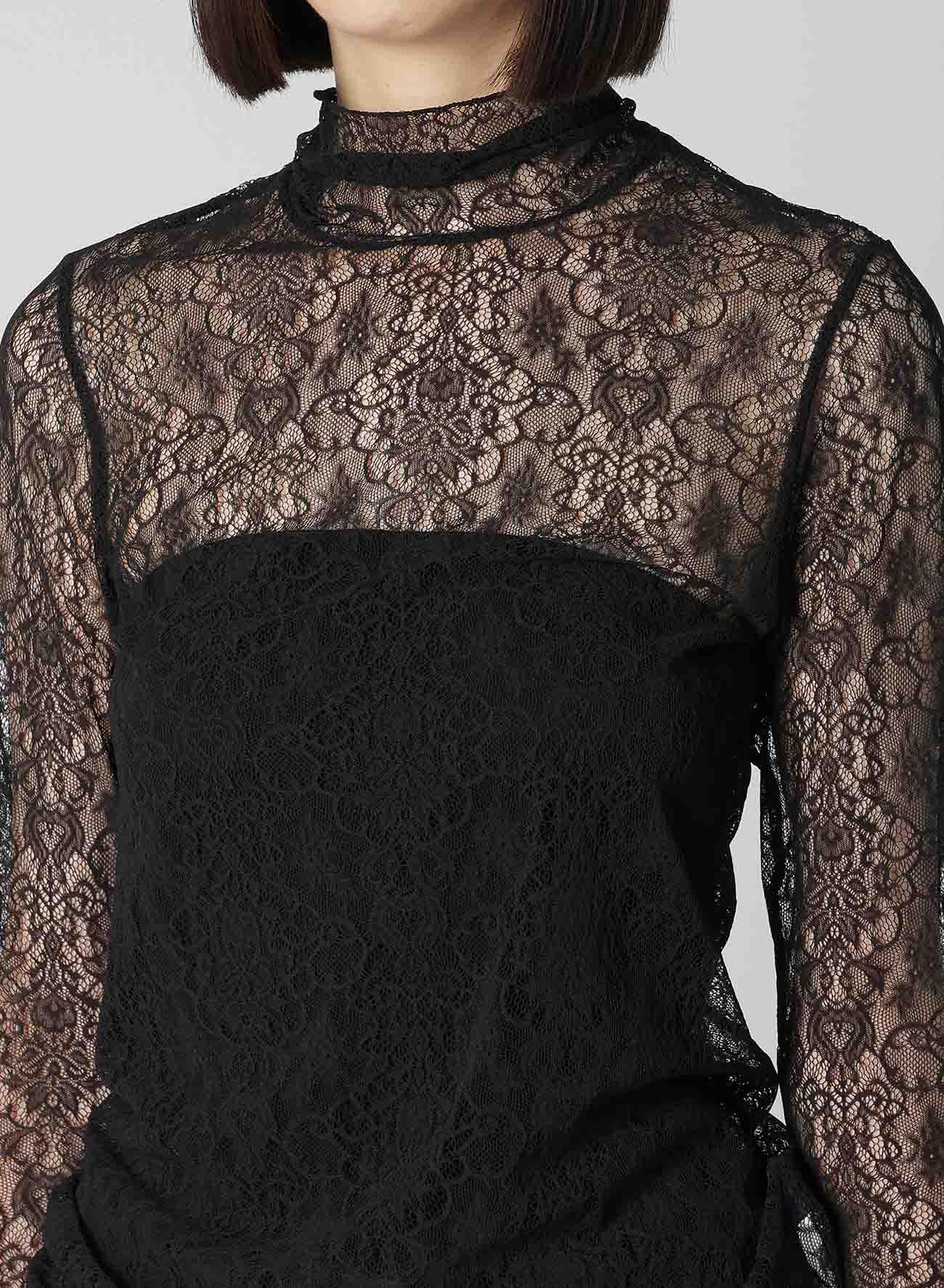 A sheer lace-accented turtleneck top exudes an elegant and refreshing appeal. With its stretchy material, it offers flexibility and contributes to an overall sophisticated look. This top adds grace to any outfit. Please refer to SIZE INFO as model images use samples, which may differ slightly in size or texture from the final product.
