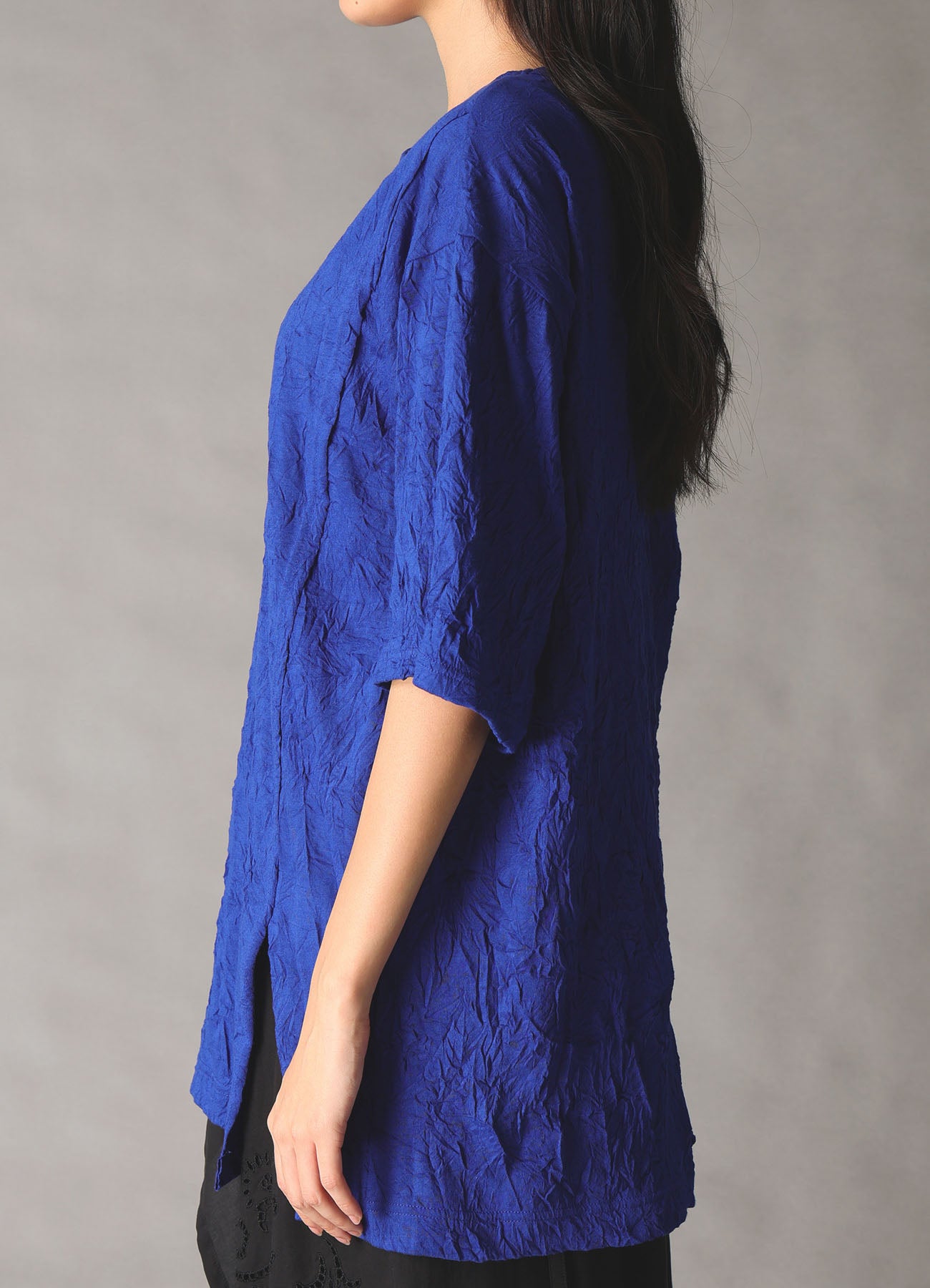 - Unique double-layered neckline.