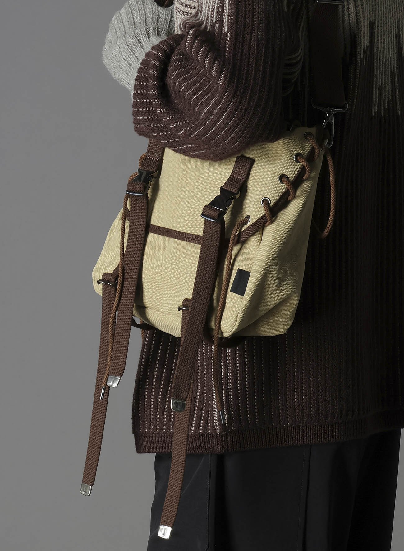 Inspired by vintage work styles, the Ground Y 2025-26 Autumn/Winter shoulder bag embodies a utility fashion taste. It features design elements like eyelets, rope motifs, and vintage-style belts. Made from canvas fabric with a washer feel, this bag offers a unique texture to enjoy.