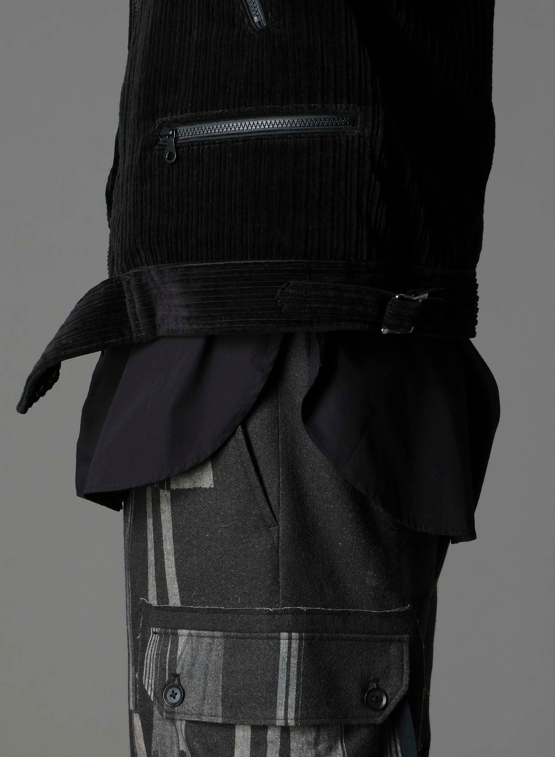 Ground Y's 2025-26 Autumn/Winter collection presents a motorcycle jacket crafted from quality corduroy. It features gussets for ease of movement while maintaining its sharp silhouette. With five zipper pockets, including a functional sleeve zipper, it combines both practicality and style. The washed finish enhances its unique texture.
