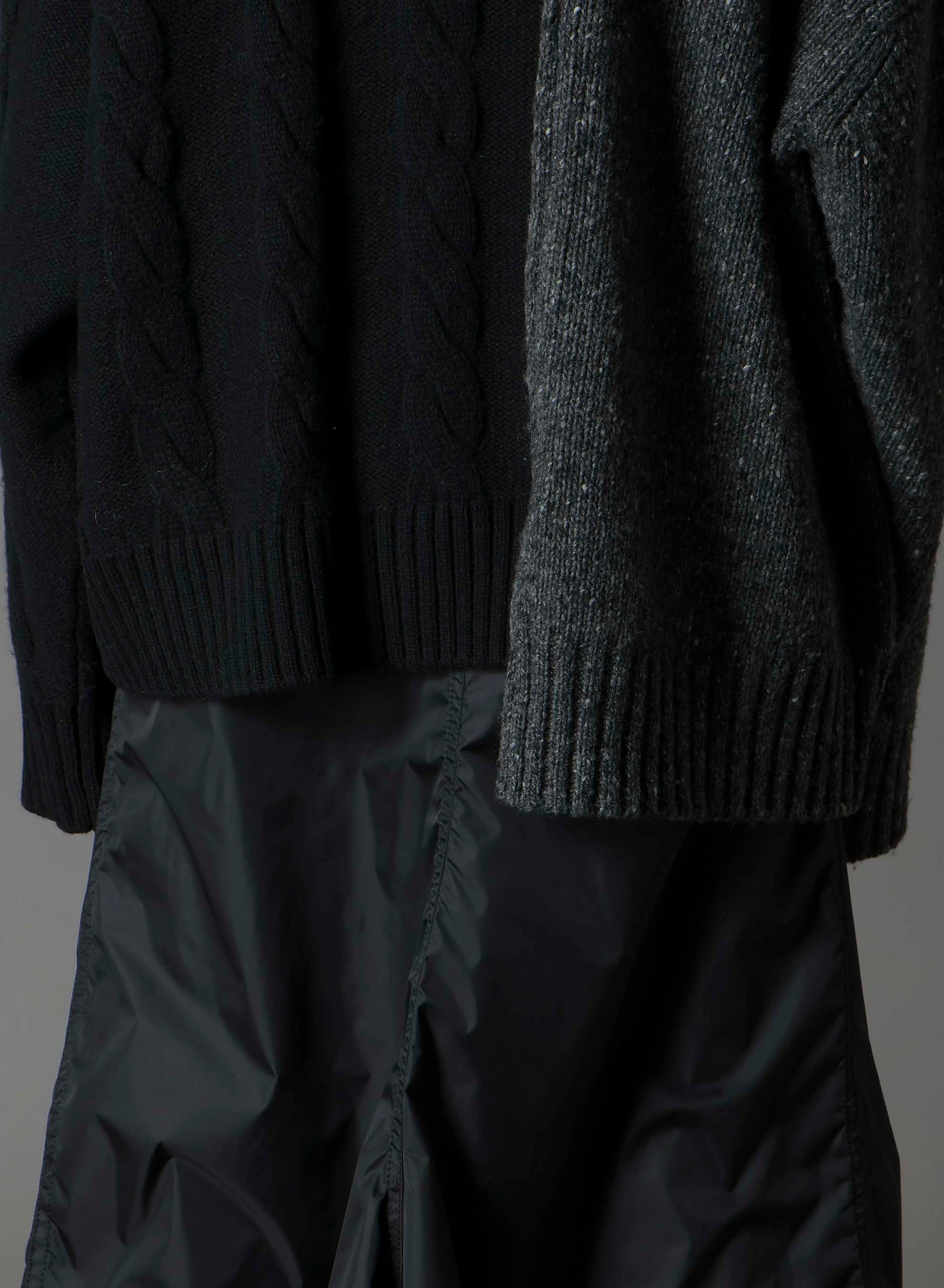Ground Y unveils its 2025-26 Autumn/Winter Collection, featuring a crew neck knit that blends striking cable knit with plain textures. Its asymmetric design is accentuated by a bold cable knit on one side. Crafted from wool, nylon, and alpaca, it offers warmth and softness with a lightweight feel.