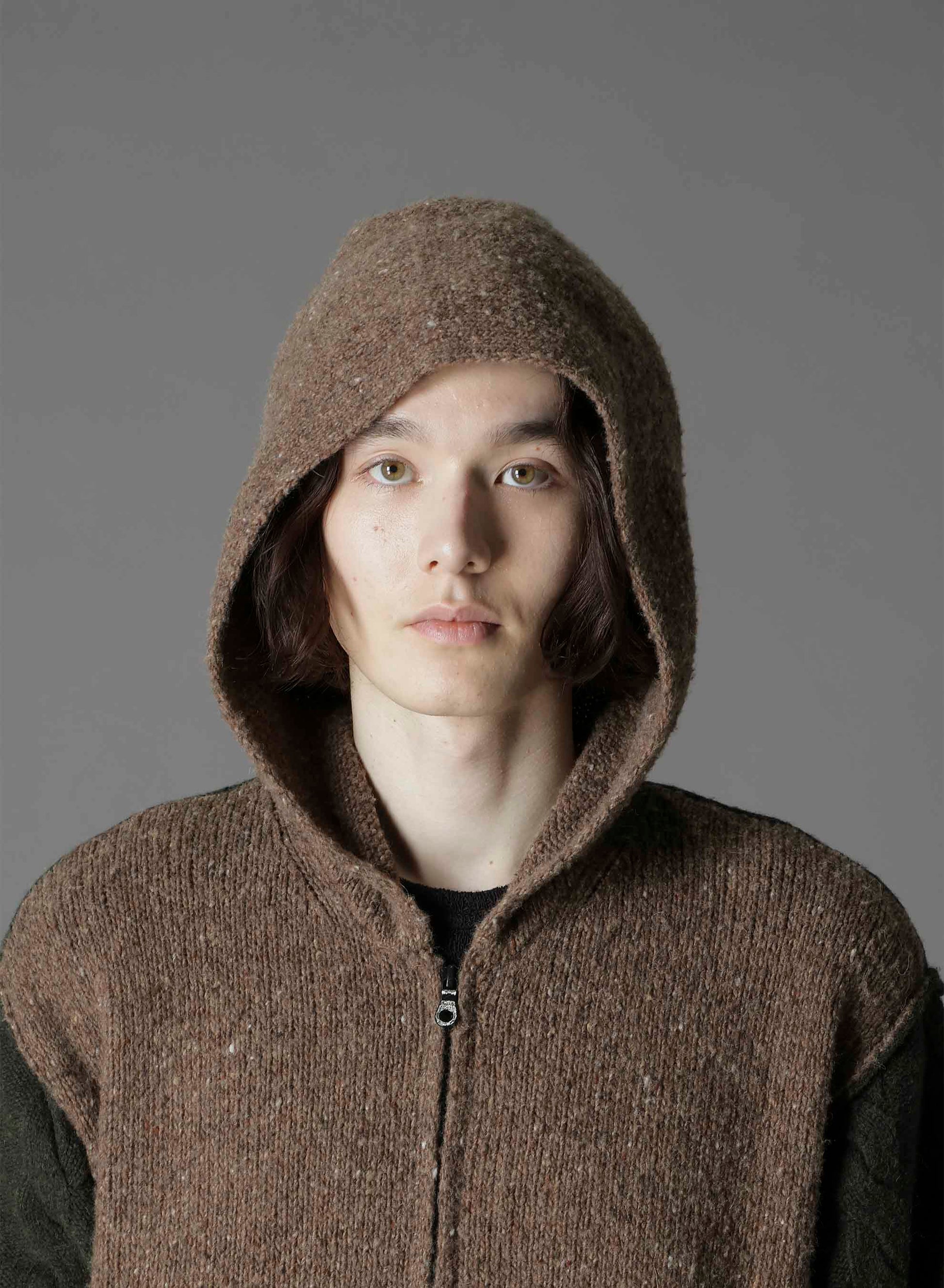 FINE MERINO WOOL CABLE SWITCH UNBALANCE HOODIE