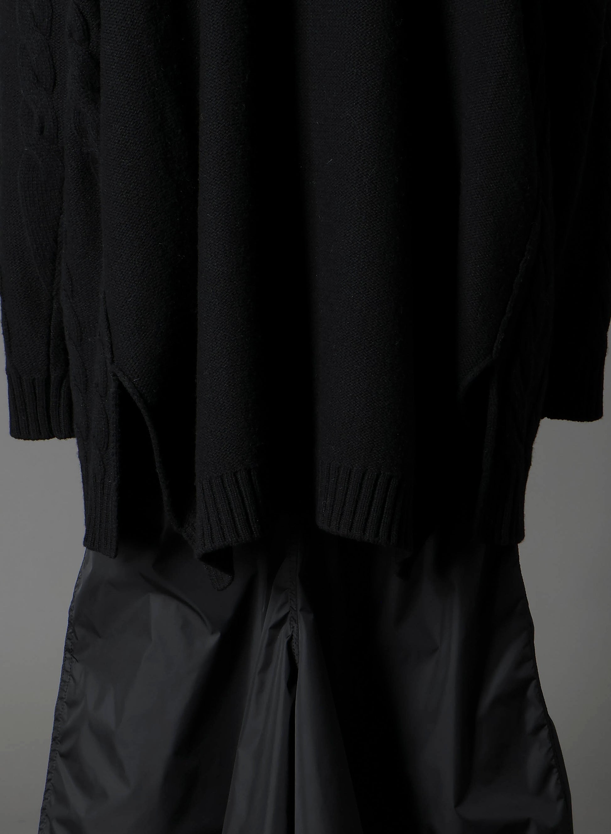 FINE MERINO WOOL CABLE SWITCH UNBALANCE HOODIE