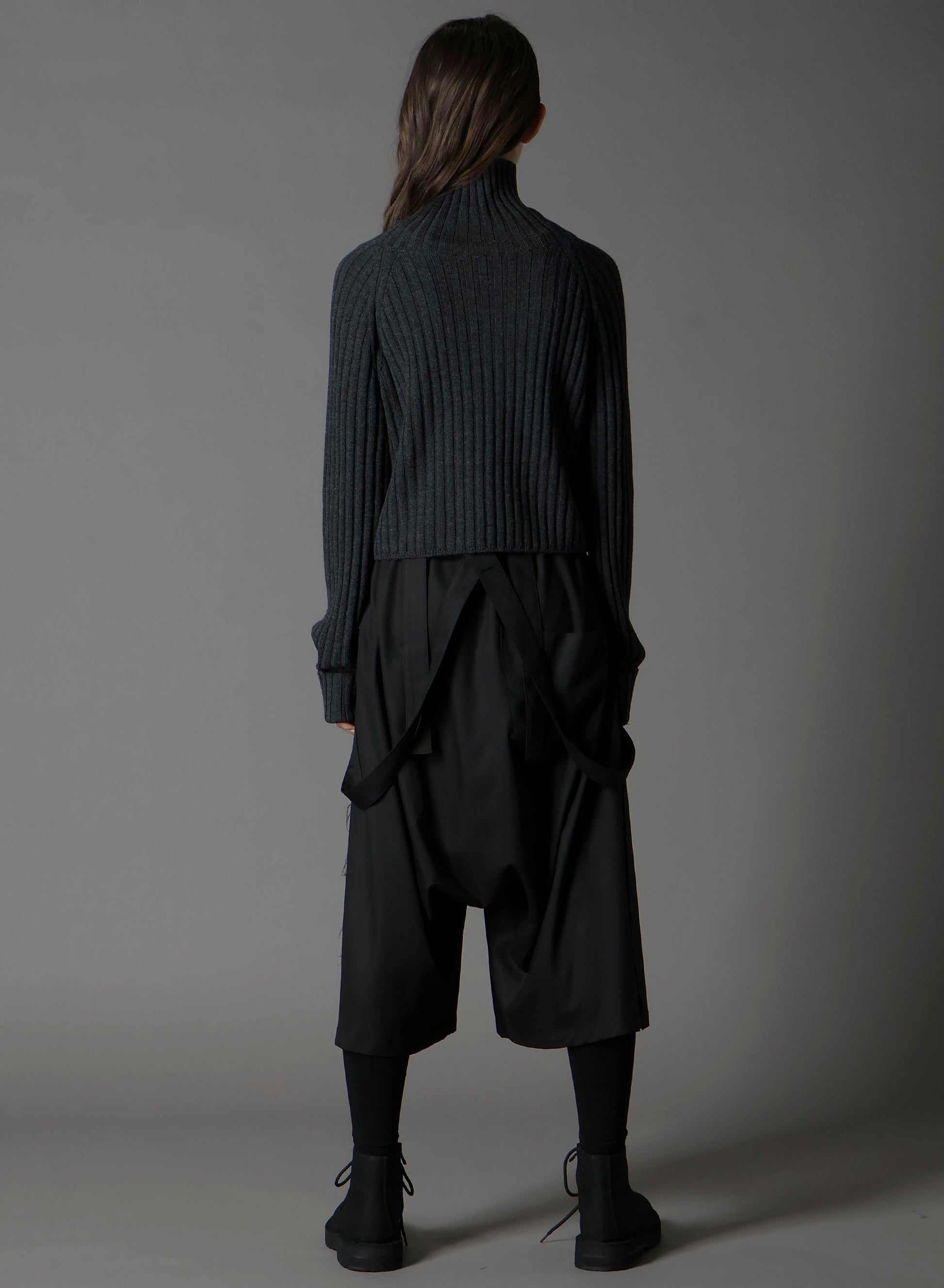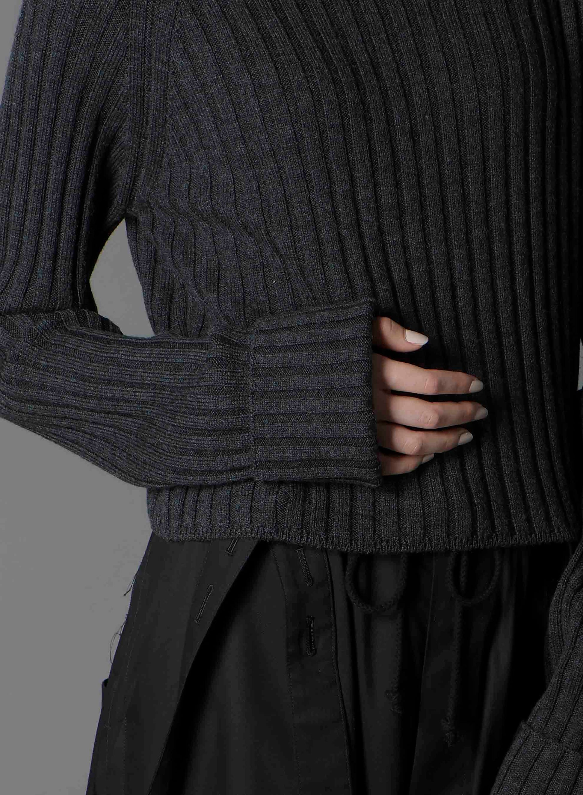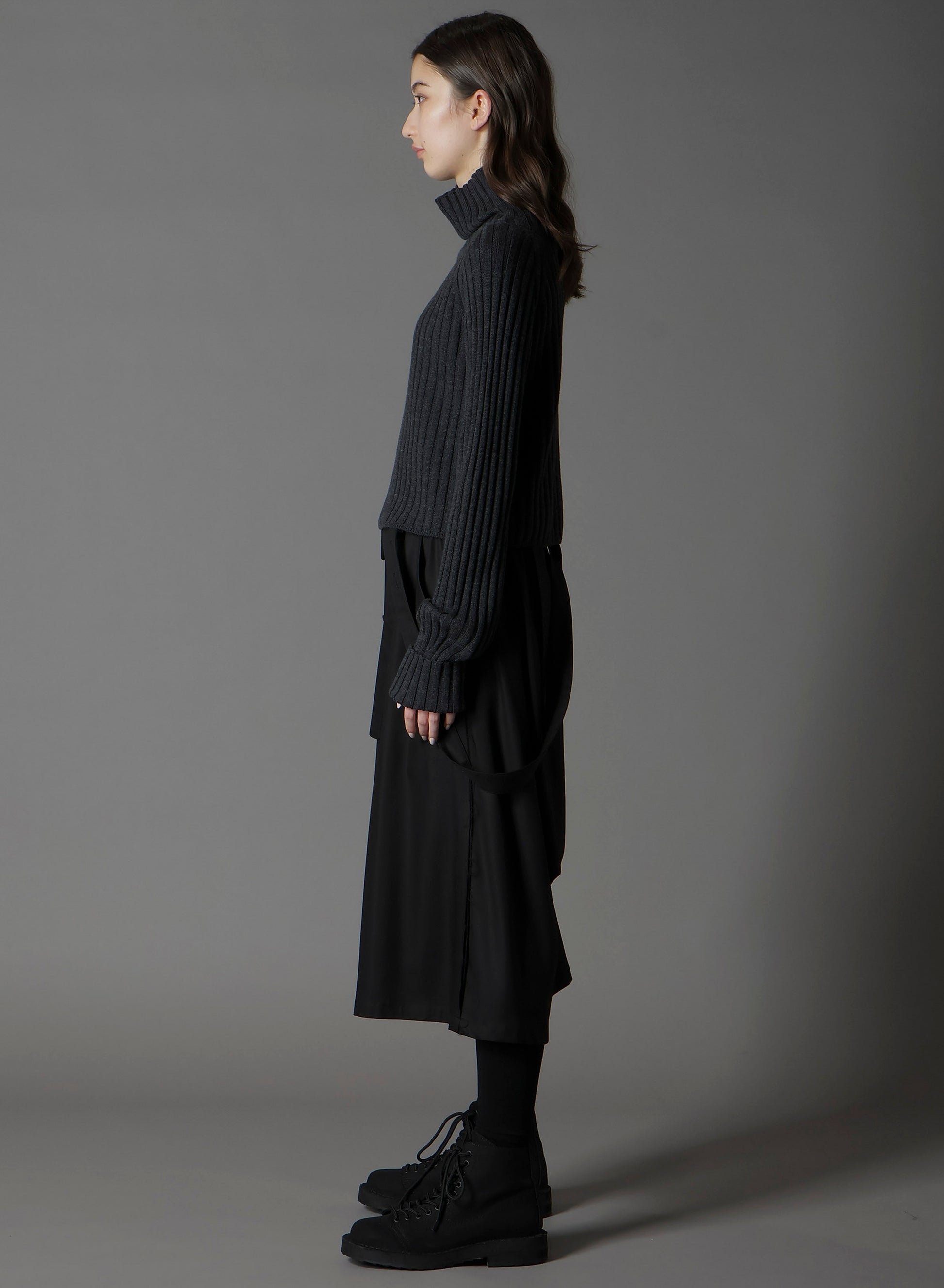 The Ground Y 2025-26 Autumn/Winter Collection presents a short raglan turtleneck knit crafted with a thick rib structure, providing a unique texture and elasticity. Made from extra fine Merino wool, this piece offers softness and natural sheen, making it both comfortable and stylish for daily wear or as an outfit accent.