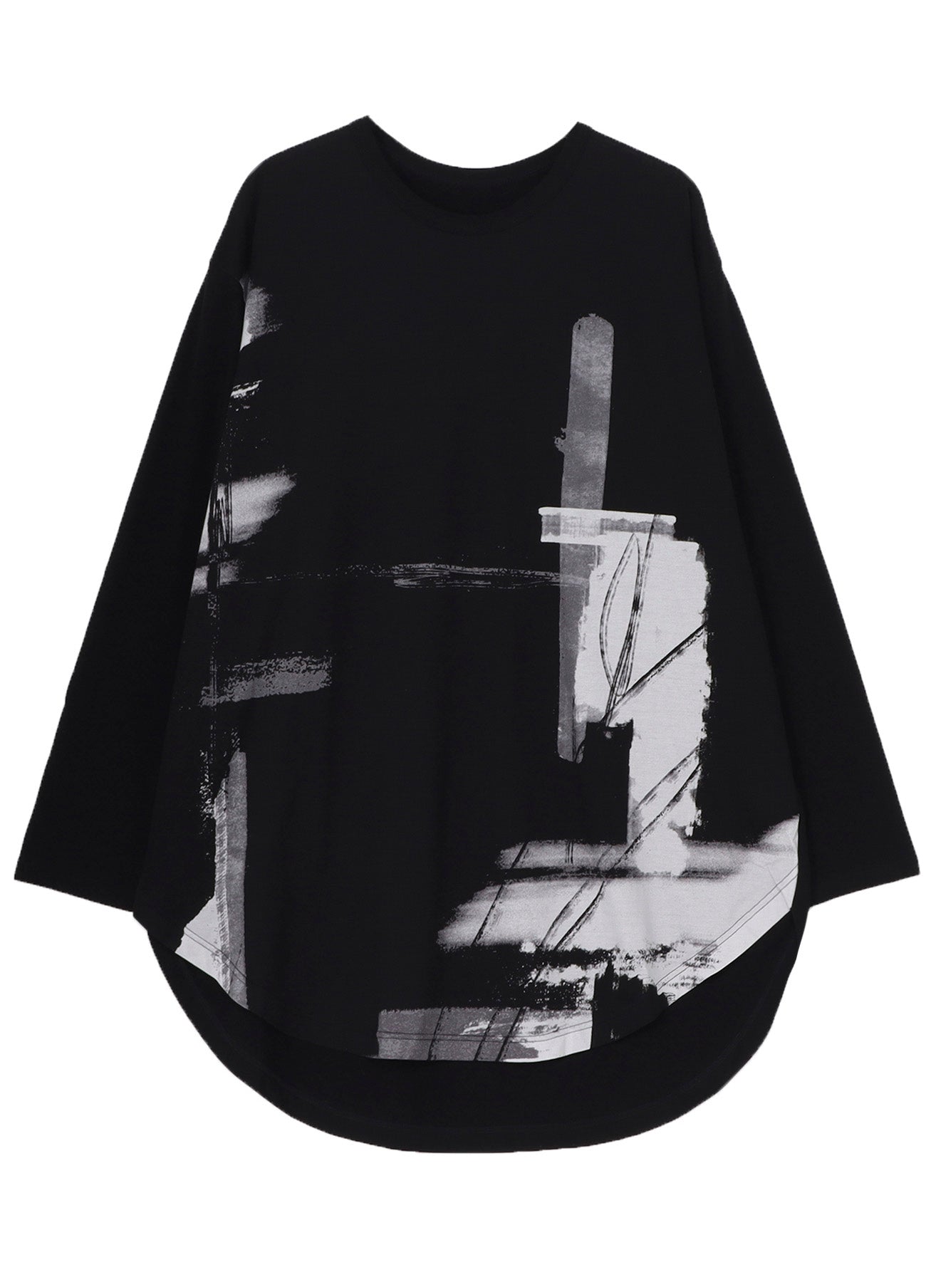 SILKETTE JERSEY PAINT PATTERN HEM JUMBO LONG SLEEVED T-SHIRT