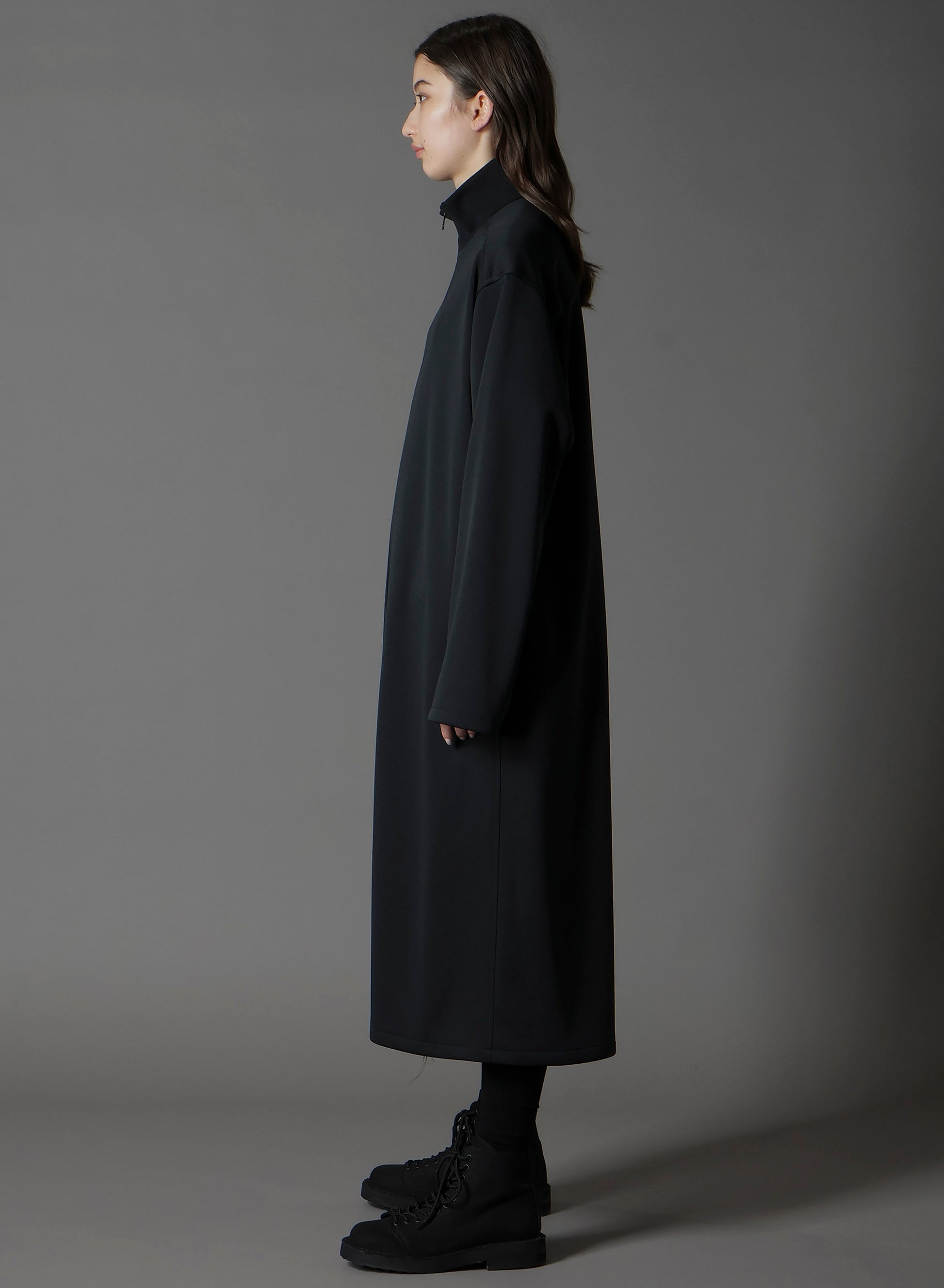 A ribbed long blouse with a double zipper allows for adjustable styling characteristic of Ground Y. With a slim fit, it layers well under jackets. Made from smooth polyester, it is durable, stretchy, and easy to maintain. The fabric's finish offers a refined drapery without sheen.