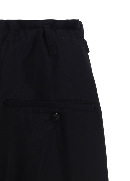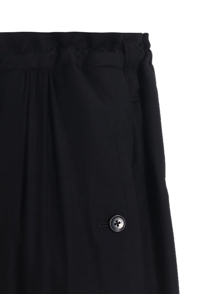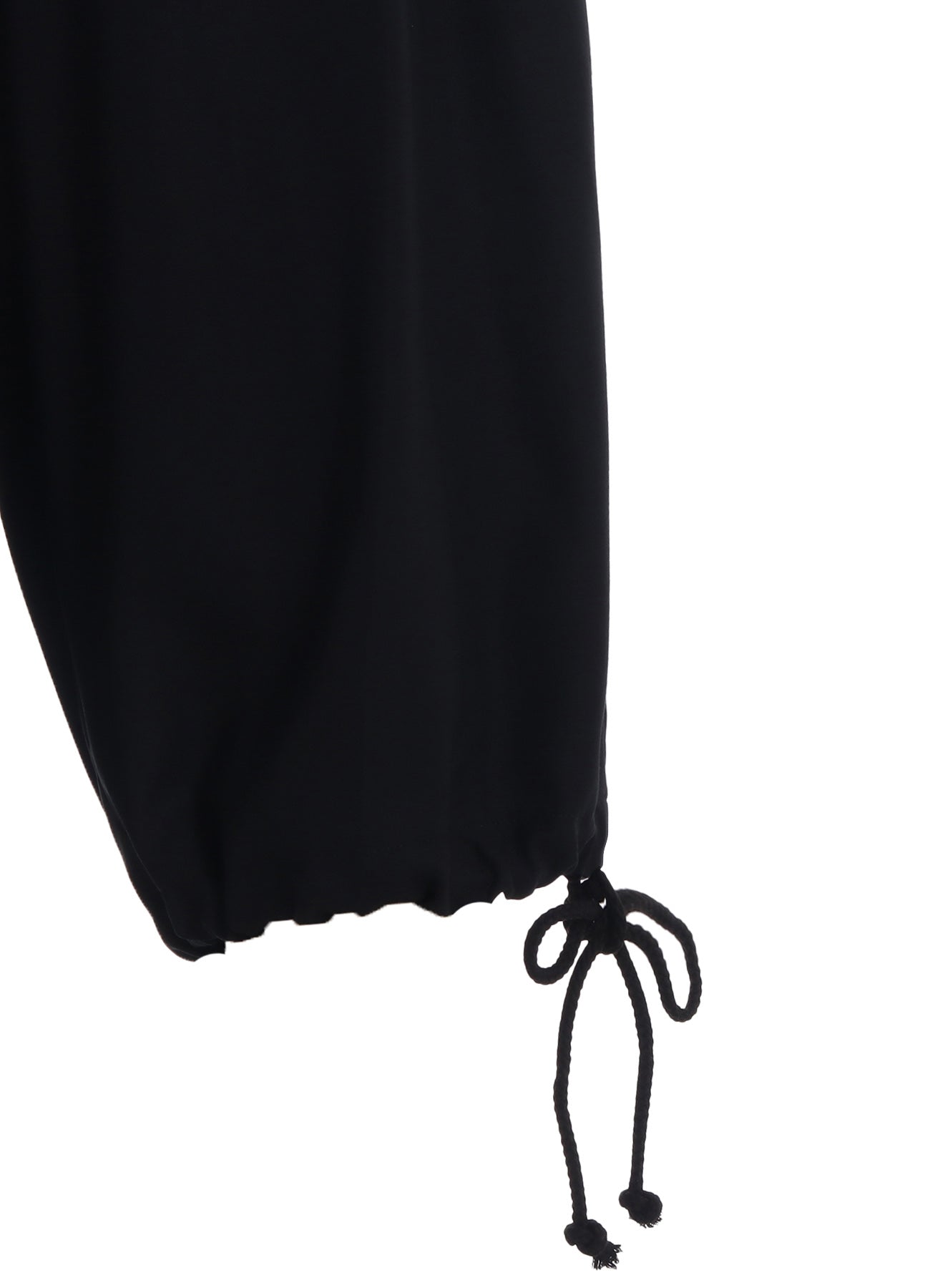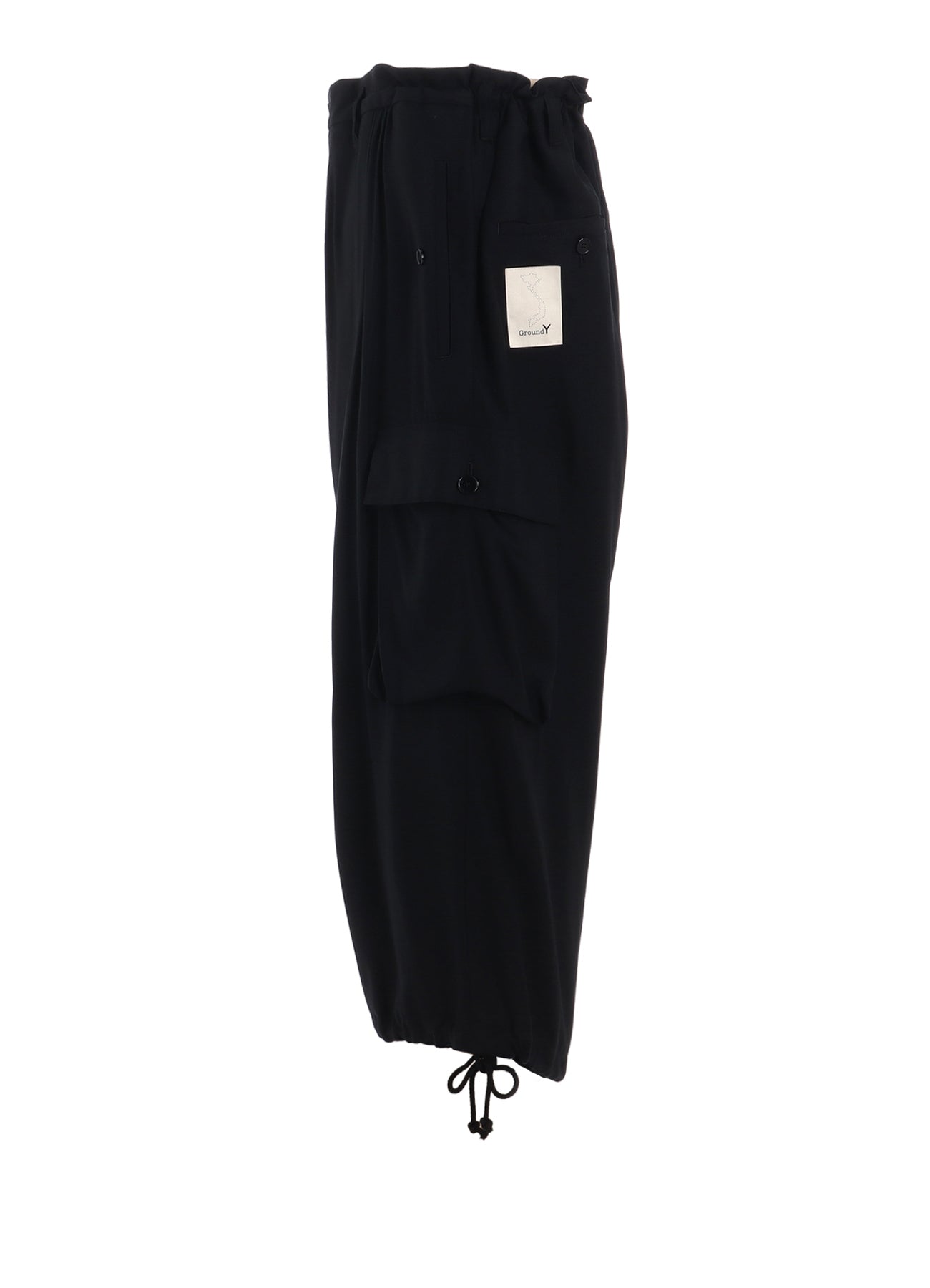 Ground Y's 2025 Spring/Summer collection features cropped cargo pants. These pants use a gathered waist instead of pleats for volume and a design accent, while adjustable drawstrings run through the hems. Crafted from lightweight rayon fabric, they provide a breezy impression for the spring and summer seasons.