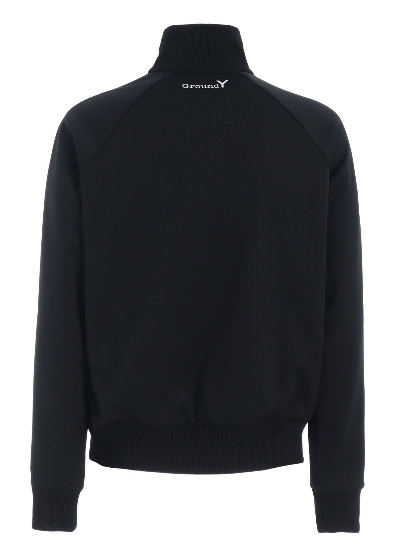 Ground Y BEYOND BORDERS offers a track jacket made from polyester smooth fabric, featuring split raglan sleeves. The jacket is characterized by a neat minimal silhouette with seam pockets and made with a special technique to suppress glossiness, providing high-quality drapery and puff. Ideal for everyday use due to its easy-care fabric.