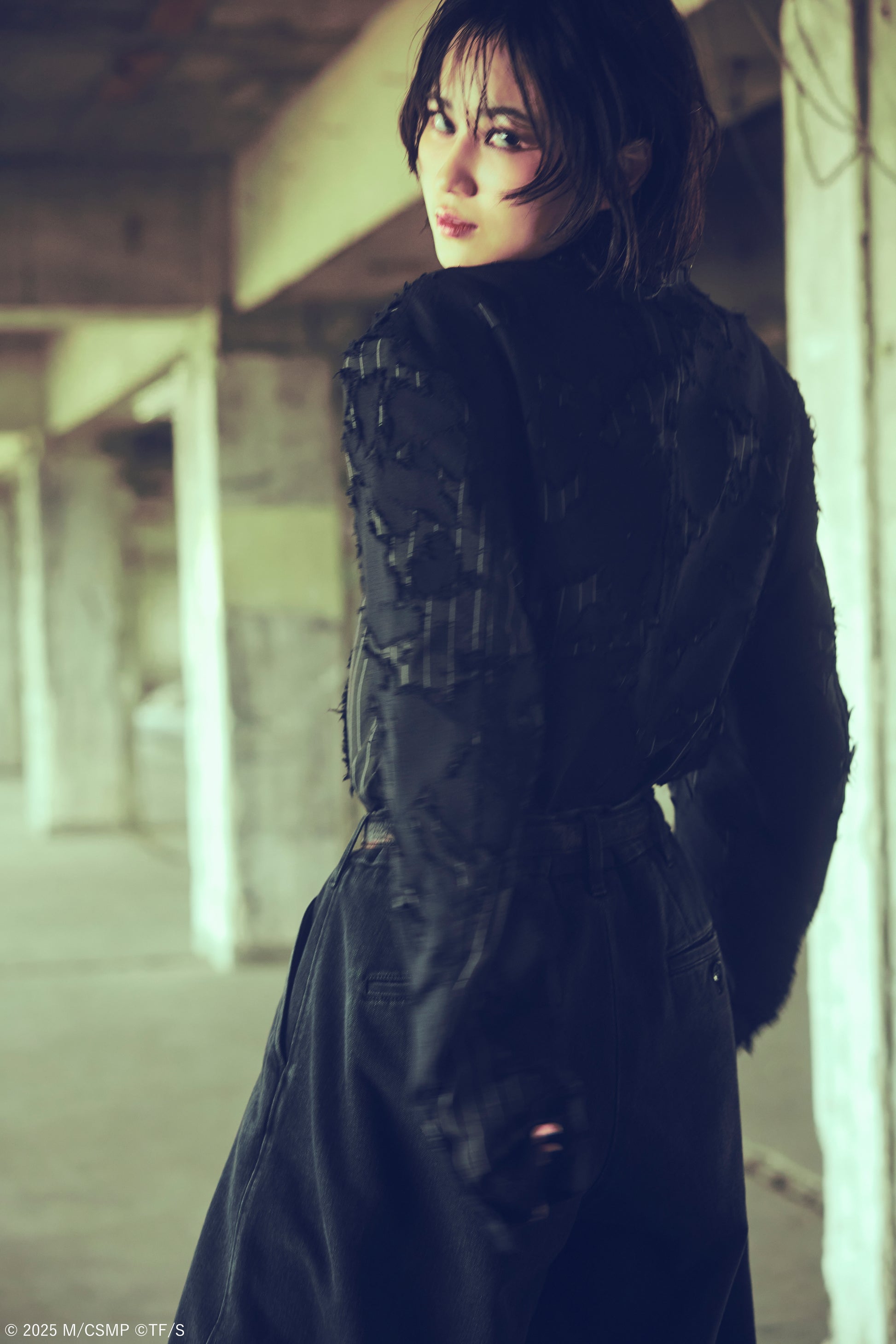 This collaboration collection captures the world of the movie "CHAINSAW MAN: Reze Arc" through Ground Y's creations. The jackets, suitable for all genders, feature an "opal processing" technique, mimicking the slashed appearance by chainsaws.