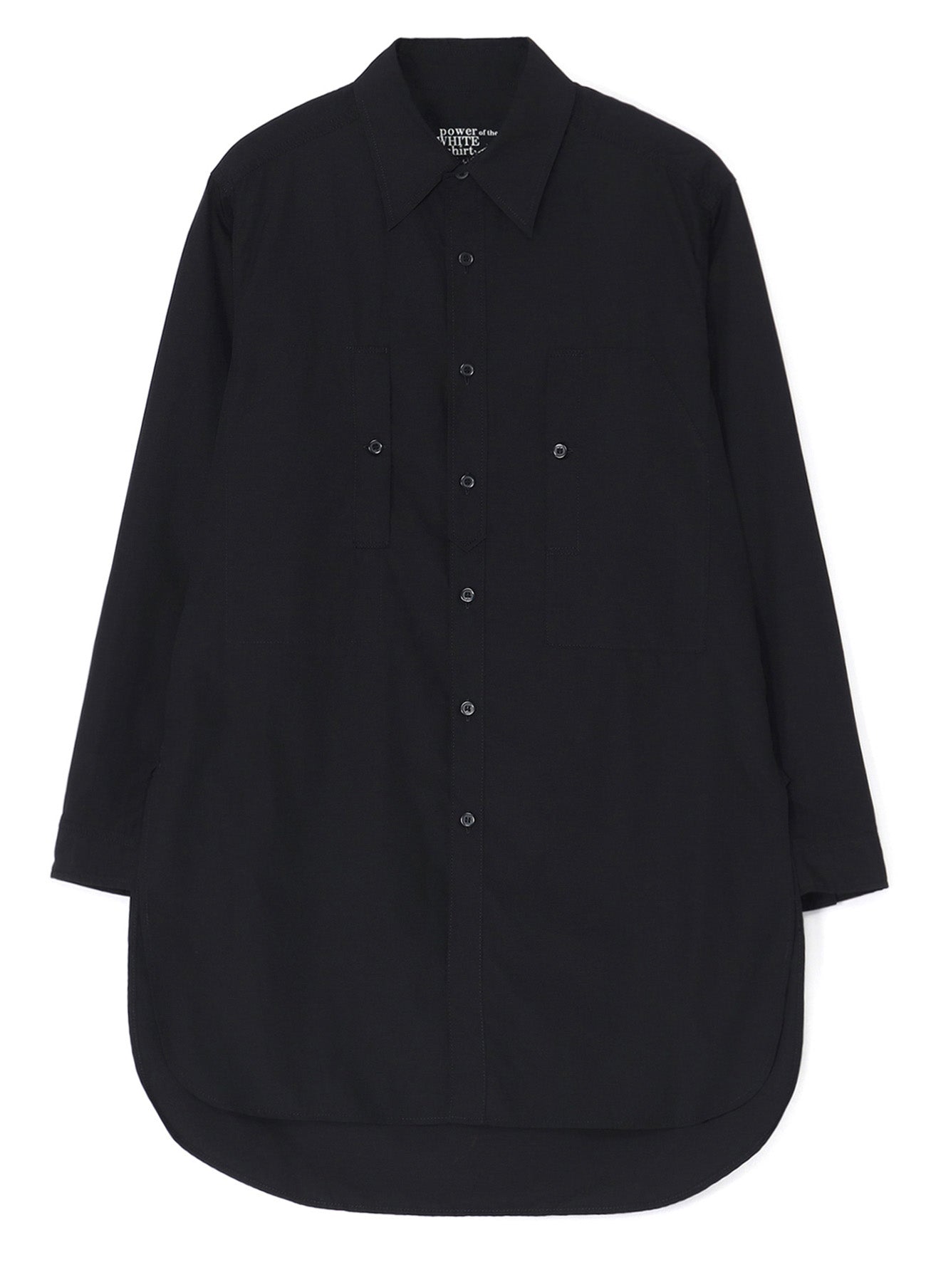 COTTON BROADCLOTH ROUNDED HEM DOUBLE CHEST POCKET SHIRT
