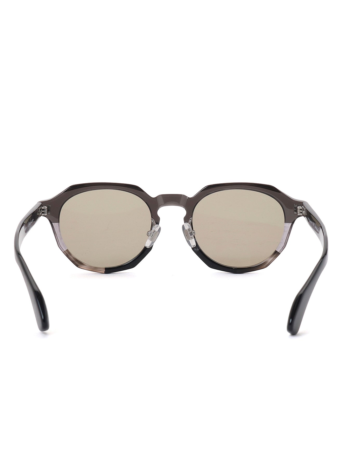 This unique product creates a distinctive presence through overlaps and light. It features a crazy pattern made by combining multi-colored fabrics for originality. The Boston shape design includes bevel cuts for depth. Equipped with 2-curve flat lenses and AR coat, it offers a sharp look and clear vision.