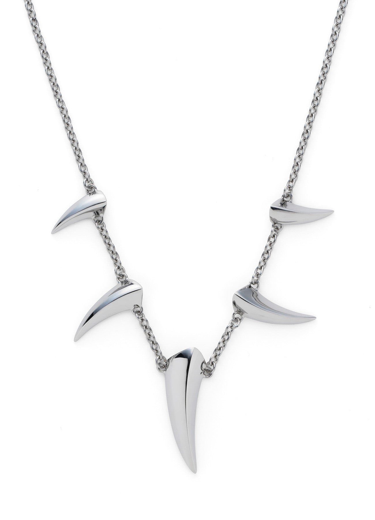 This necklace features a claw design with "bear claws" arranged in a gradient, often worn by hunters as a charm. It's crafted using Silver 925 with black coating, expressing a "new black" jewelry concept inspired by various black tones in clothing. Experience a bold and sharp design with this piece.