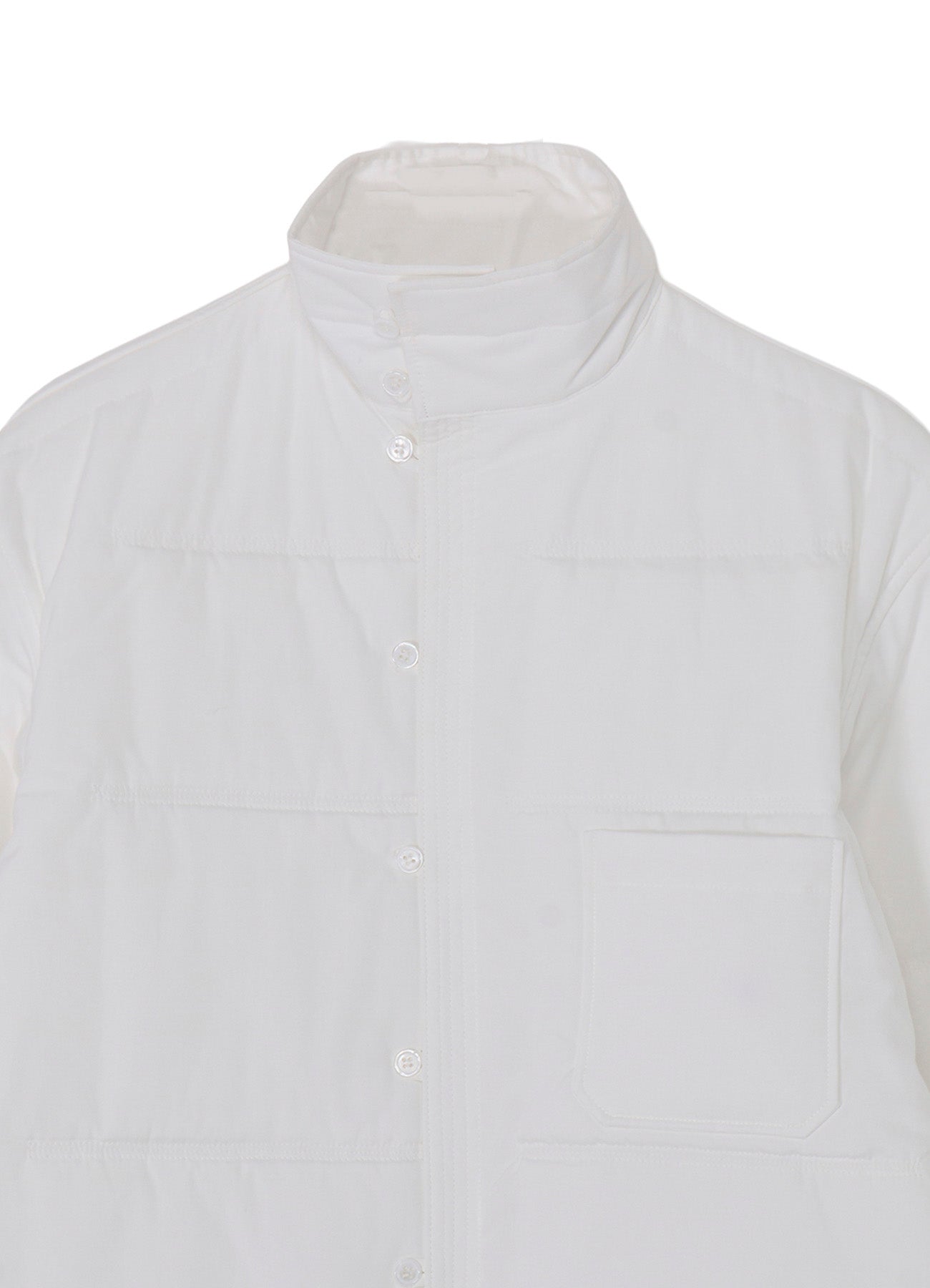This blouse features signature cotton broadcloth, known for its quality and comfort. Through a special process, the fabric becomes notably soft. A padded design with loop buttons and triple stitching adds distinct character, offering an elegant and stylish touch.