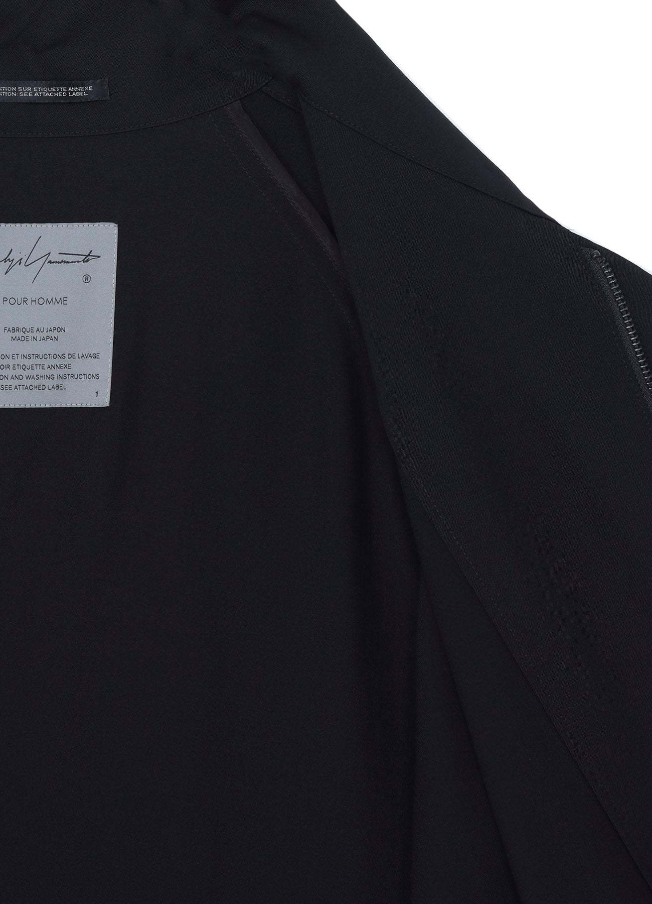 This wool gabardine coat, a signature piece from Yohji Yamamoto, features a striking cross zipper on the body, allowing for versatile silhouette changes. Known for its supple drapery and luster, this coat displays remarkable craftsmanship, combining style and functionality for a unique fashion statement.