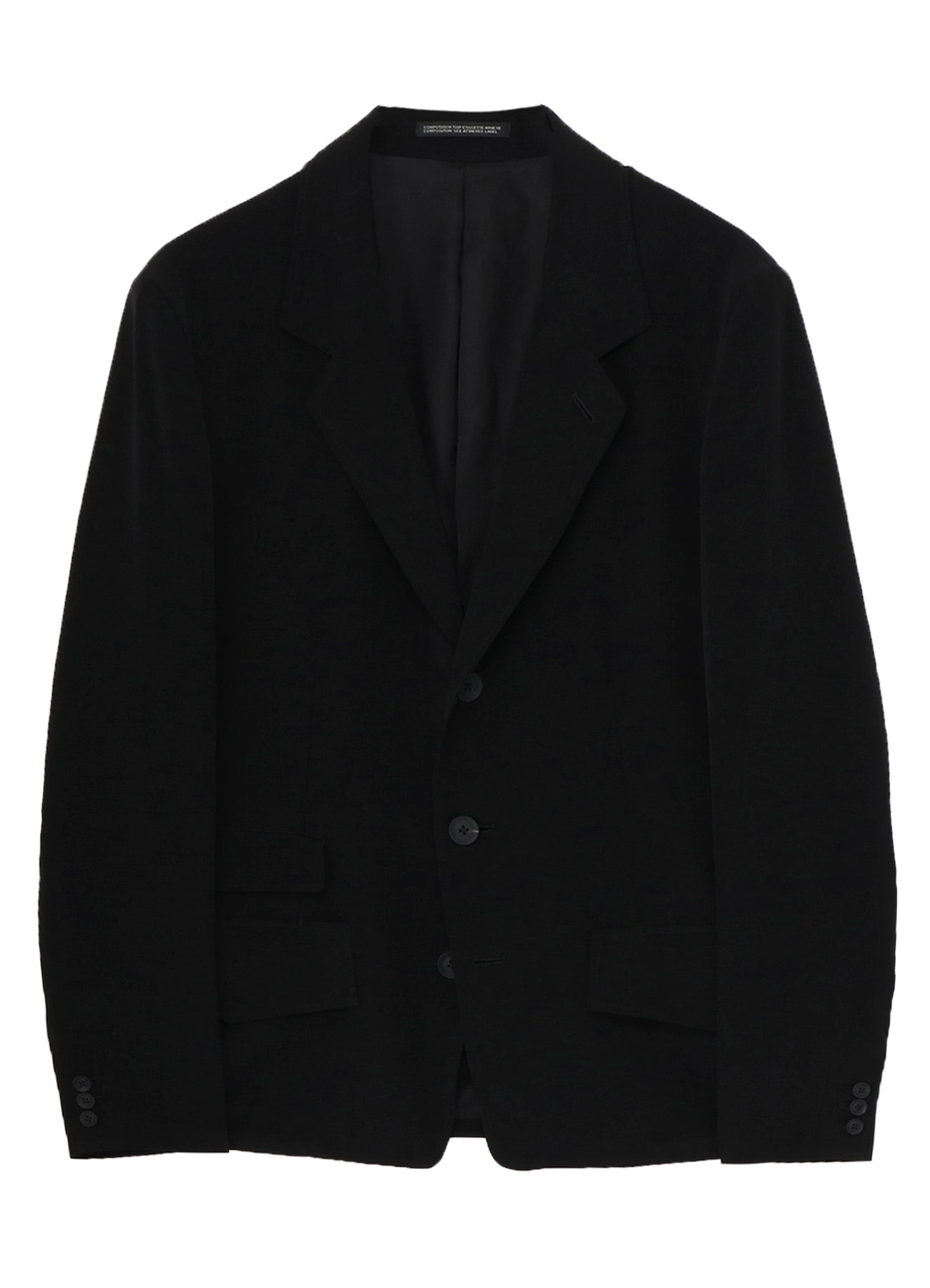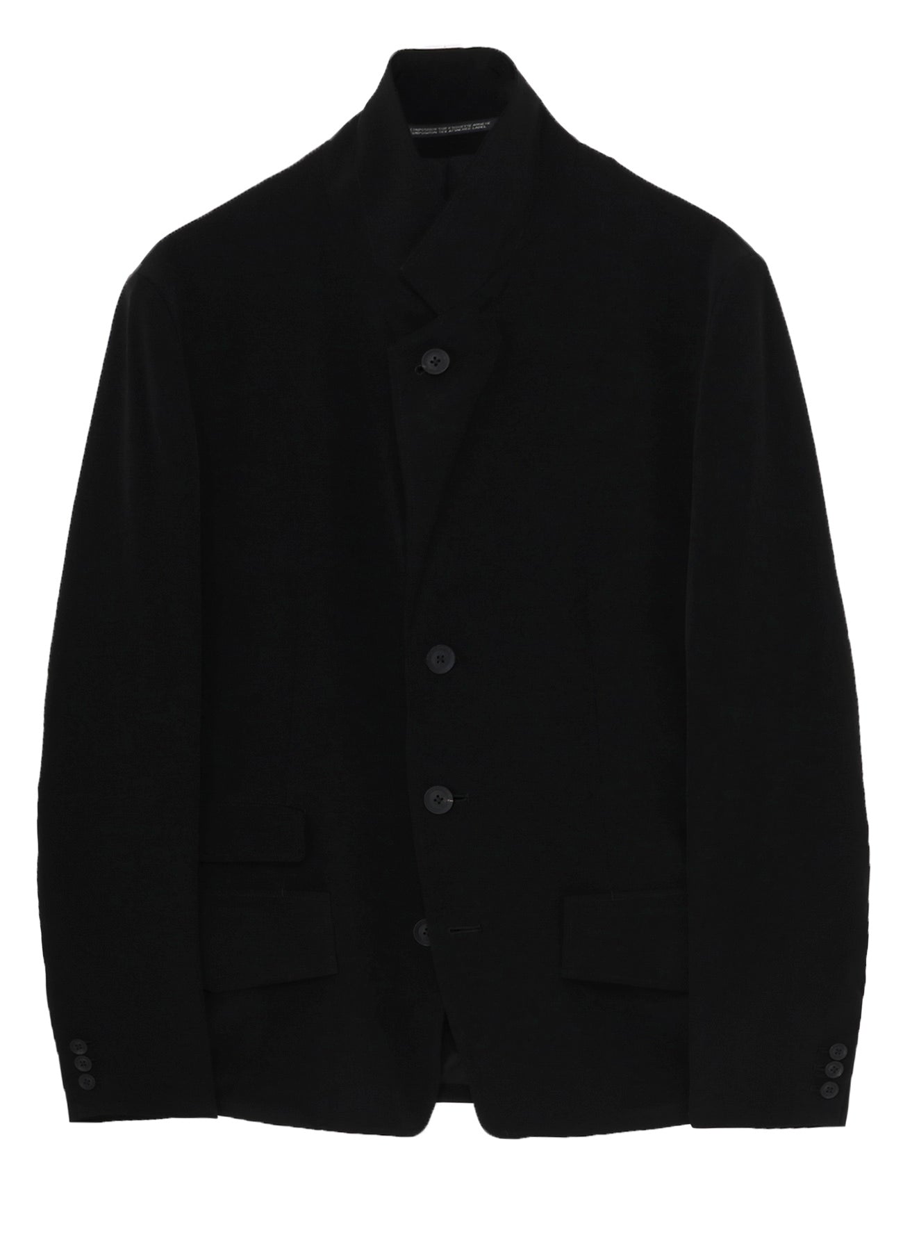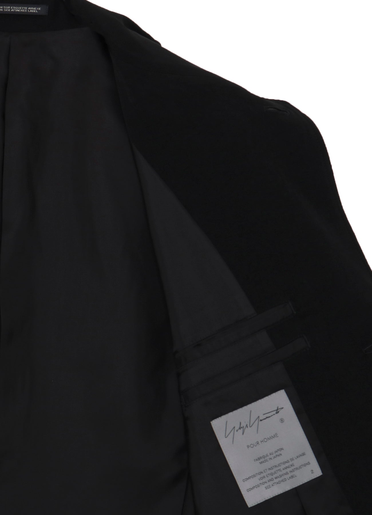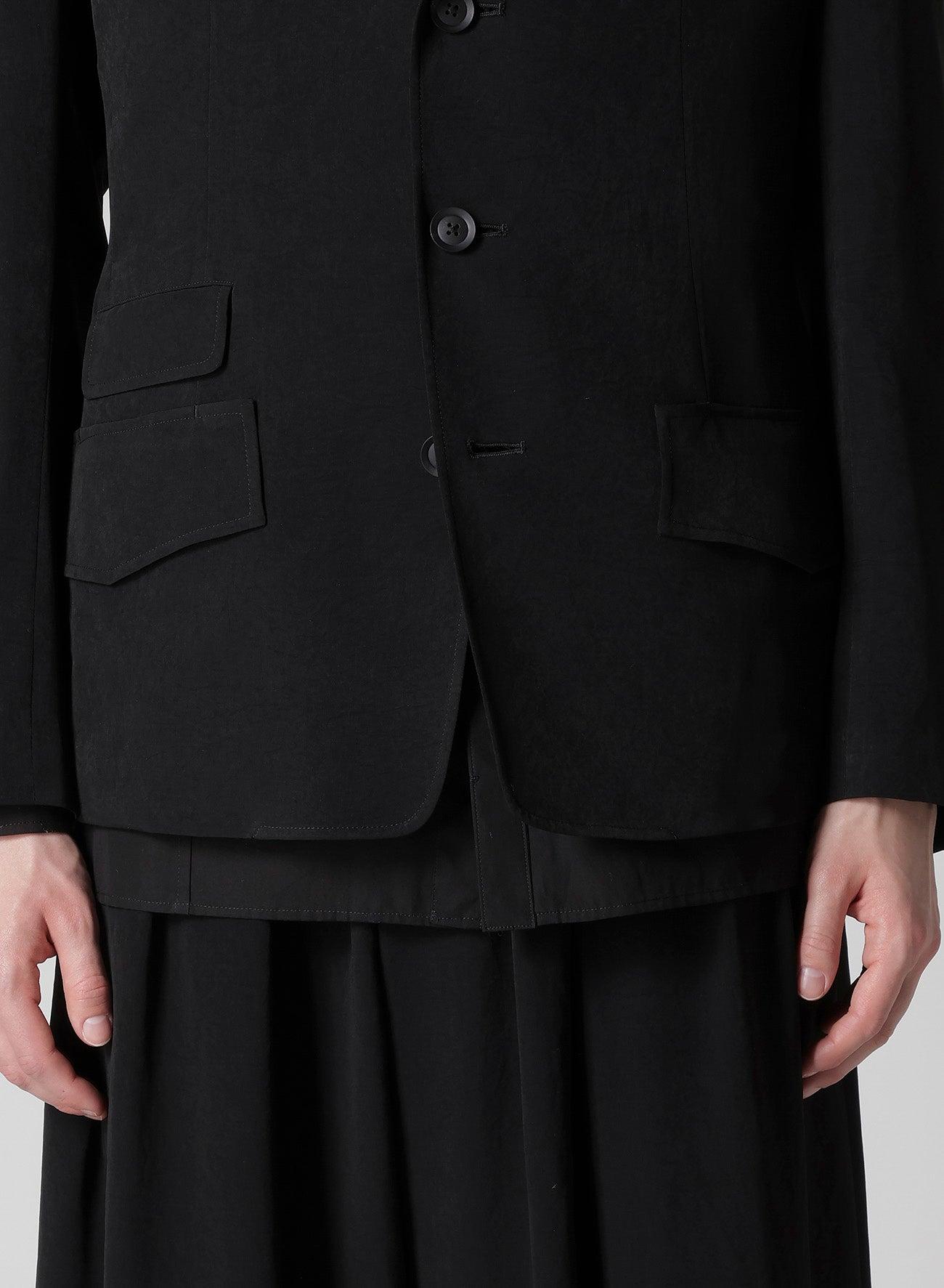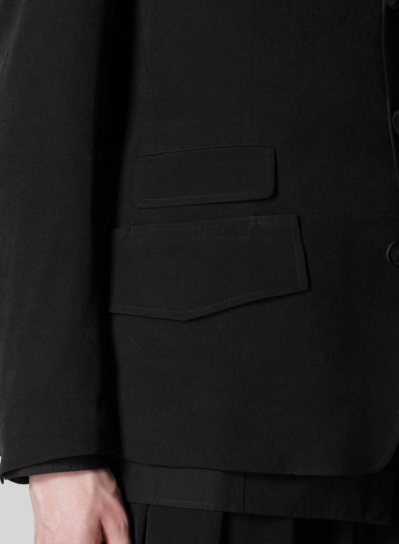 This triacetate/polyester jacket with flap pockets exemplifies the signature material from Yohji Yamamoto collections, combining a mild sheen with luxury. Made using Strong-Twist yarn for the weft, its tightly woven plain weave fabric is characterized by a rich drapery, offering a versatile yet sophisticated style.