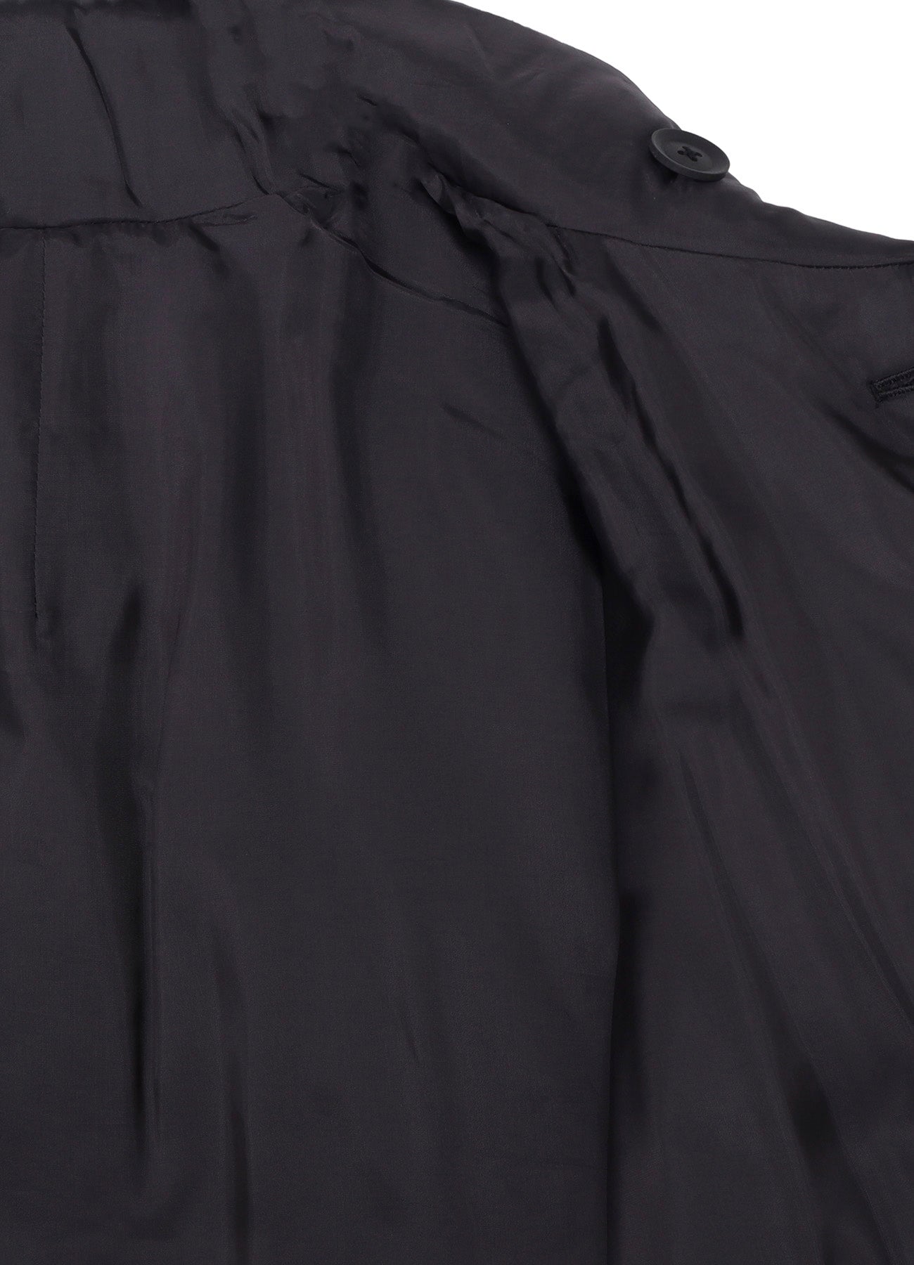 Yohji Yamamoto POUR HOMME A/W 2025-26 introduces a padded jacket with a standing collar. Made from 100% British wool, it boasts strong crimp and bulkiness, adding warmth and a rich texture. The fabric is spun into a homespun-like yarn, showcasing unique spinning characteristics.