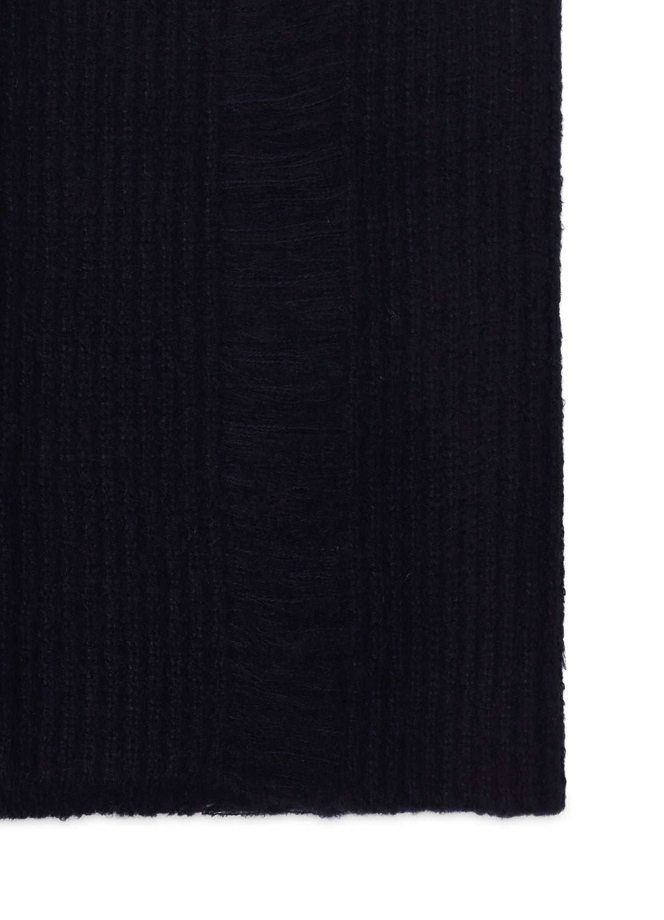 This balaclava, made from a blend of wool and nylon with a unique stitch pattern, features yarn-dyed wool mixed with Extra Fine Wool and boucle yarn. Its lightweight structure provides a voluminous and soft texture, highlighting its aesthetic appeal.