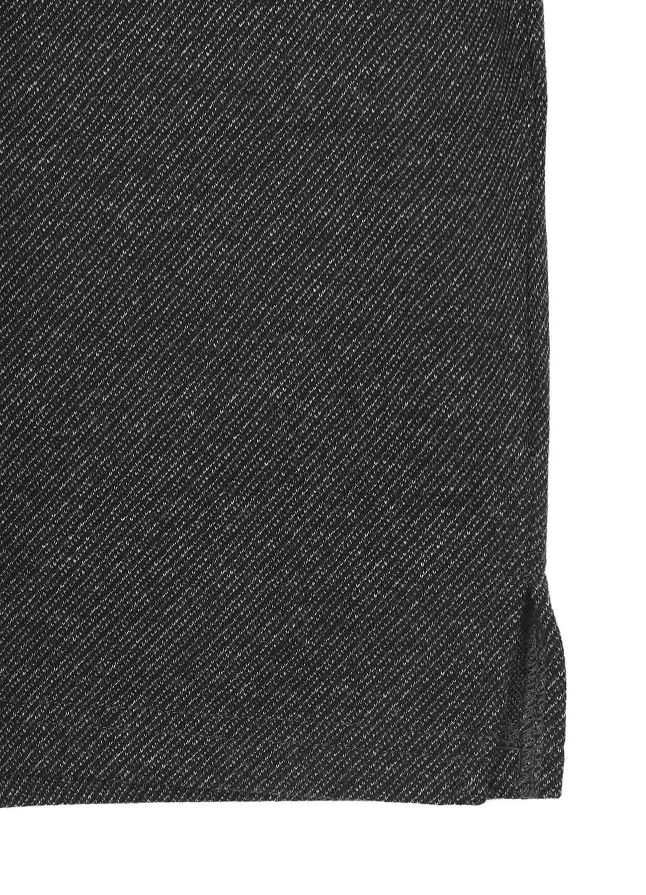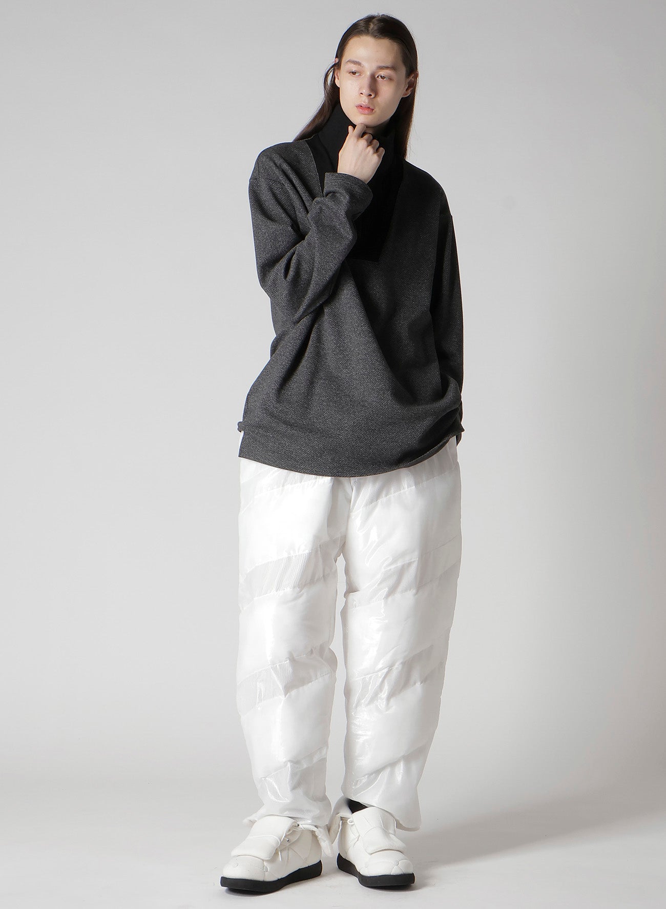 A padded half-zip top from Yohji Yamamoto POUR HOMME A/W 2025-26 Collection, Look 34. The fabric features depth in color, crafted from yarn-dyed, twisted yarn with heathered appearances. A chic expression of a wool blend, the twill pattern is subtly blurred in knitting for a refined aesthetic.