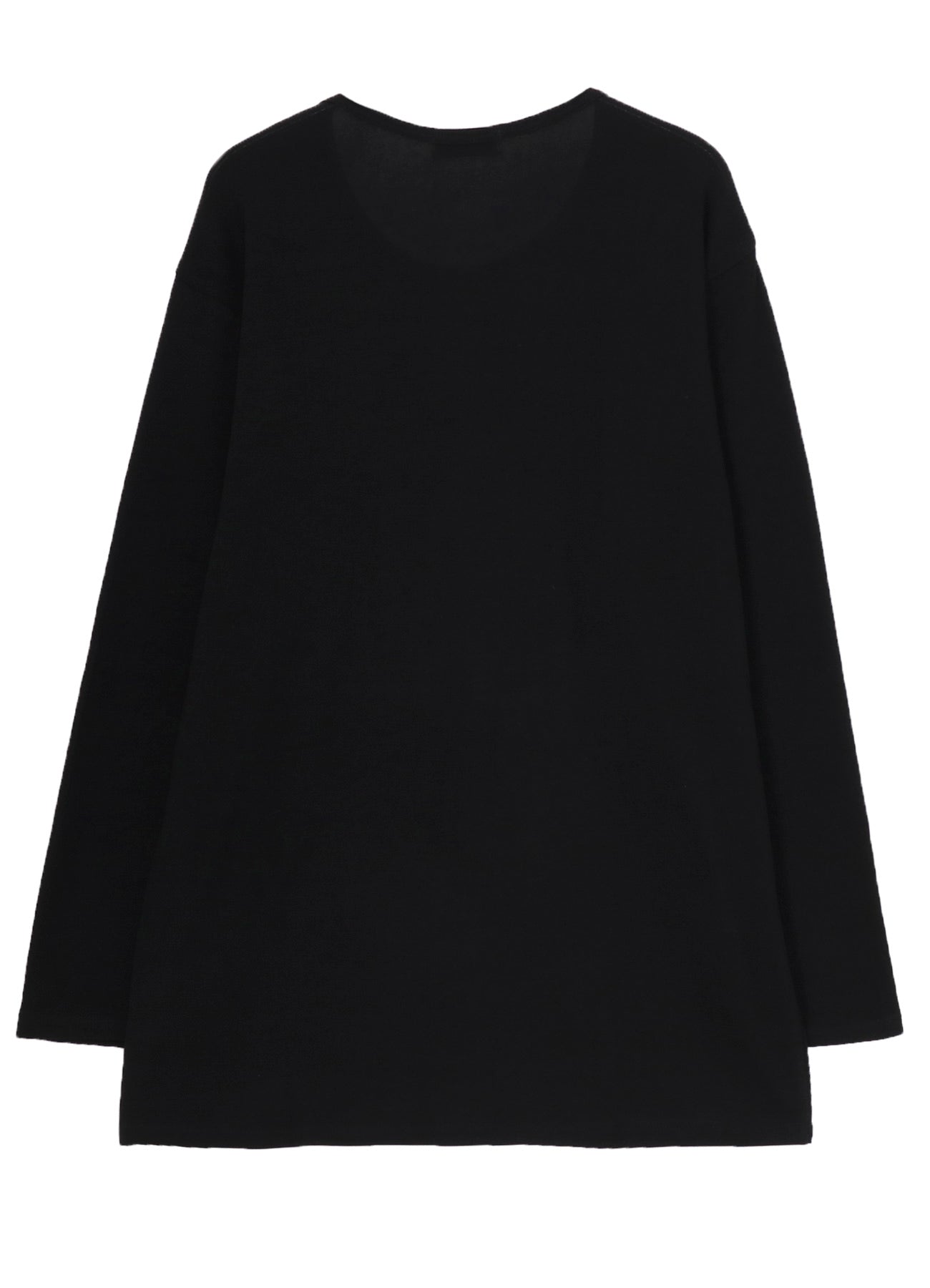 This cotton Angora blend long-sleeve top features an outer pocket. Made from a blend of lightweight, soft Angora and cotton, it retains a natural softness by not being overly tight-knit. Enjoy a comfortable wear experience with its uniquely gentle texture.