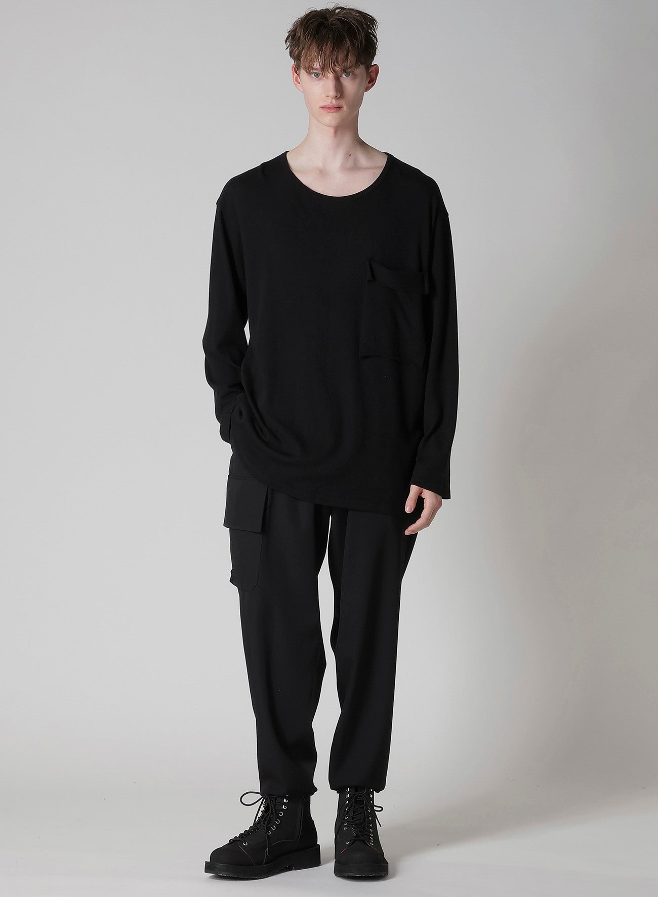 COTTON ANGORA PLATING JERSEY CHEST PKT LONG SLV T