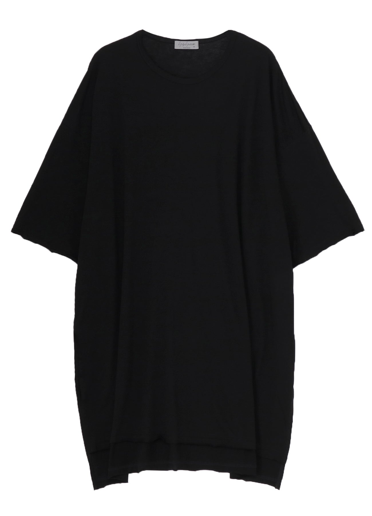COTTON CASHMERE JERSEY BIG ROUND NECK SHORT SLV T