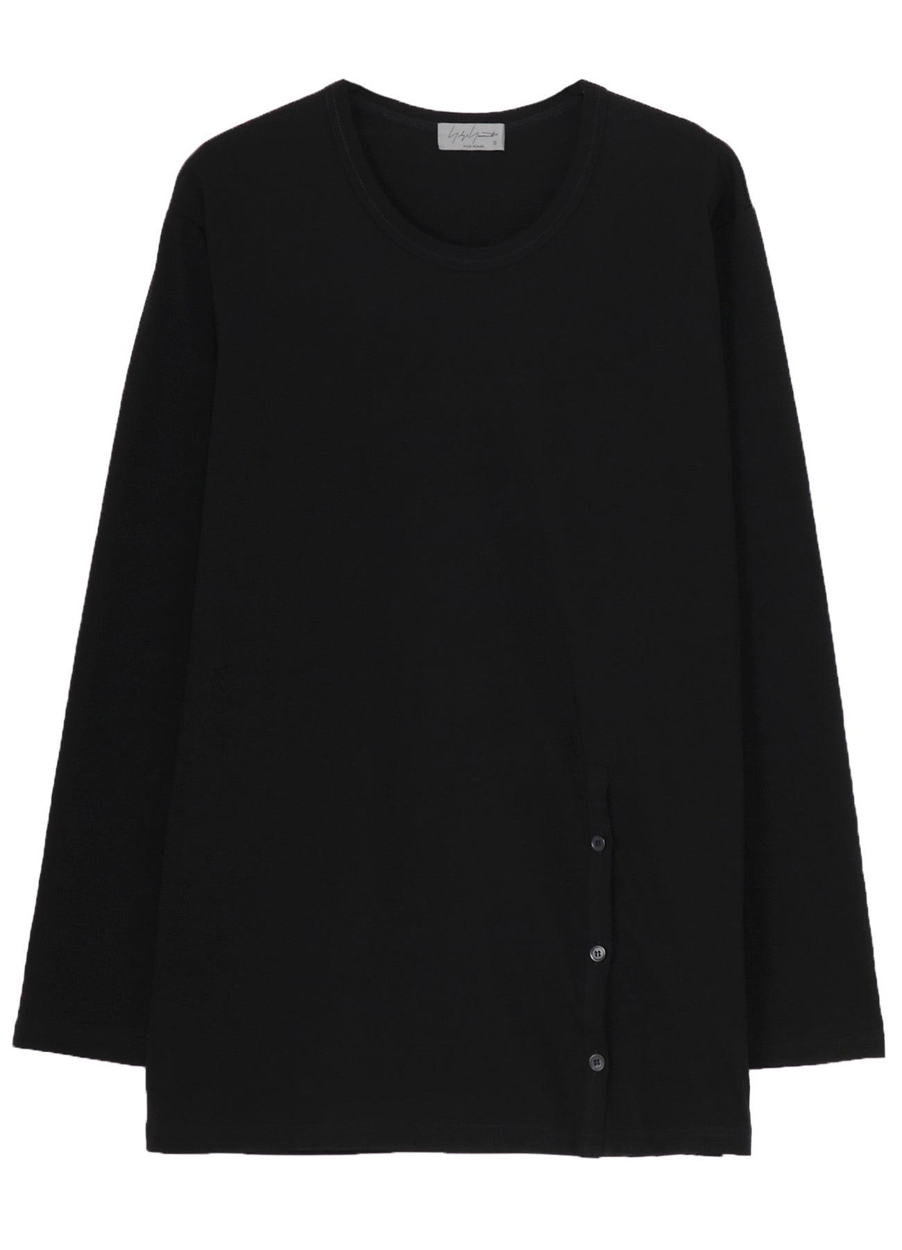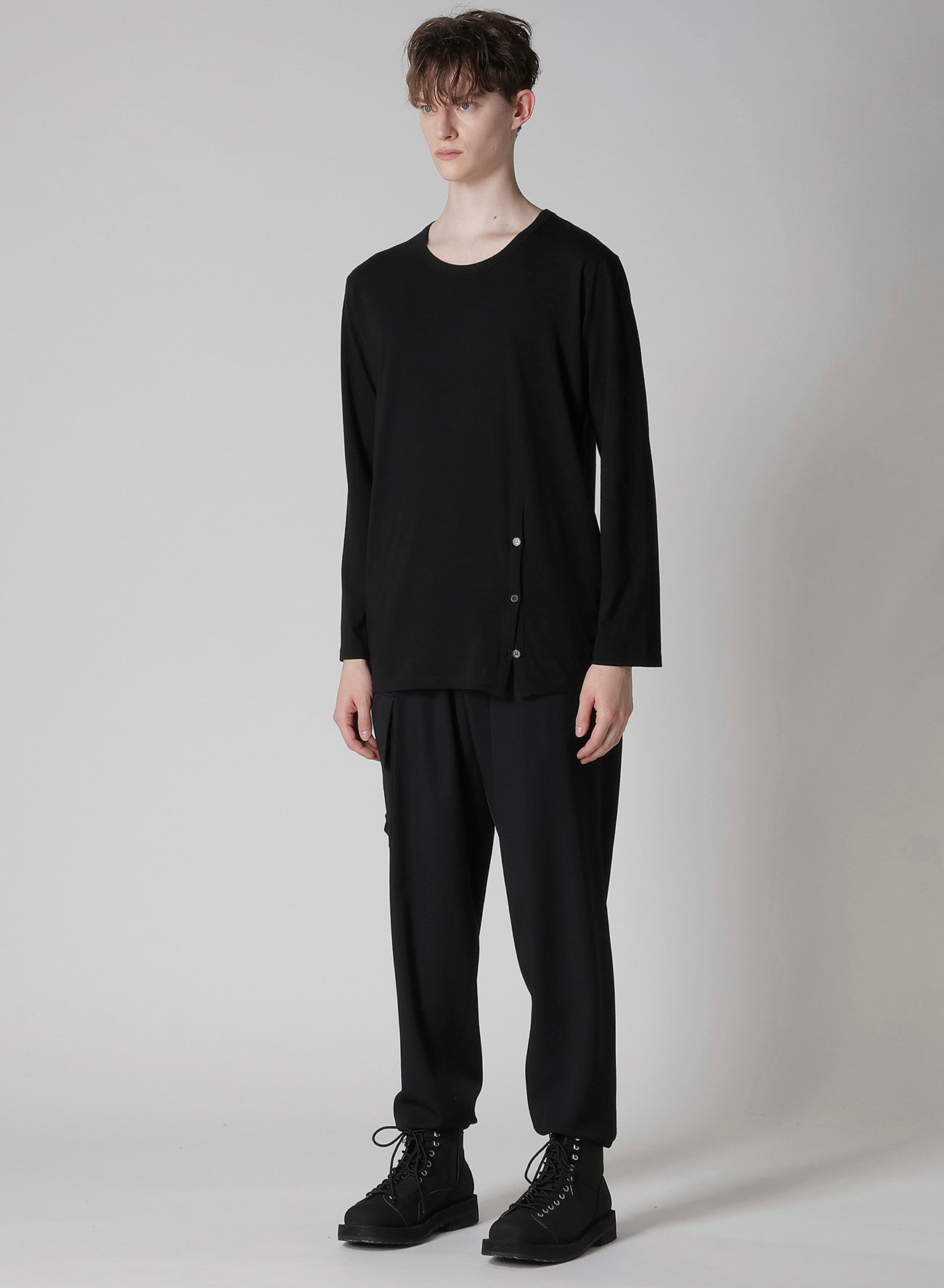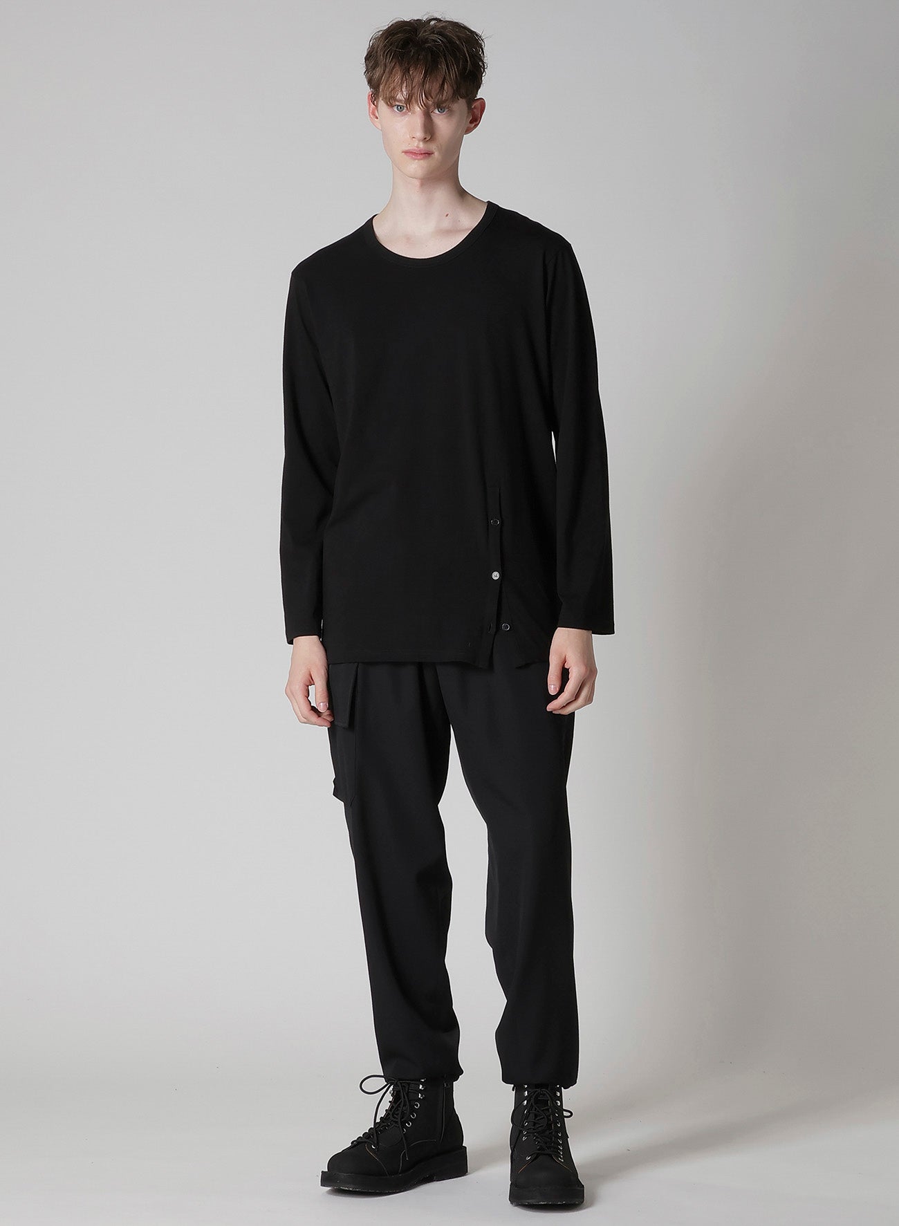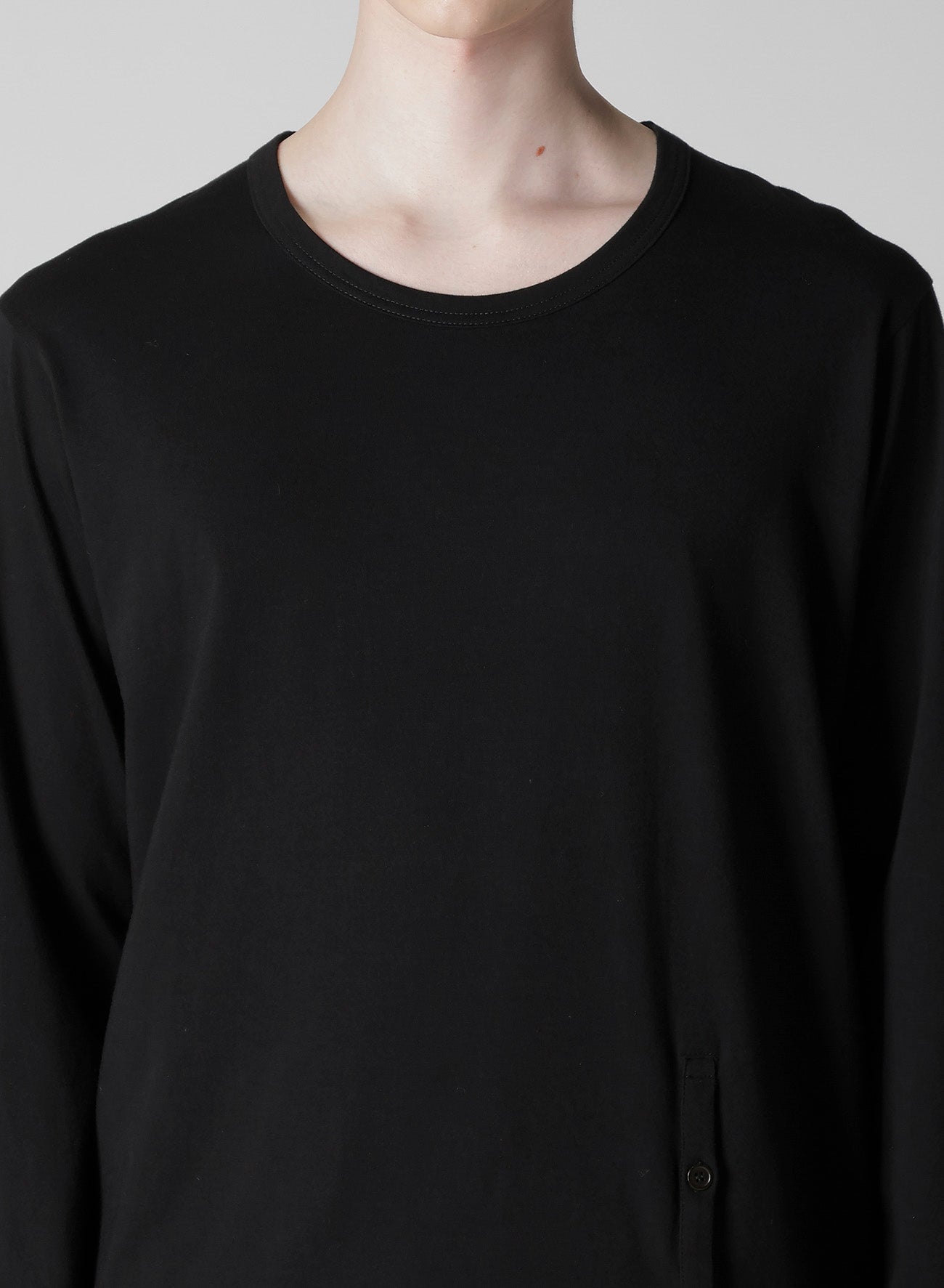 30/-COTTON SINGLE JERSEY BUTTON SLIT LONG SLV T