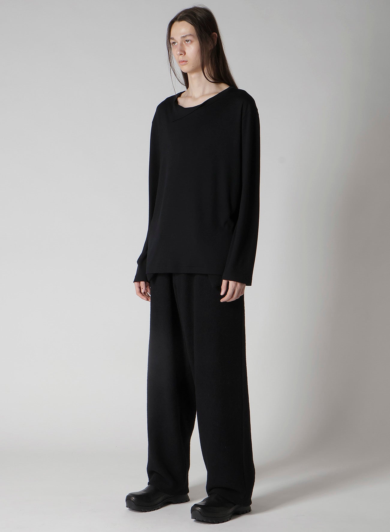 1/80 WASHABLE WOOL INTERLOCK LAYERED NECK LONG SLV T