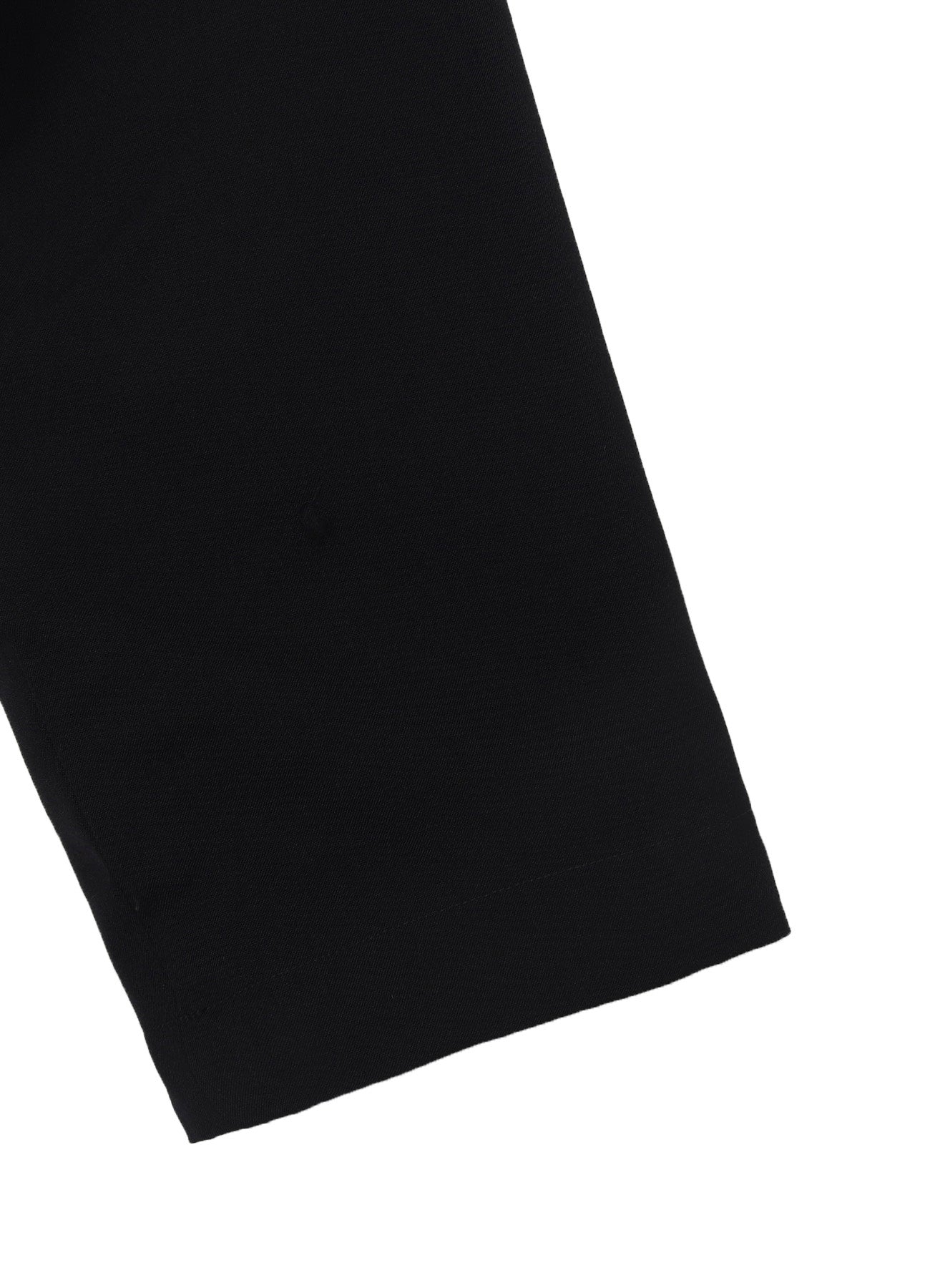This piece from Yohji Yamamoto incorporates their signature wool gabardine to create a sleek, standing-collar coat. Its impactful drapery is attributed to the supple and lustrous nature of the wool gabardine, embodying the timeless sophistication and craftsmanship that define Yohji Yamamoto's work.
