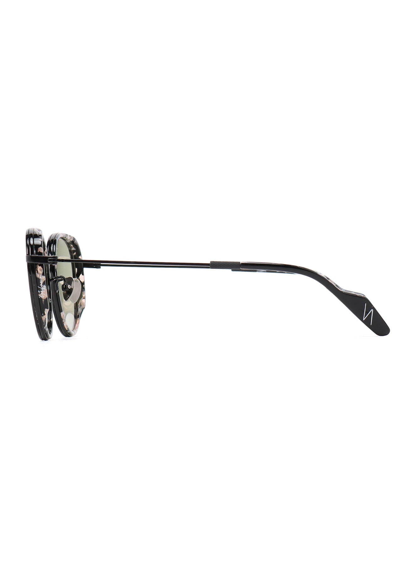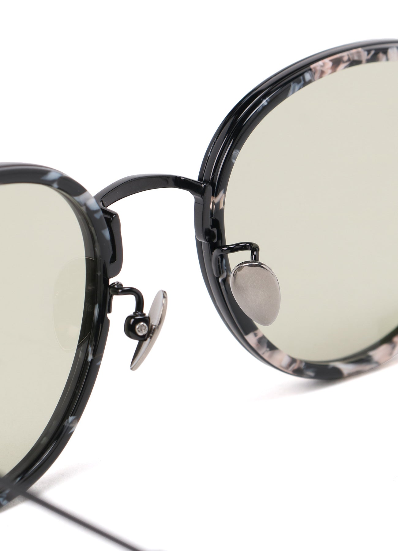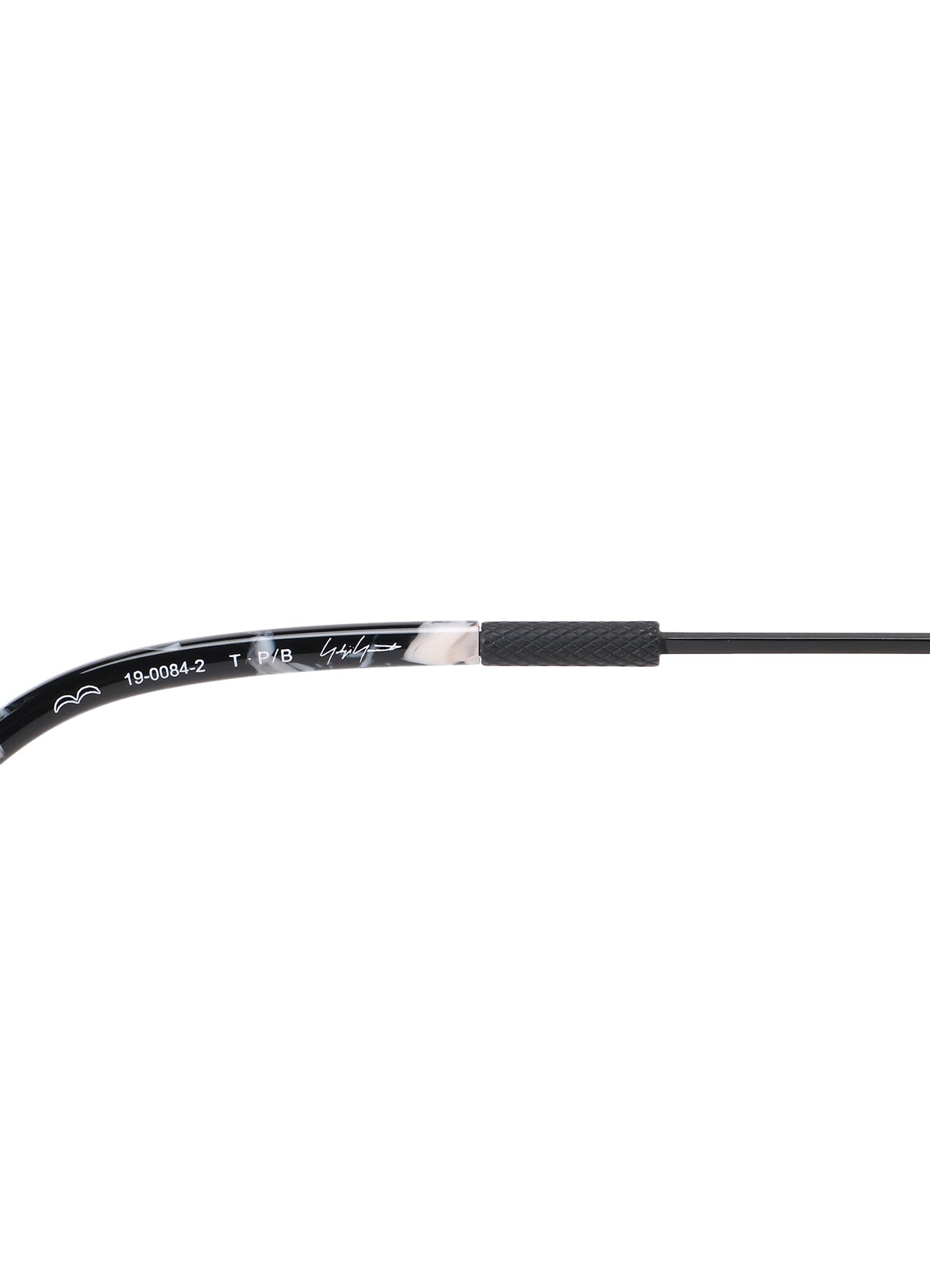 These eyewear feature a unique blend of metal Boston style and textured hood. The intricate blade-motif temples are made from beta titanium for comfort. The modern front end is accented with a knurled metal design.