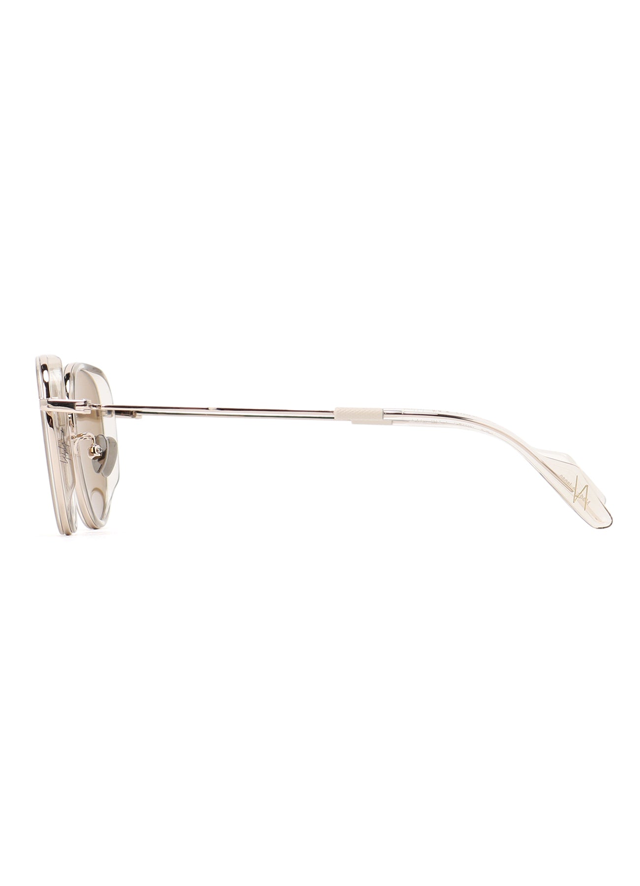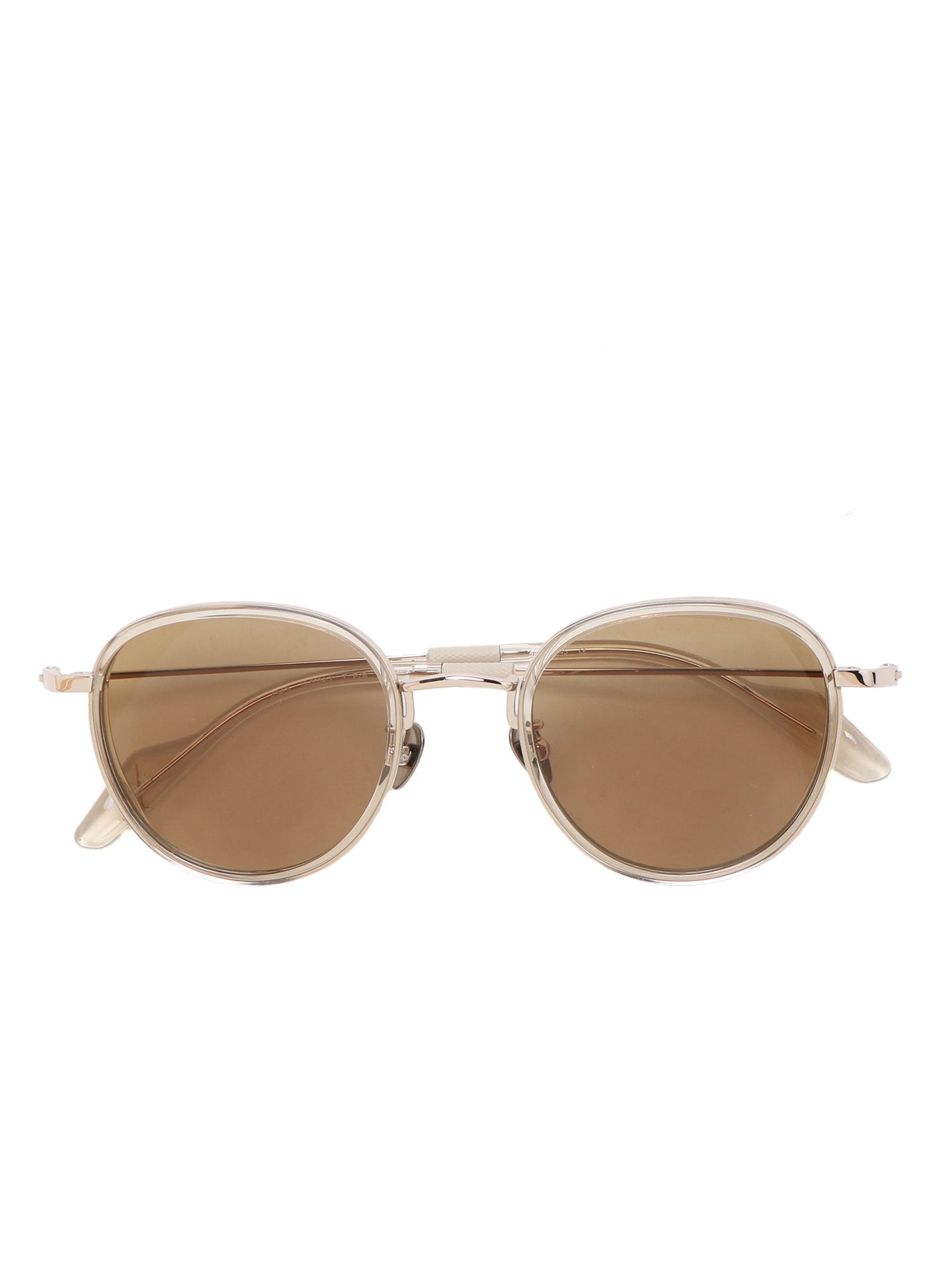These eyewear feature a unique blend of metal Boston style and textured hood. The intricate blade-motif temples are made from beta titanium for comfort. The modern front end is accented with a knurled metal design.