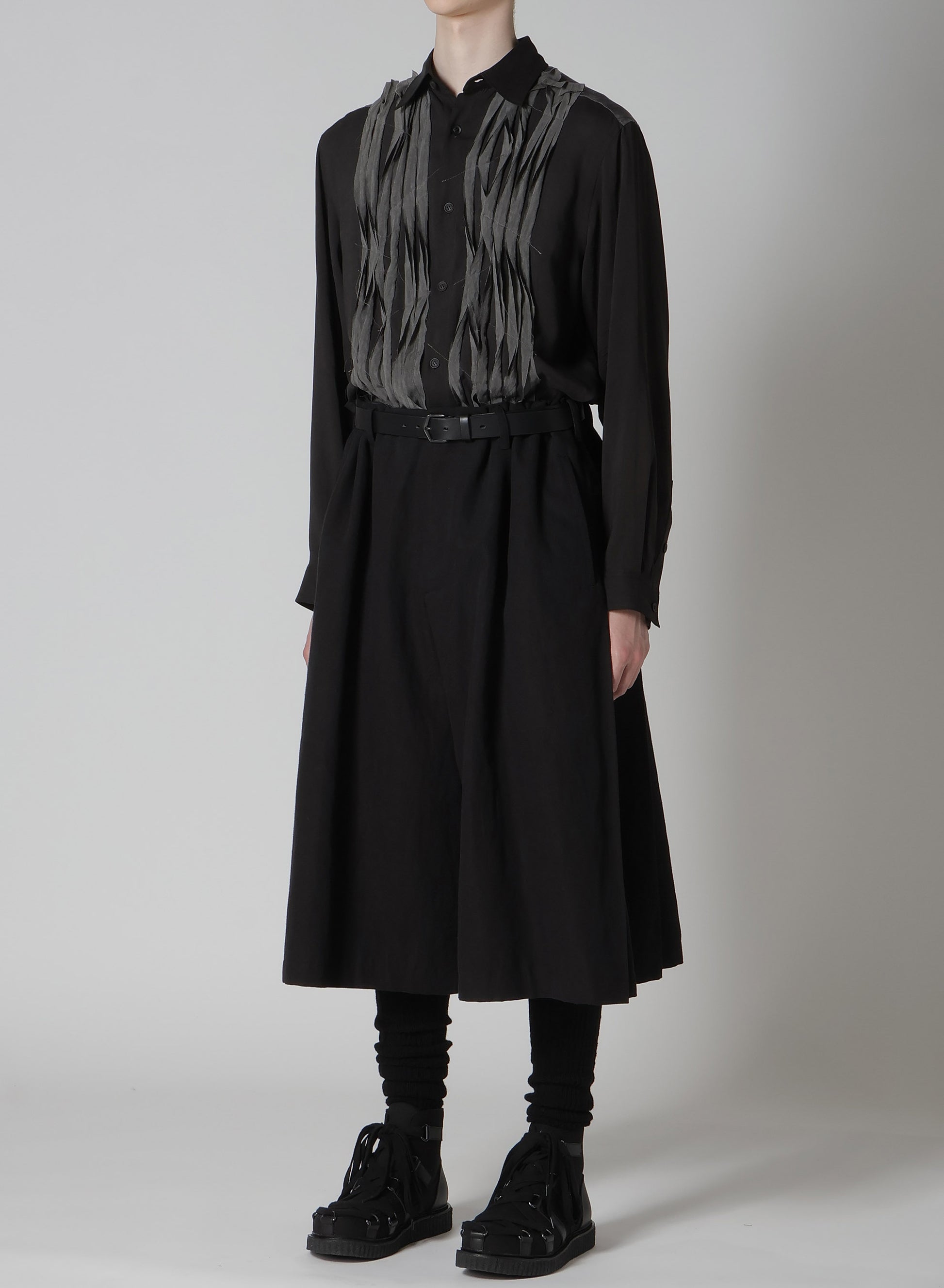 These pleated half-pants featured in LOOK2 are dyed using traditional techniques by master dyers, maximizing the natural texture of the material. This special natural dyeing method gives the fabric a washed-like texture with a nuanced, uneven look, enhancing the natural feel of the fibers.