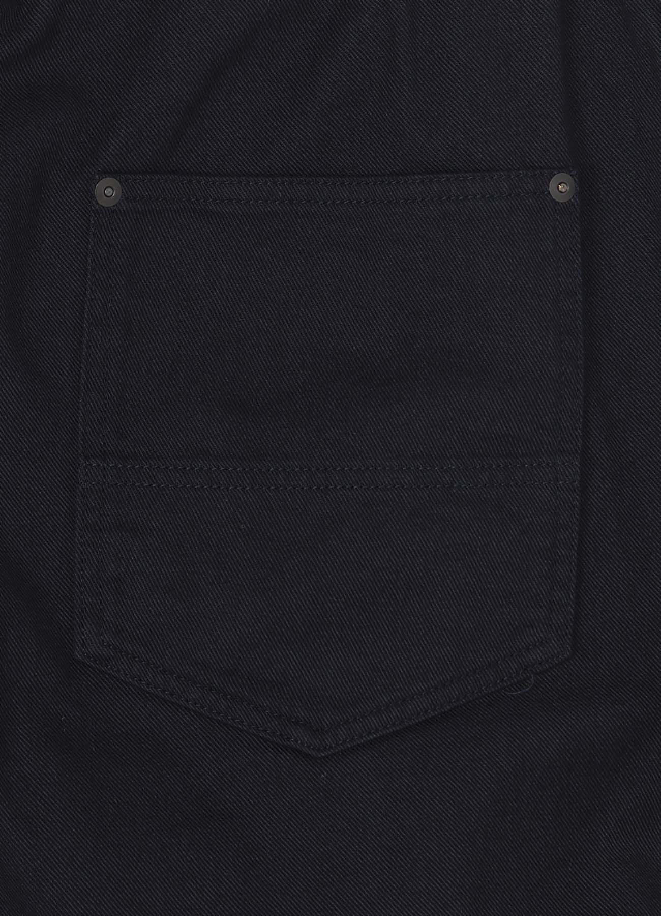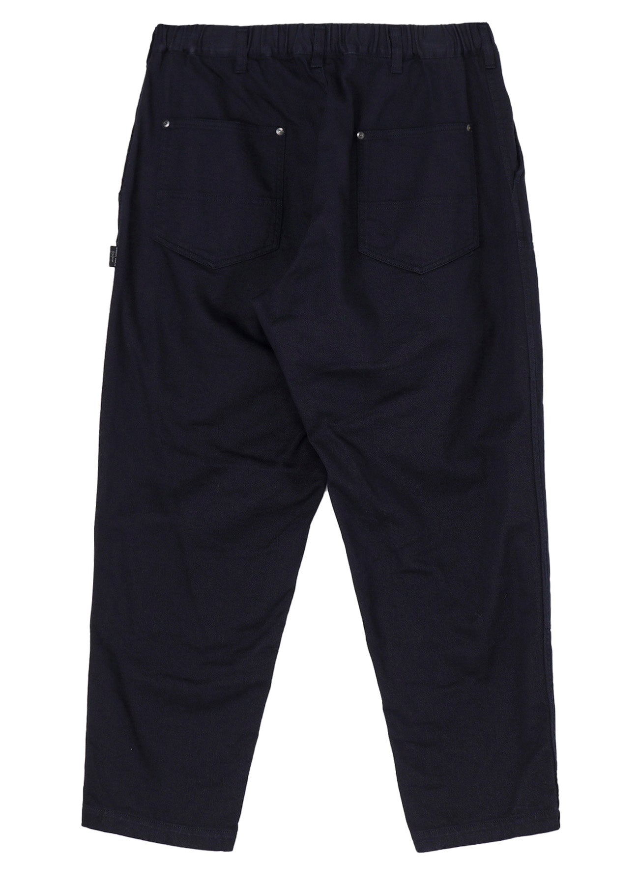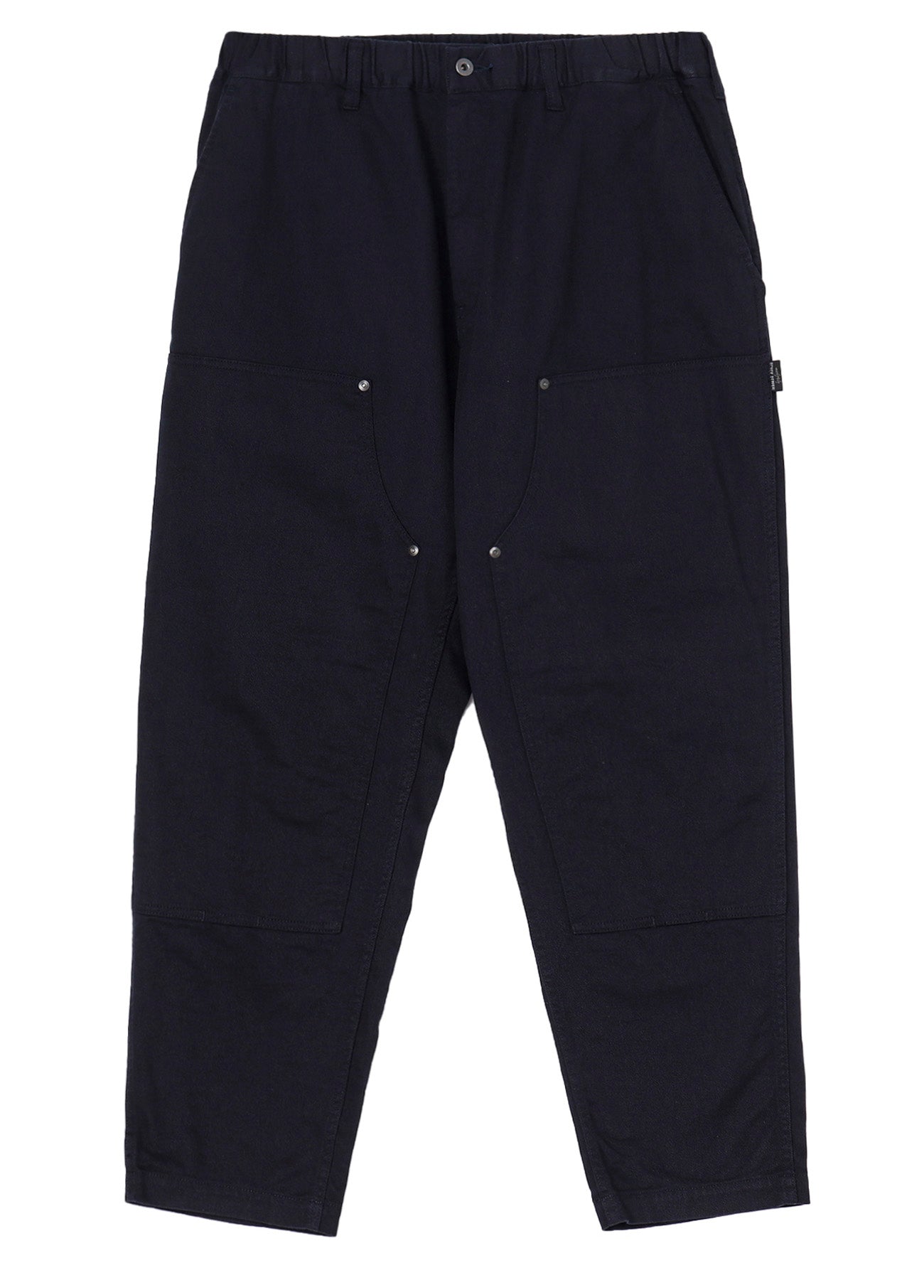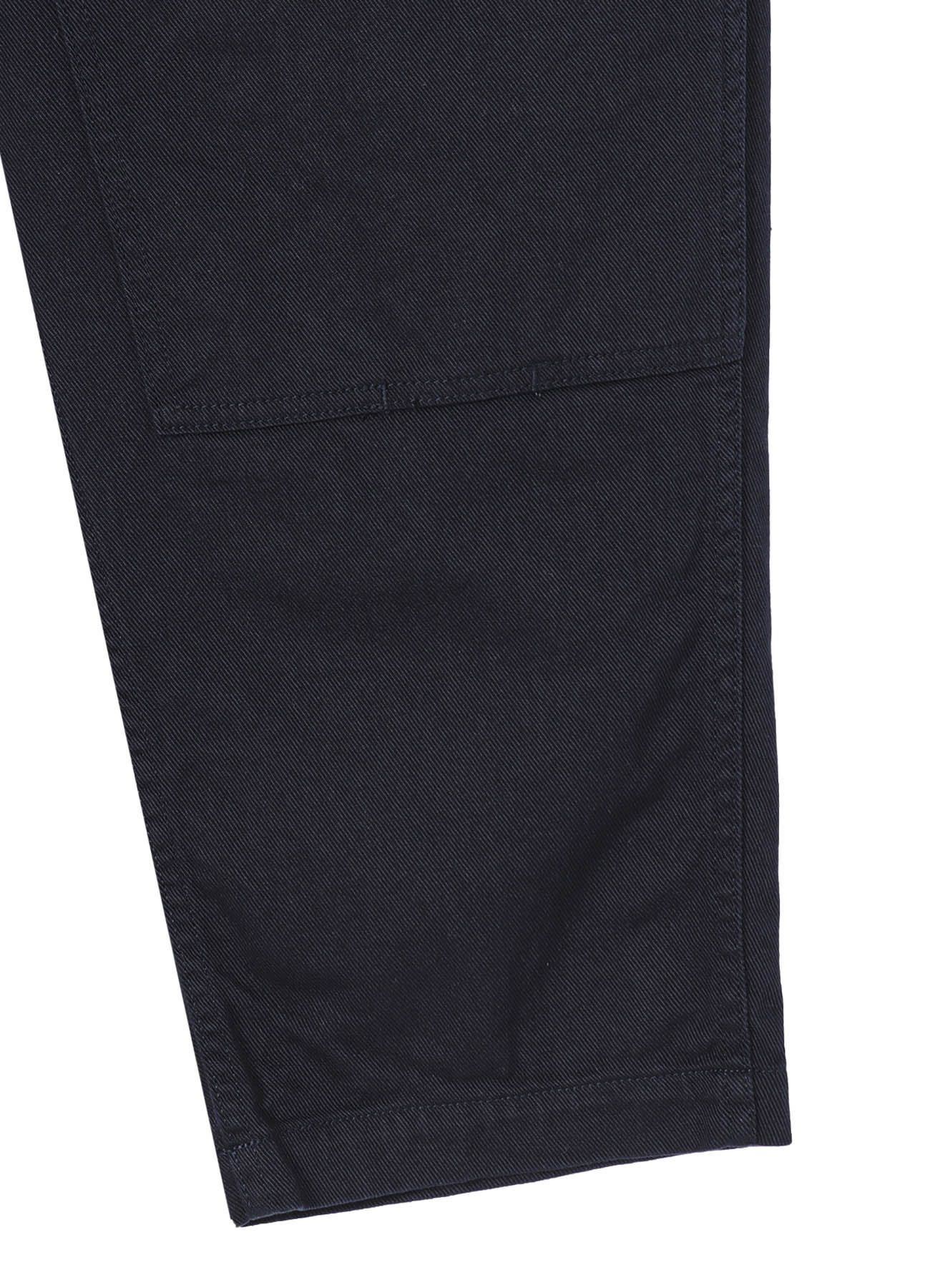 This no-tuck work pants are made from drill fabric, characterized by its prominent diagonal lines created by thick threads. The steeper than 45-degree twill angle helps water droplets and rain to easily slide off, making it an ideal material for workwear.