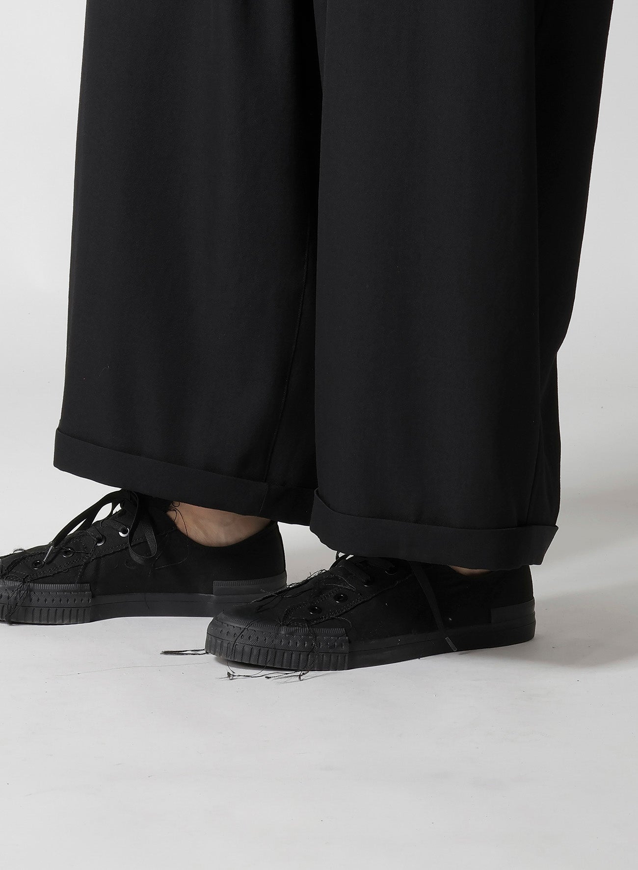 Featuring Yohji Yamamoto's signature wool gabardine, these overalls boast a sleek tailored design with a covered fly placket and waist drawstring for adjustable silhouettes. The material's flexibility and sheen create distinctive drapery, making it a standout piece in any wardrobe. Ideal for fans of unique yet timeless fashion.