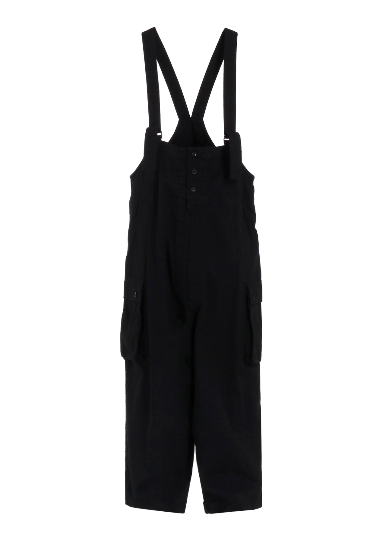 This work overall features oxford fabric, known for its breathability due to its medium-weight plain weave with multiple yarns. It has a soft texture, resists wrinkles, and feels pleasant on the skin.