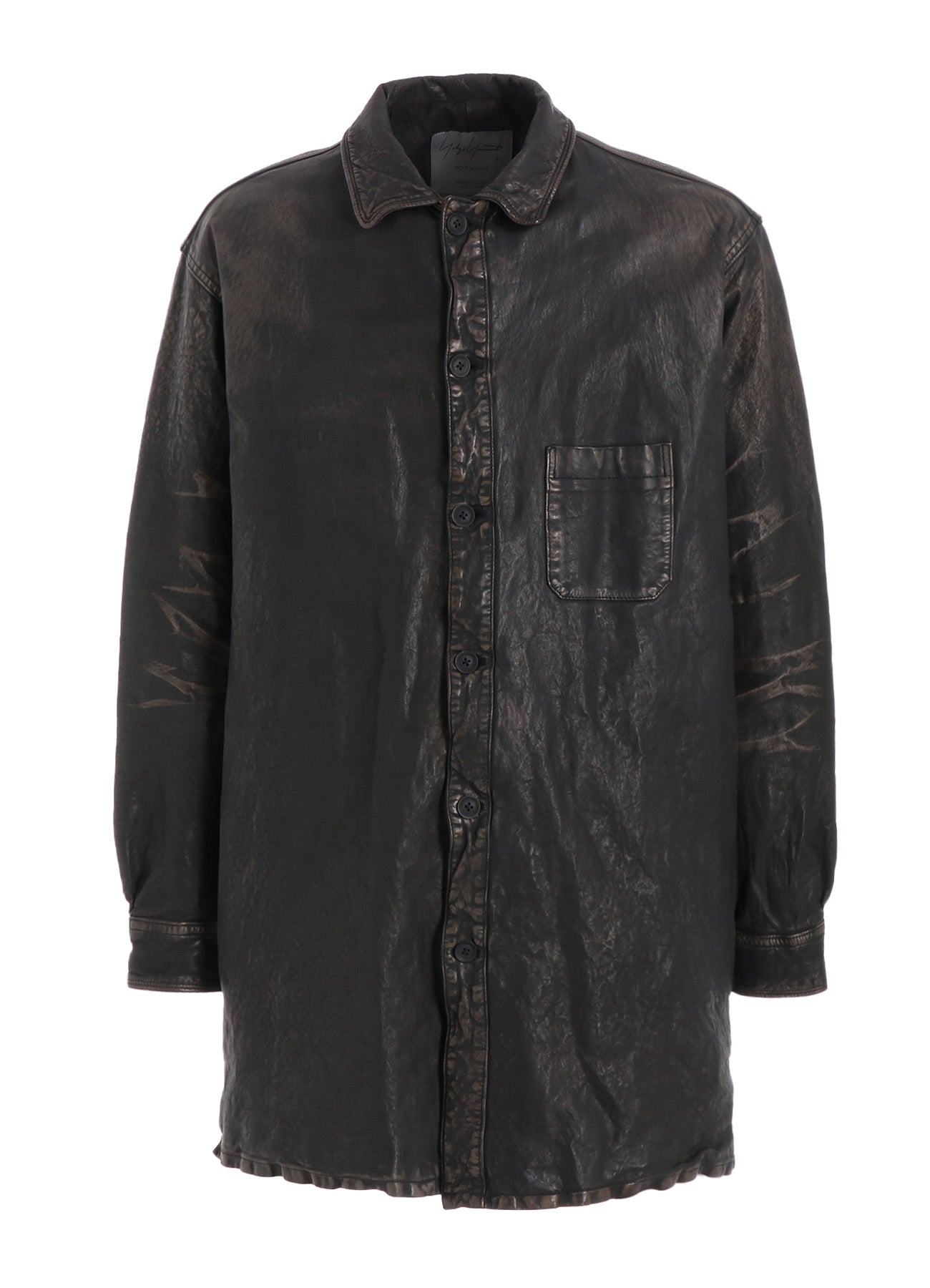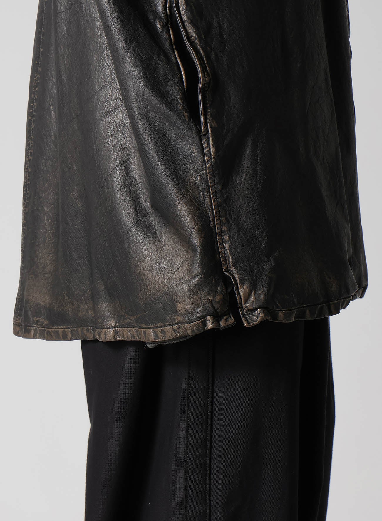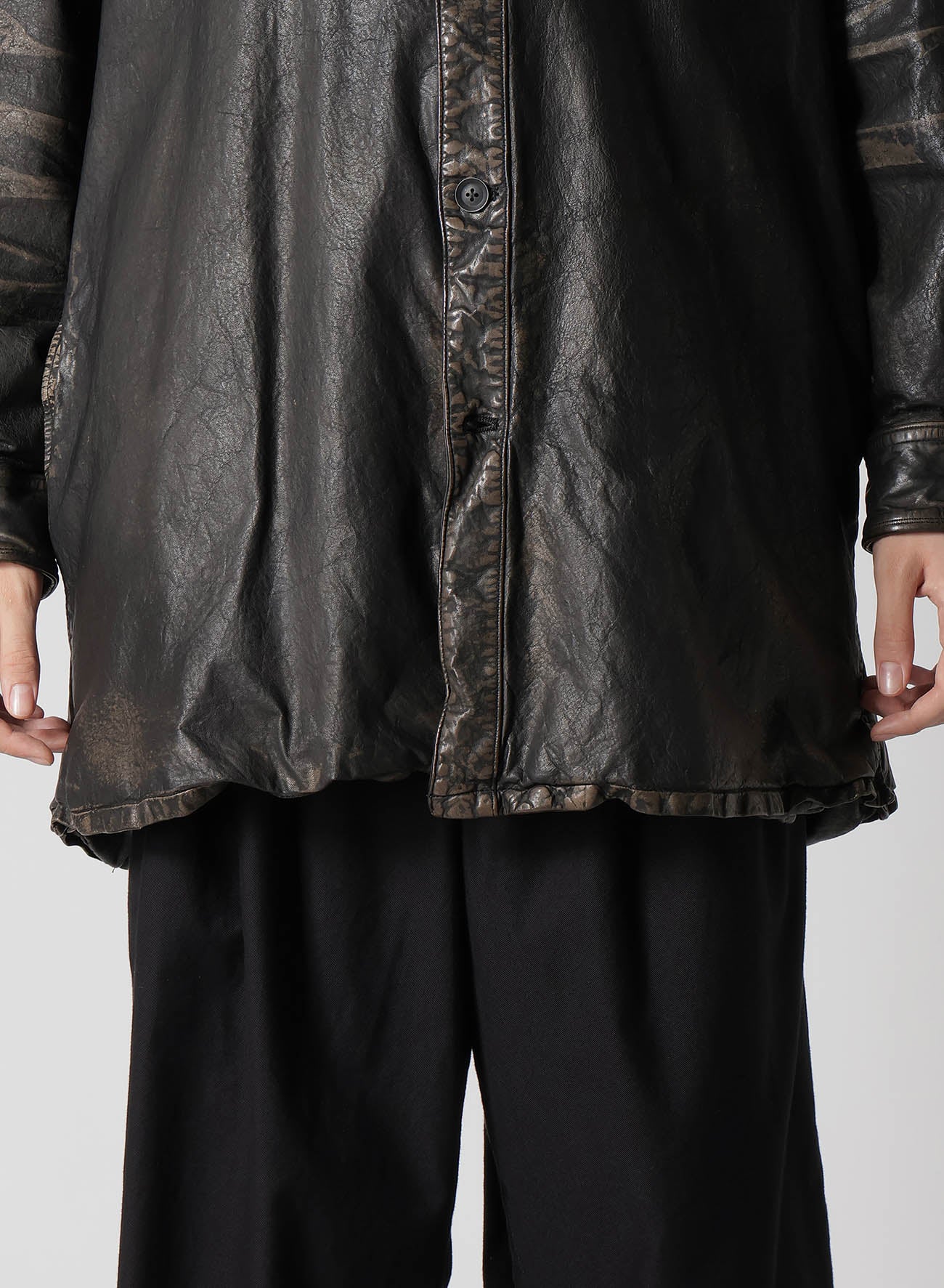 Crafted from domestically sourced steer leather, this shirt blouson boasts garment dyed and vintage processing. With a thickness reduced to 0.6mm, it offers a soft, lightweight feel. Achieving a vintage aesthetic, its two-step dye and surface treatment create a well-worn charm.