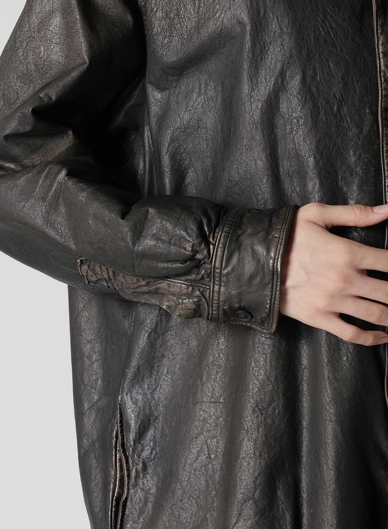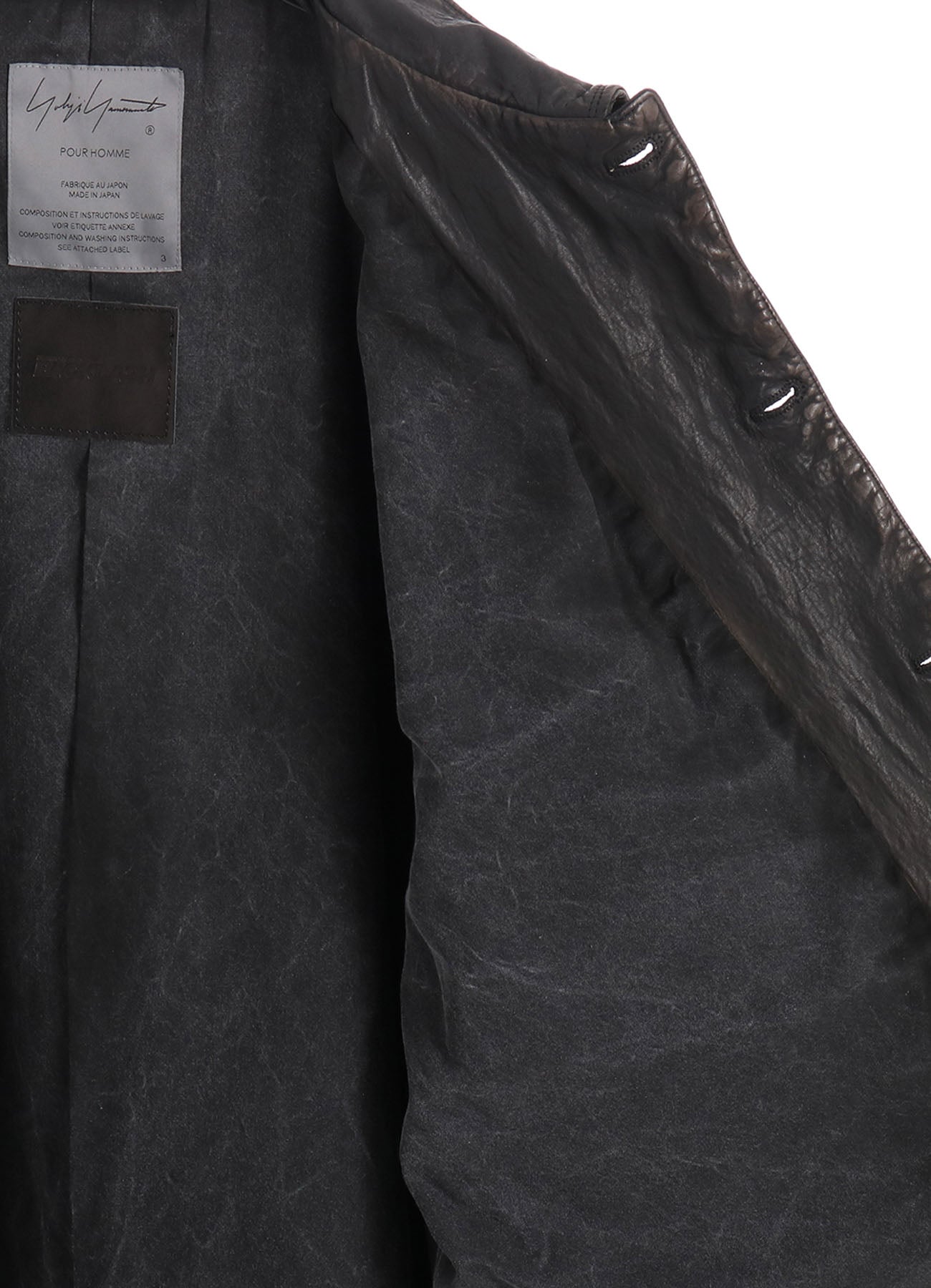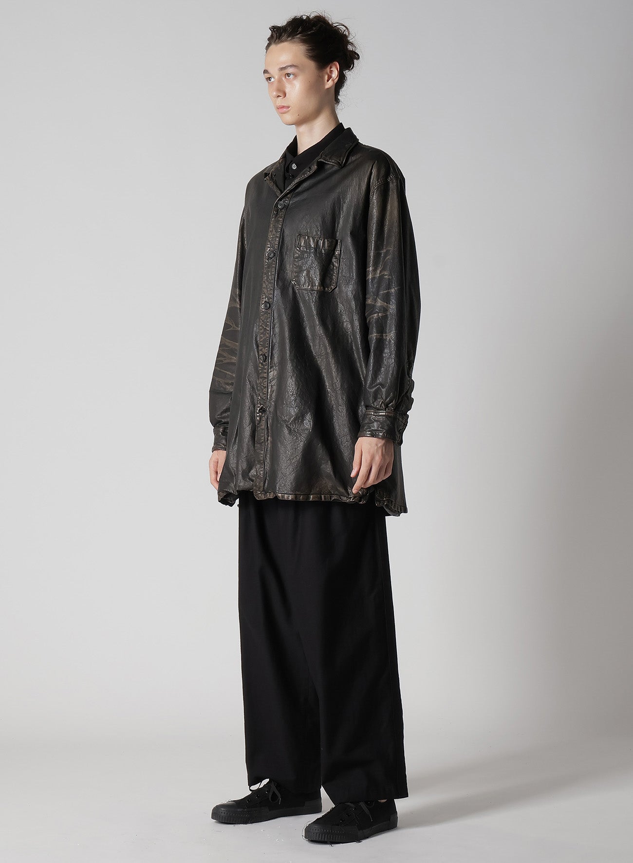 Crafted from domestically sourced steer leather, this shirt blouson boasts garment dyed and vintage processing. With a thickness reduced to 0.6mm, it offers a soft, lightweight feel. Achieving a vintage aesthetic, its two-step dye and surface treatment create a well-worn charm.