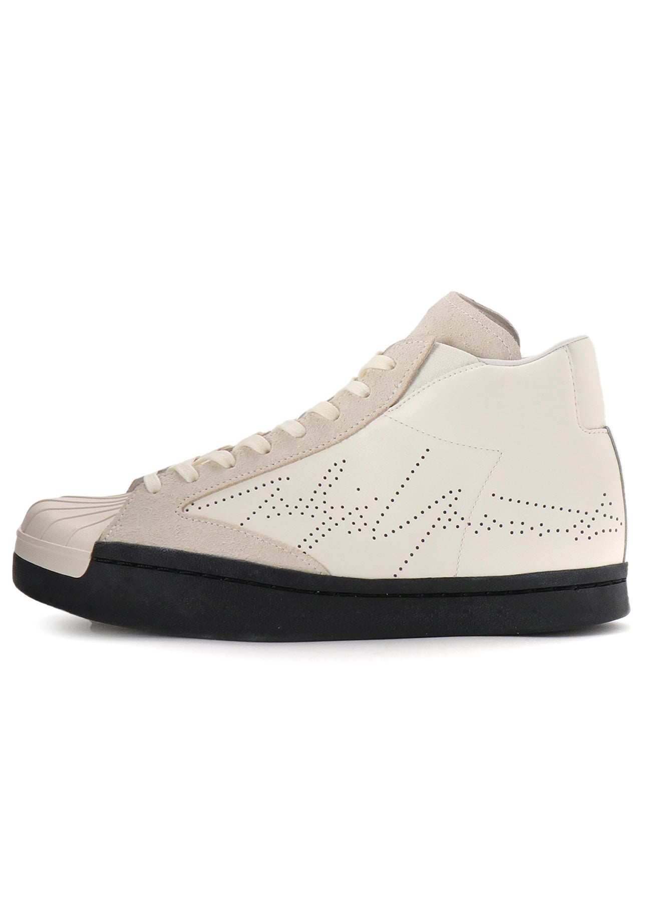 【SS SK 8 MID】draws inspiration from classic adidas masterpieces, featuring iconic details like the "Shell Toe" and "Outsole" with side perforations shaped into Yohji Yamamoto's signature logo. Crafted with Nappa leather and suede, this model perfectly blends heritage with modernity under Yohji Yamamoto's influence.