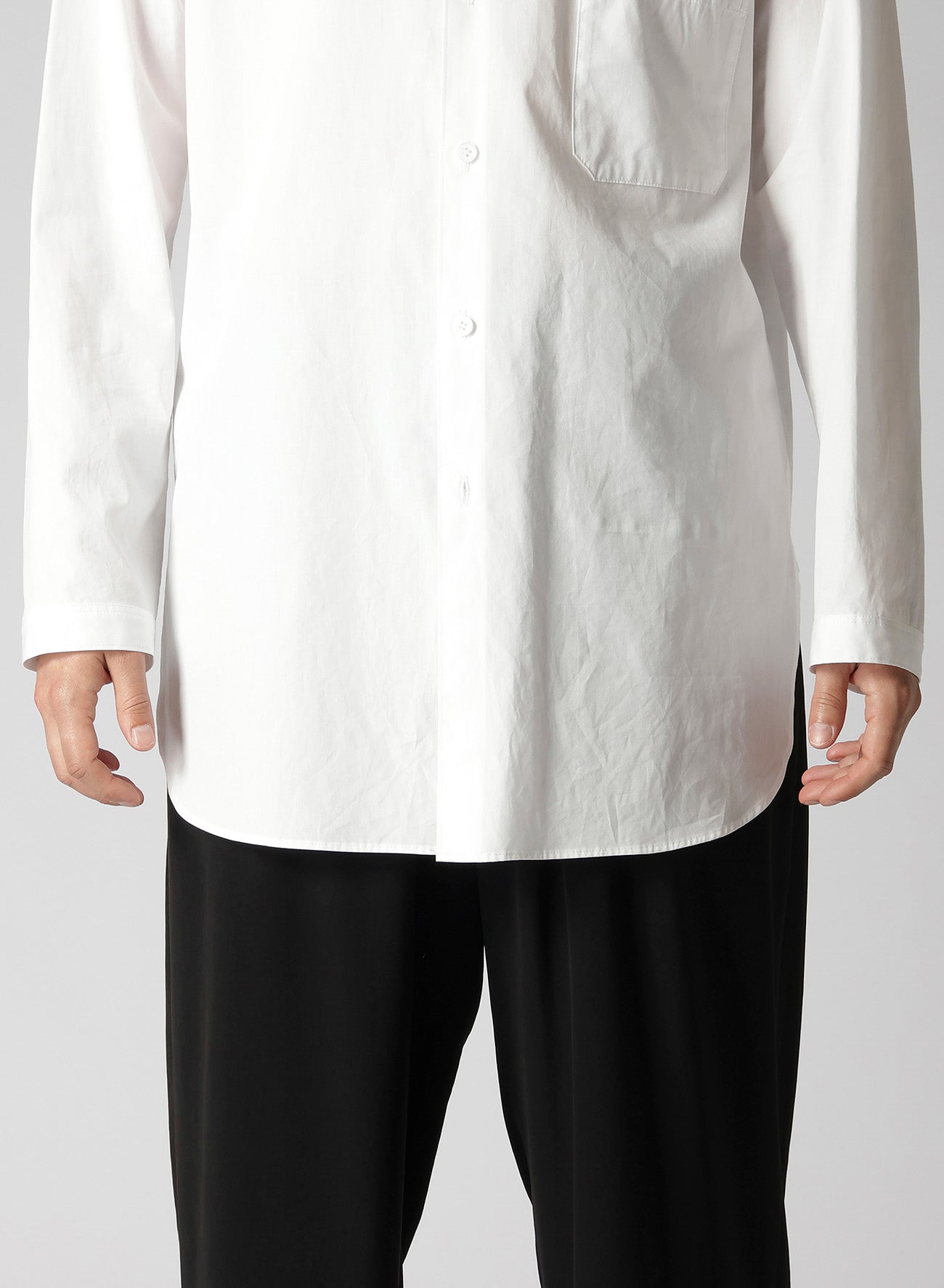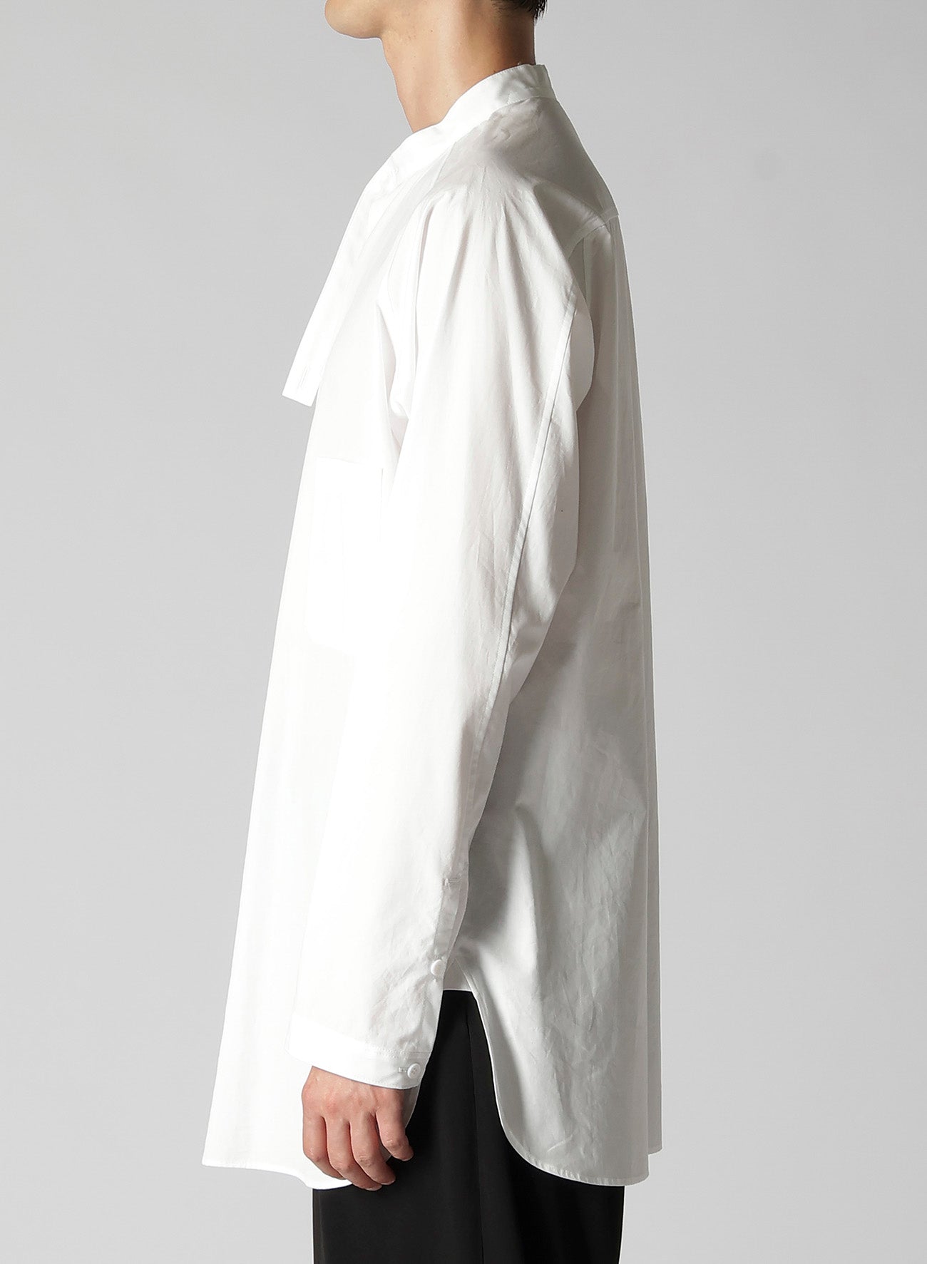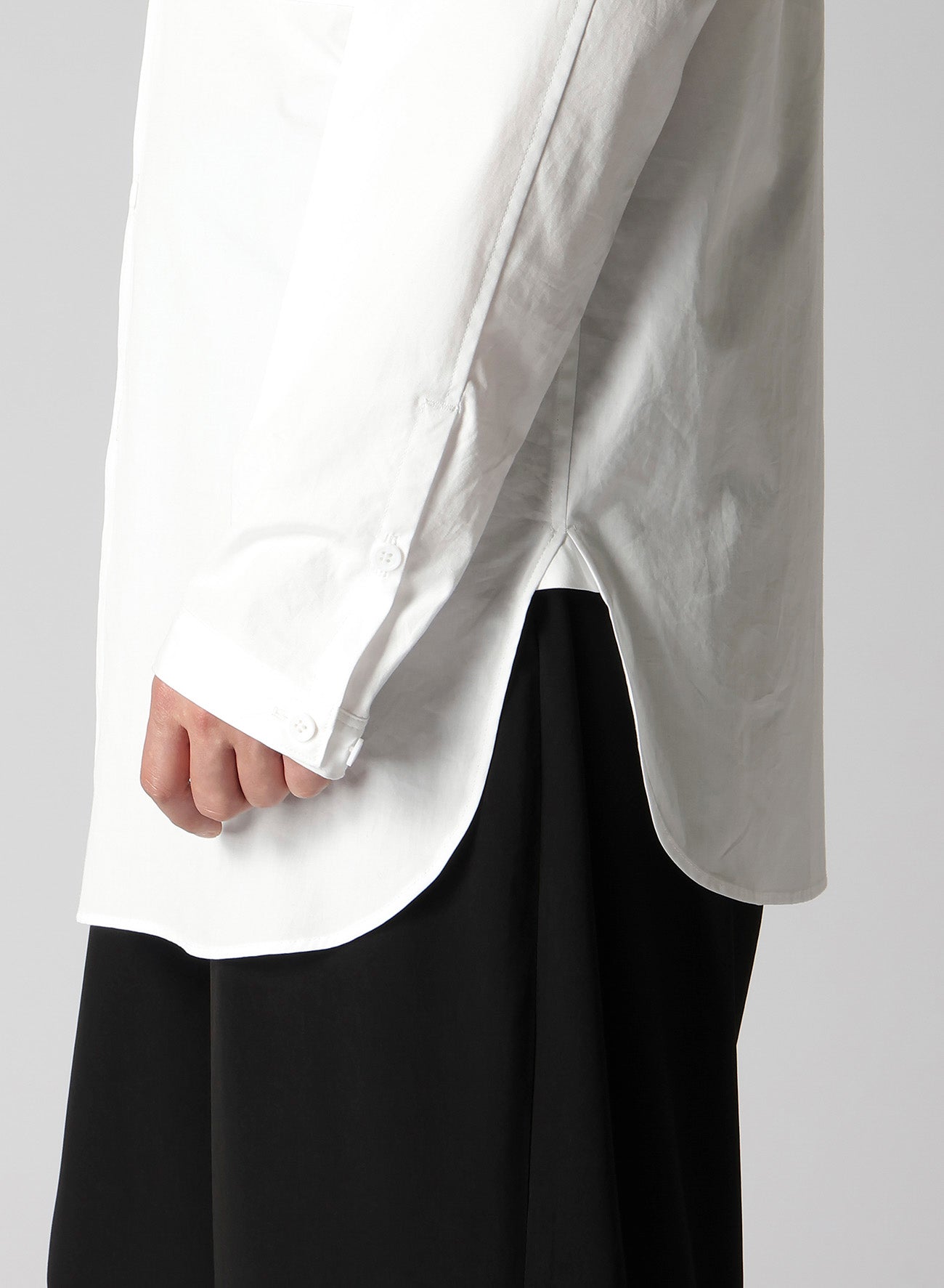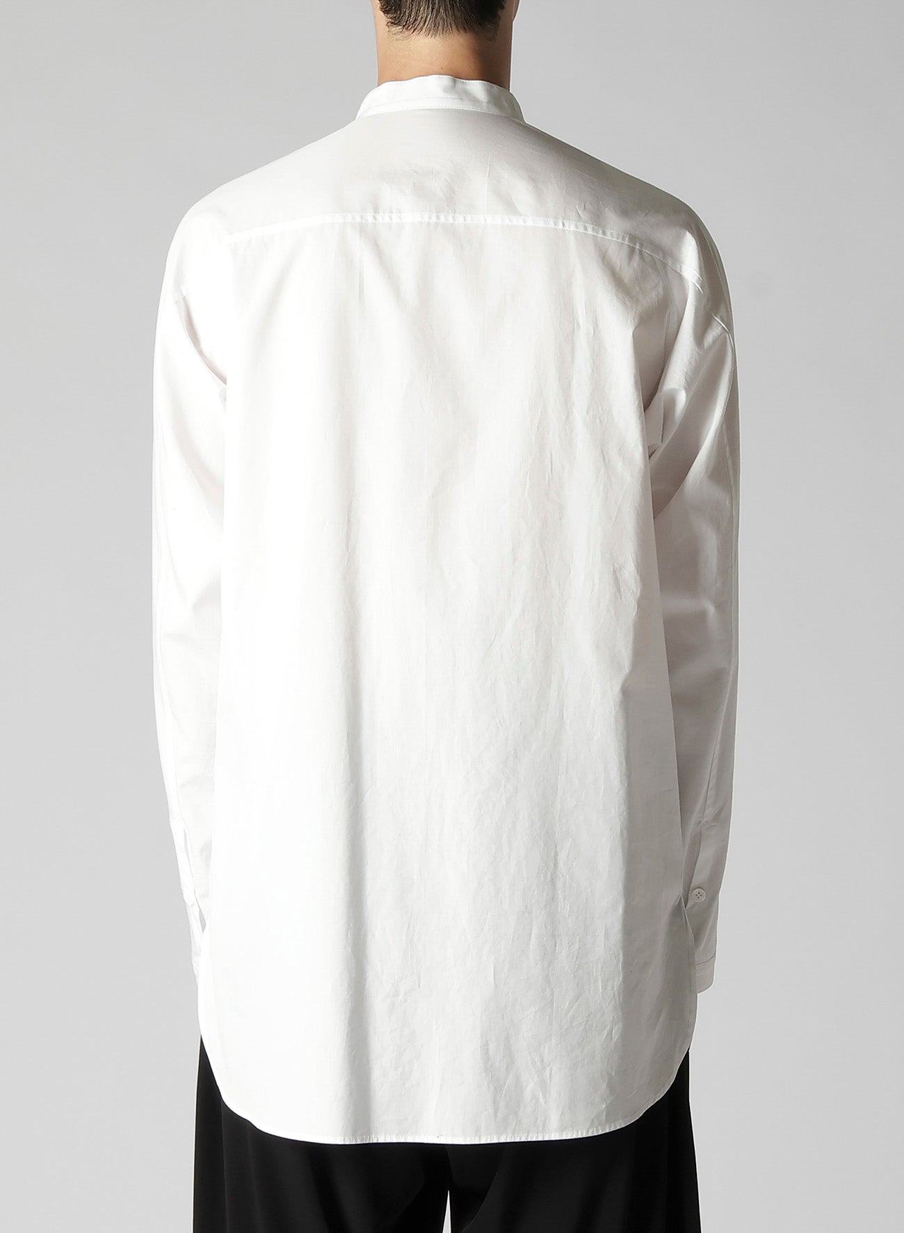 A blouse using signature material with a standing collar and a unique two-piece sleeve design attached from the back yoke. Special washing and processing give it texture and puffiness.