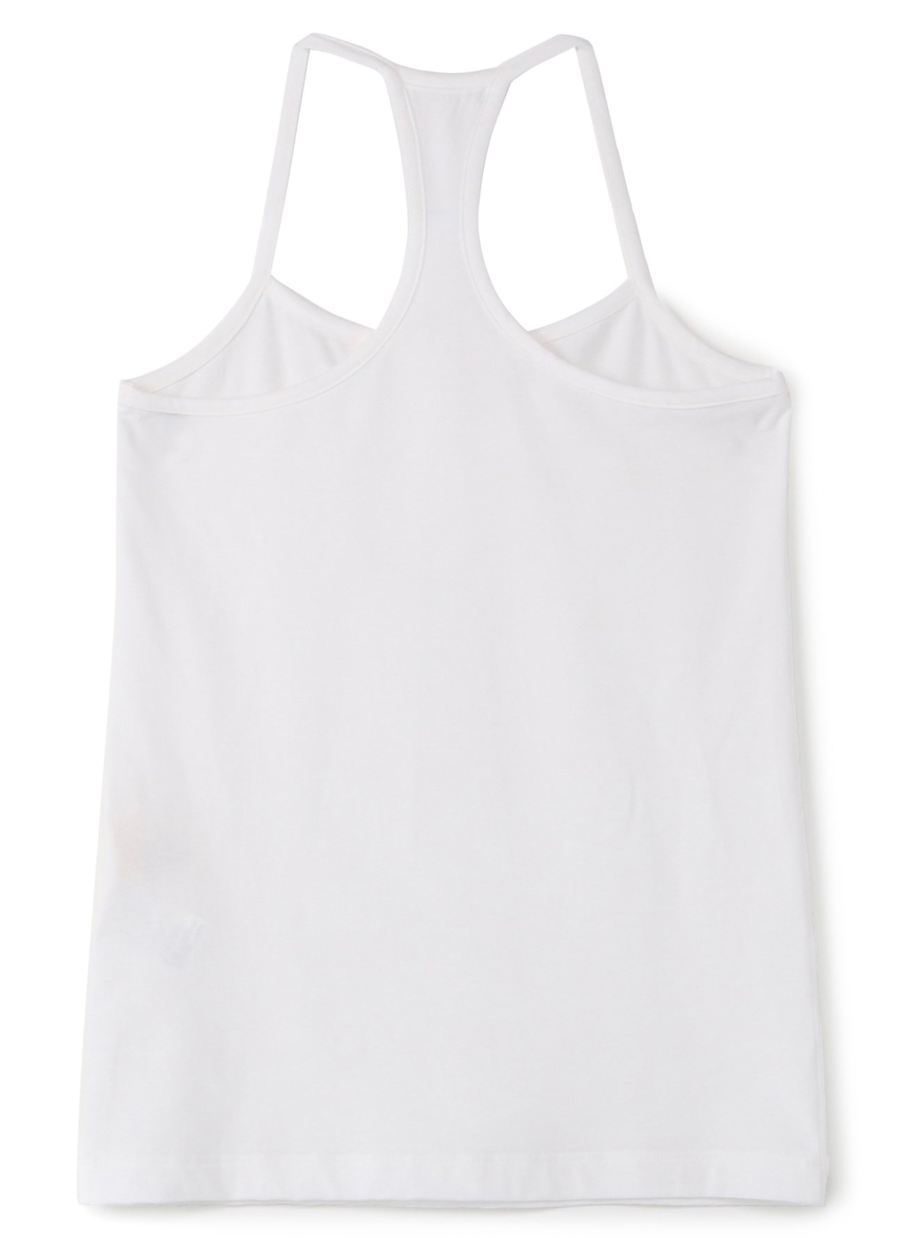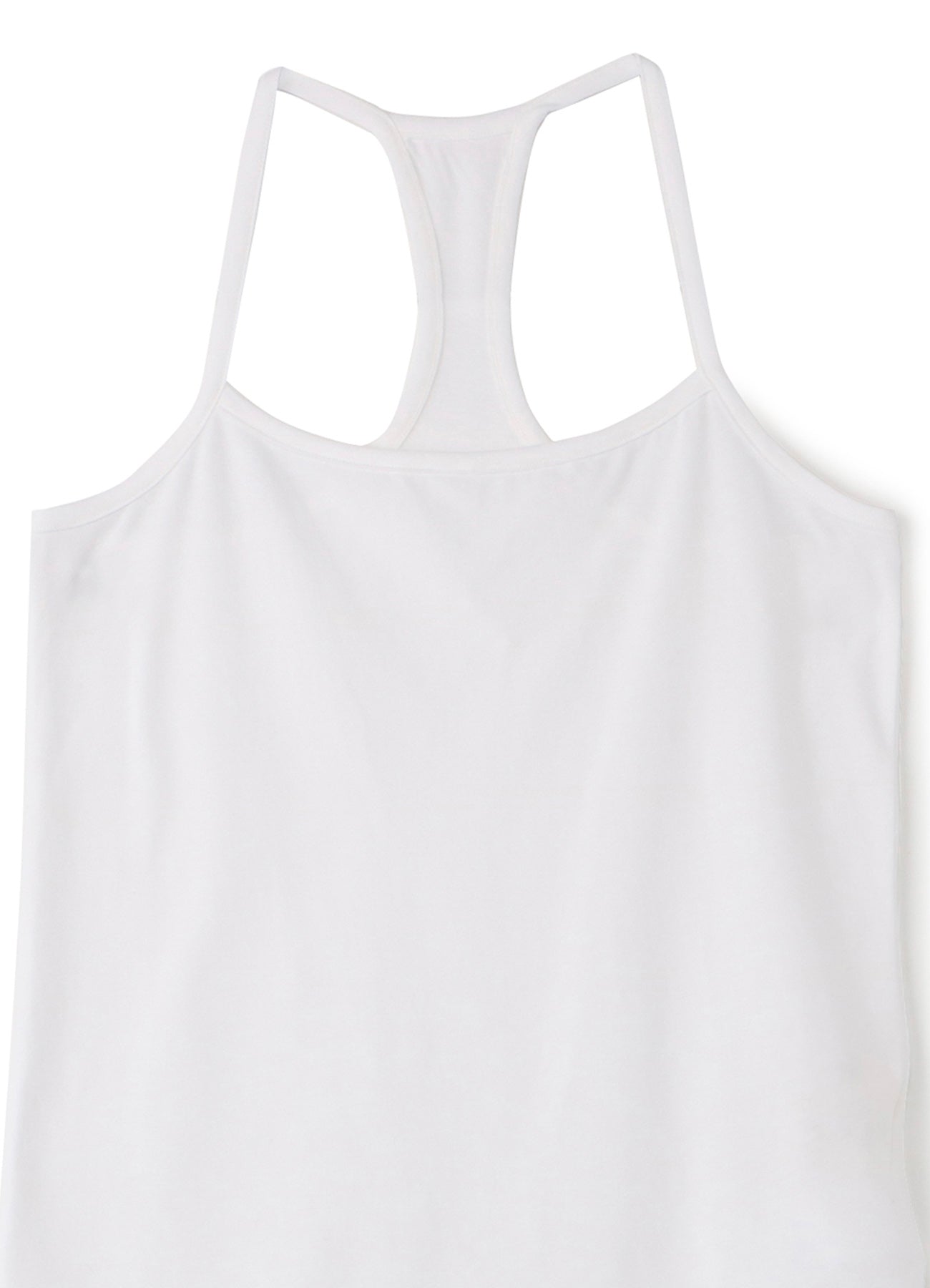This spaghetti strap camisole features a fabric knit under high tension using Strong-Twist yarn, providing a suitable firmness and dry touch. The stretchy fabric has an ideal thickness to prevent excessive transparency, making it versatile for various outfits. Perfect as inner wear.