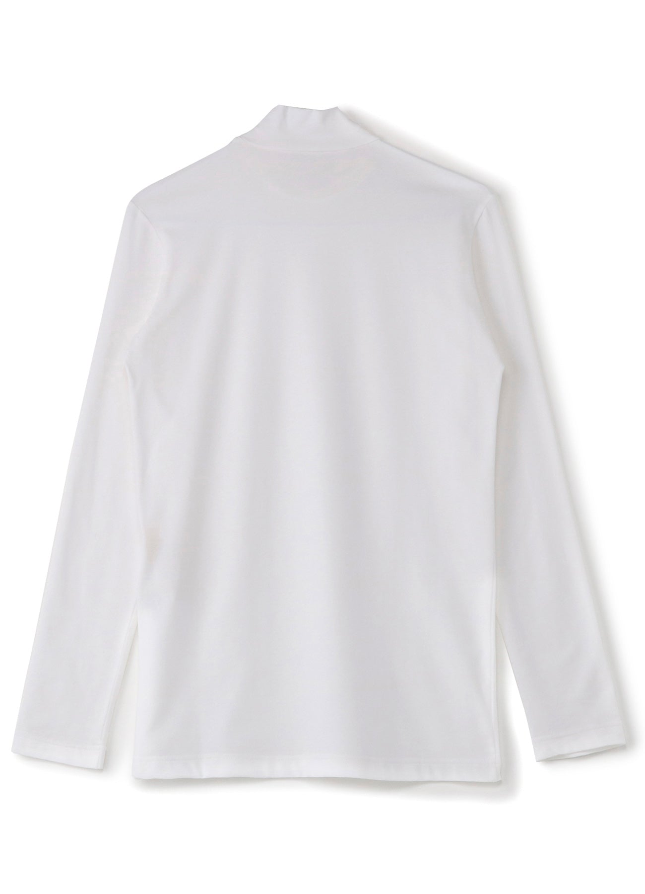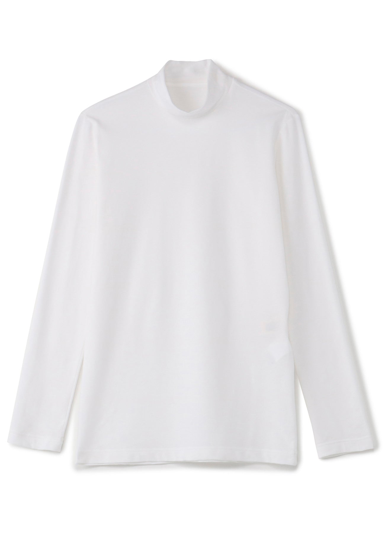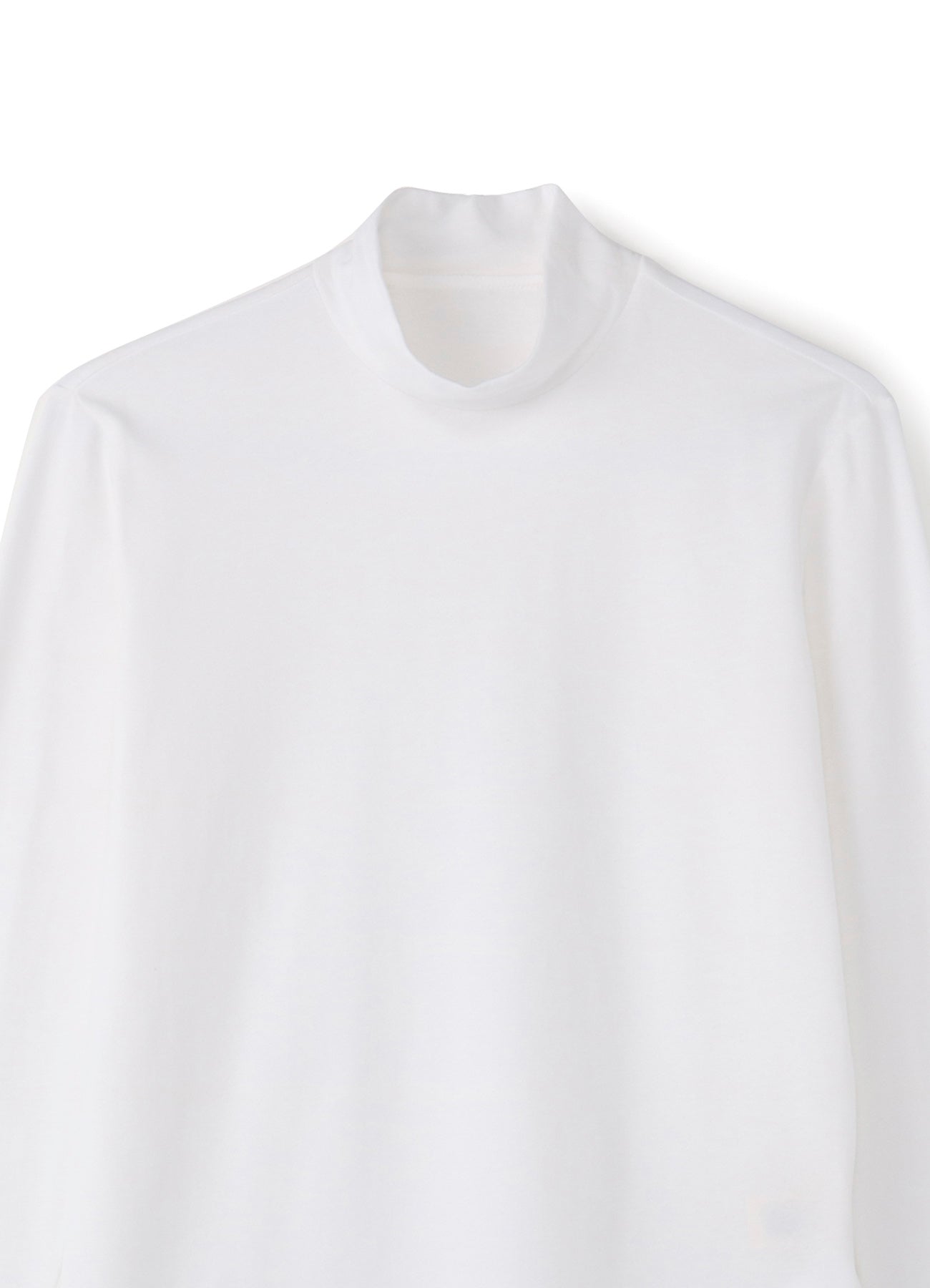 This high-neck top achieves a firm texture and dry touch by tightly knitting with Strong-Twist yarn, providing a balanced thickness. Its stretchable fabric is non-see-through, making it versatile for various outfits, while the simple silhouette adds to its broad appeal.