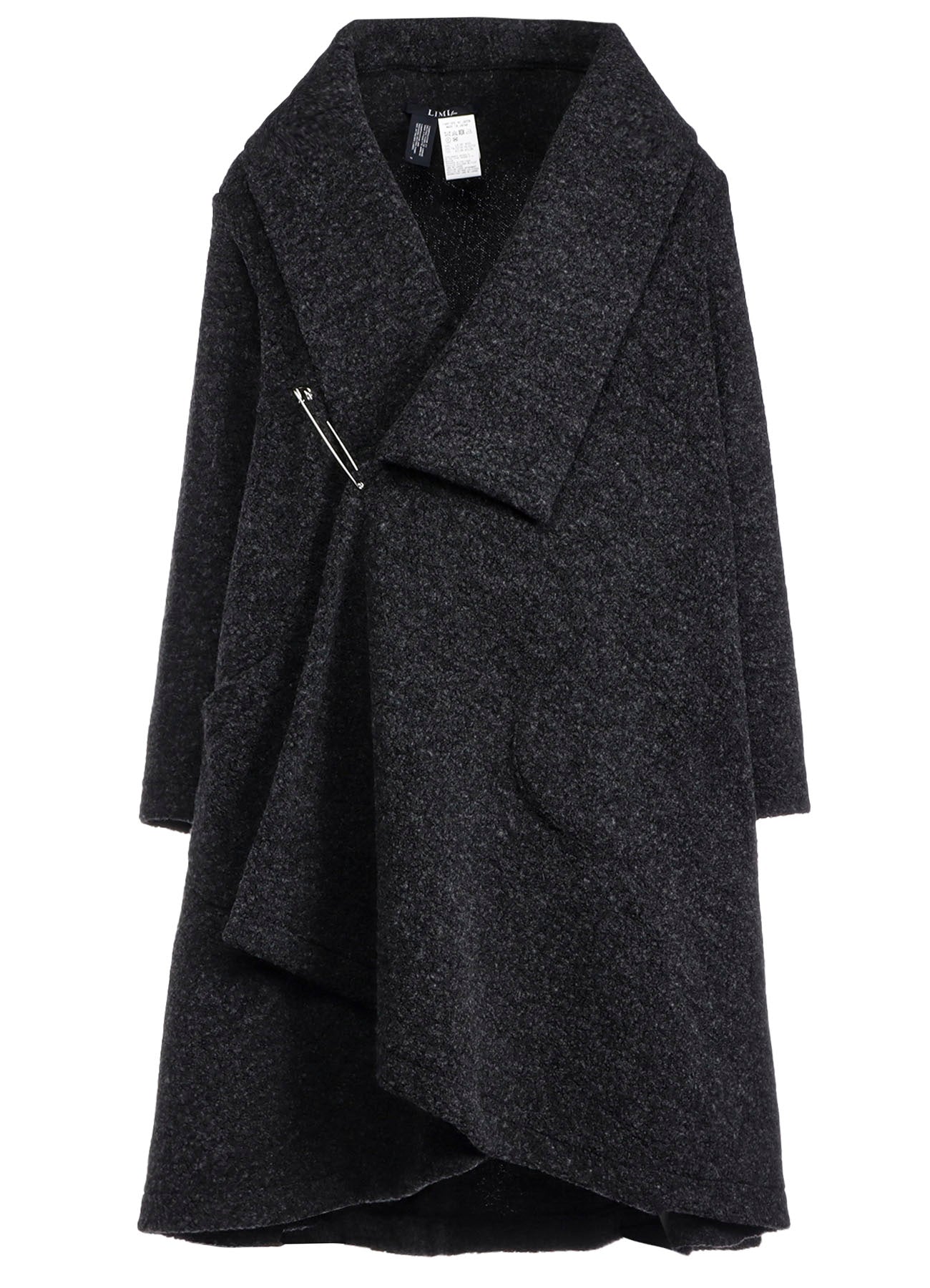 This wool pile fabric, treated with a sheepskin finish, boasts a voluminous and warm texture reminiscent of sheep's wool. The A-line silhouette of the coat elegantly flares out towards the hem, offering a feminine look with beautiful drape. Despite its voluminous appearance, it is lightweight and perfect for everyday use.