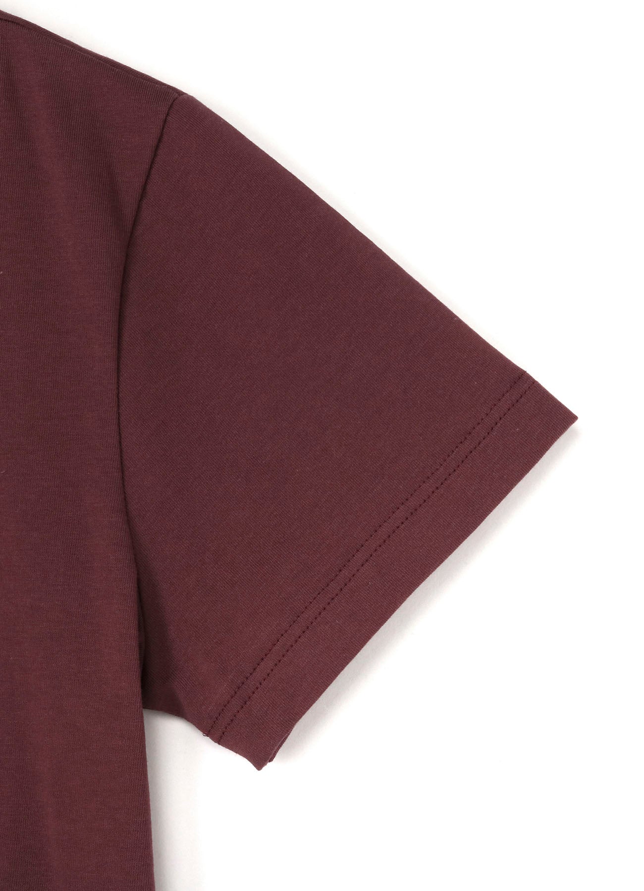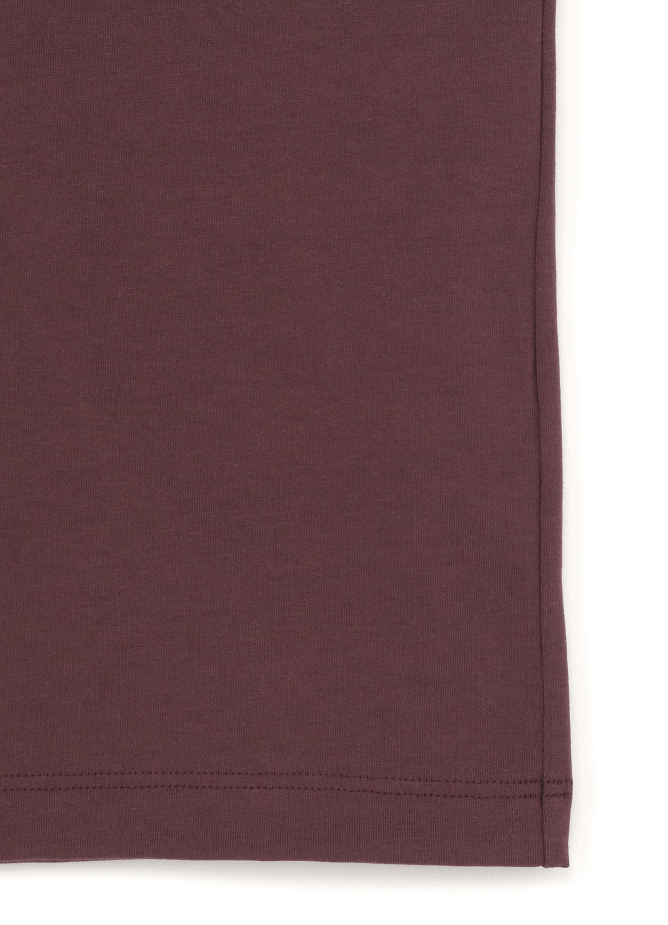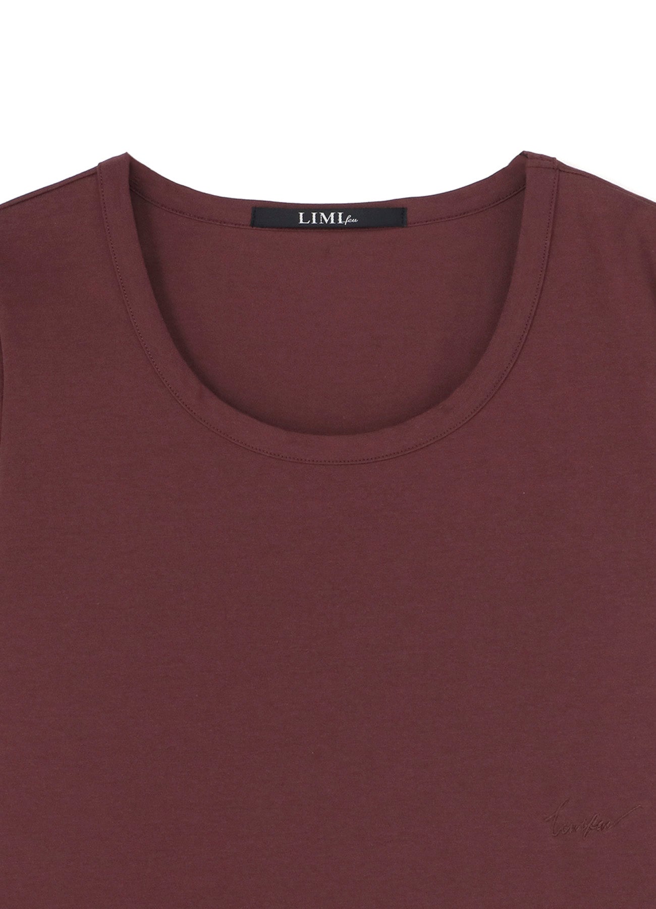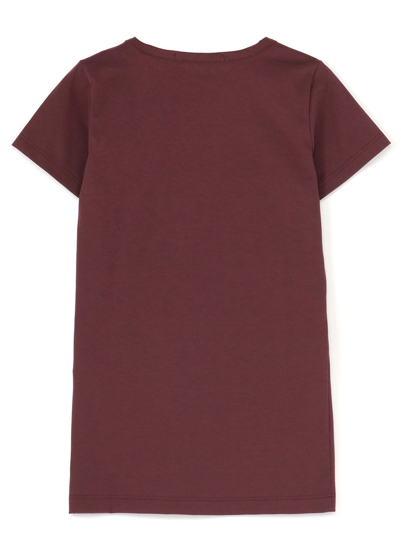 This short-sleeved top is crafted using a thick yarn knitted in high gauge to achieve a densely packed, firm plain stitch fabric. The yarn undergoes a process to reduce fuzziness, resulting in a clear surface and smooth texture. The simple silhouette features the brand logo discreetly embroidered in cursive at an exquisite position.
